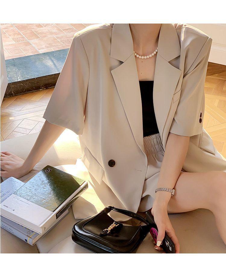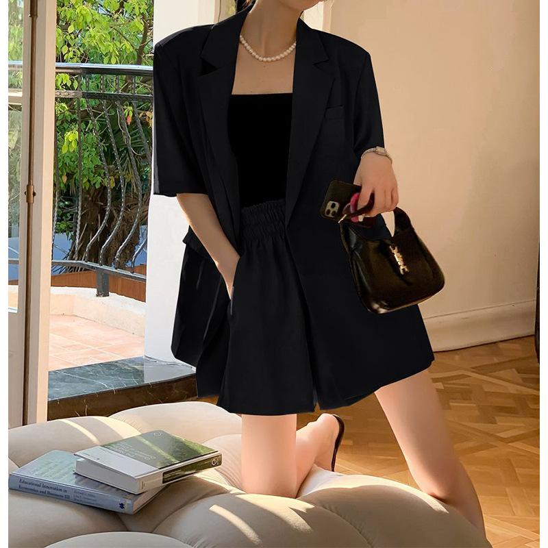 Traje Delgado Traje de Verano para Mujer Pequeño 2025 Nuevo Sentido del Diseño Elegante Slim Casual Shorts Conjunto de Dos Piezas