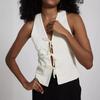 Chaleco de Temperamento Transfronterizo Europeo y Americano para Mujer Nueva Moda Marcador de Tendencias Callejeras Sin Mangas Escote Asimétrico Top con Mangas para Mujer