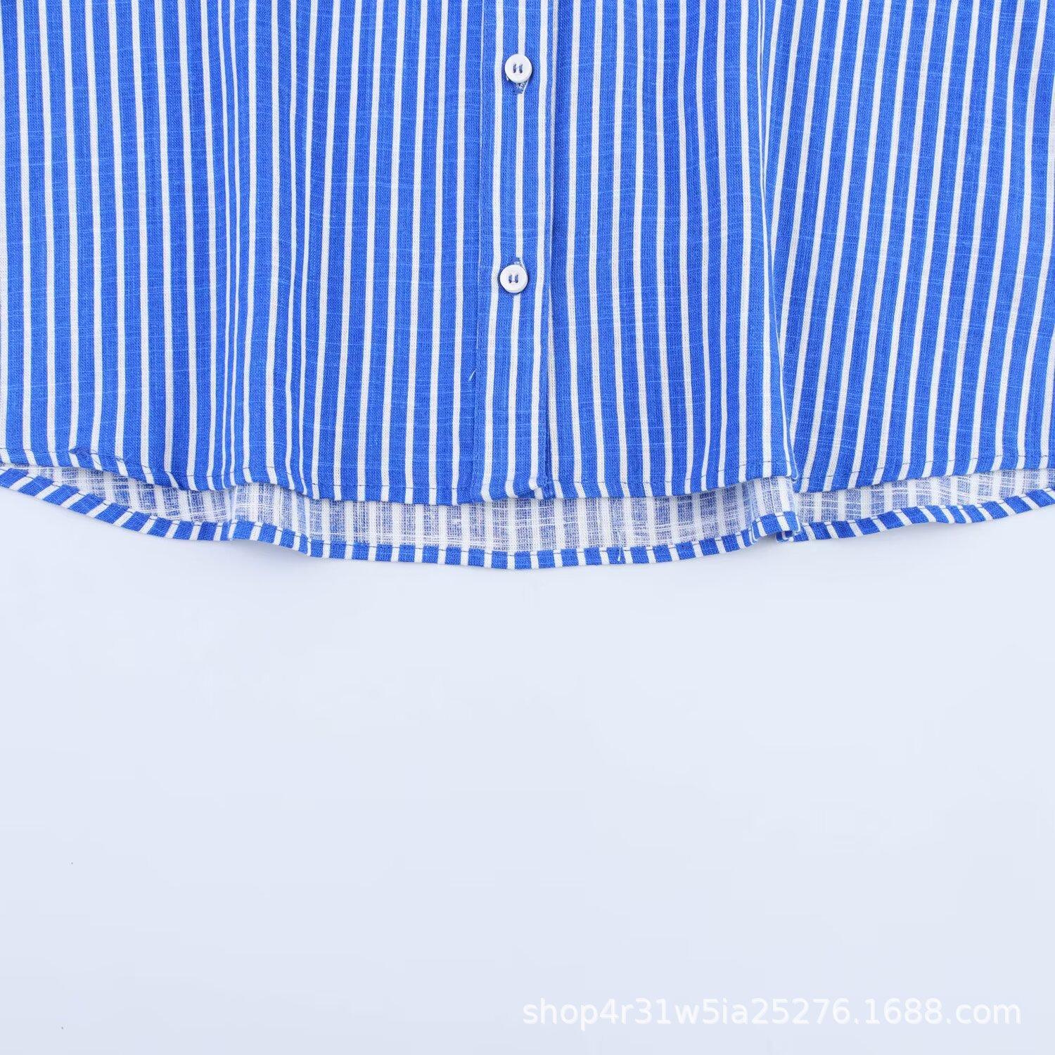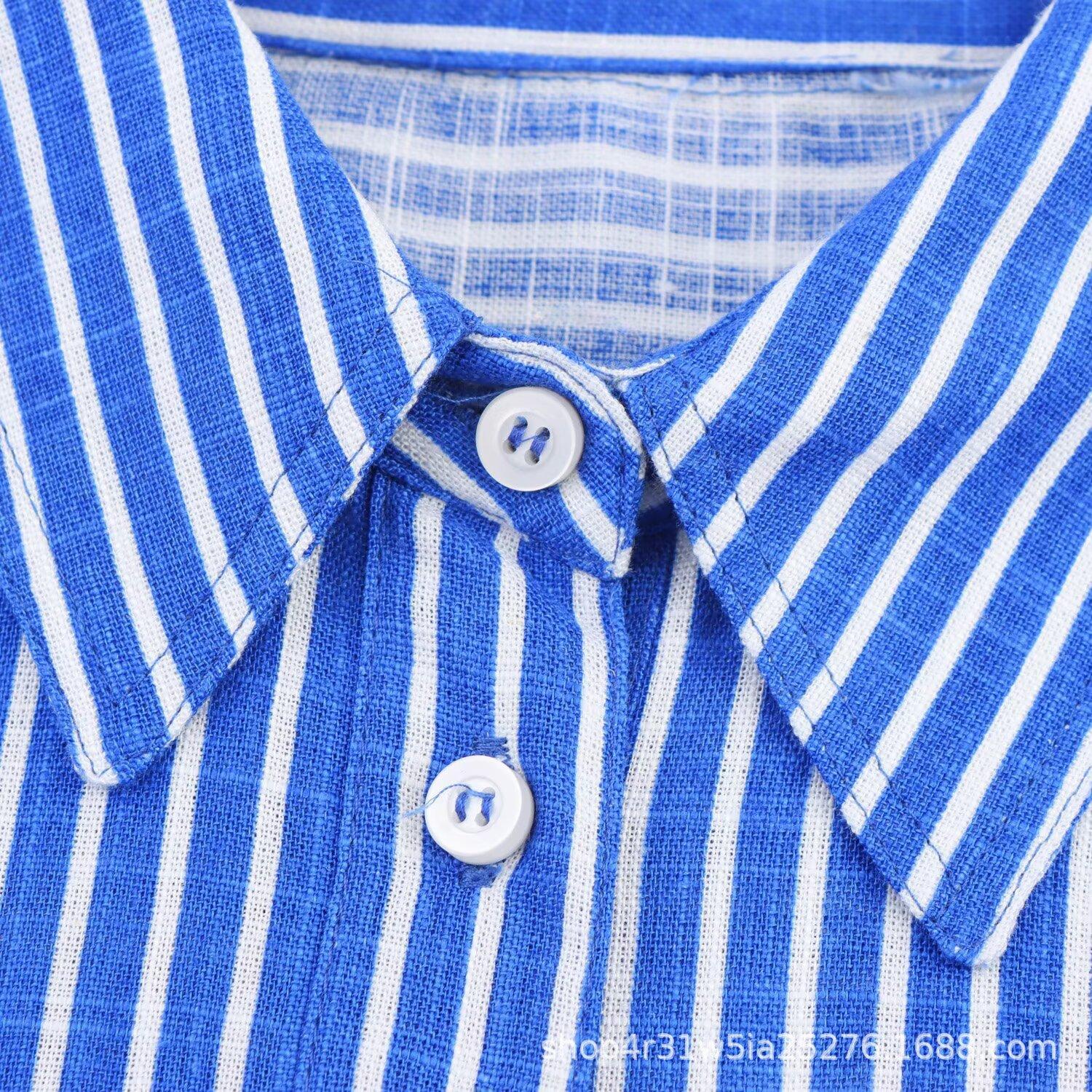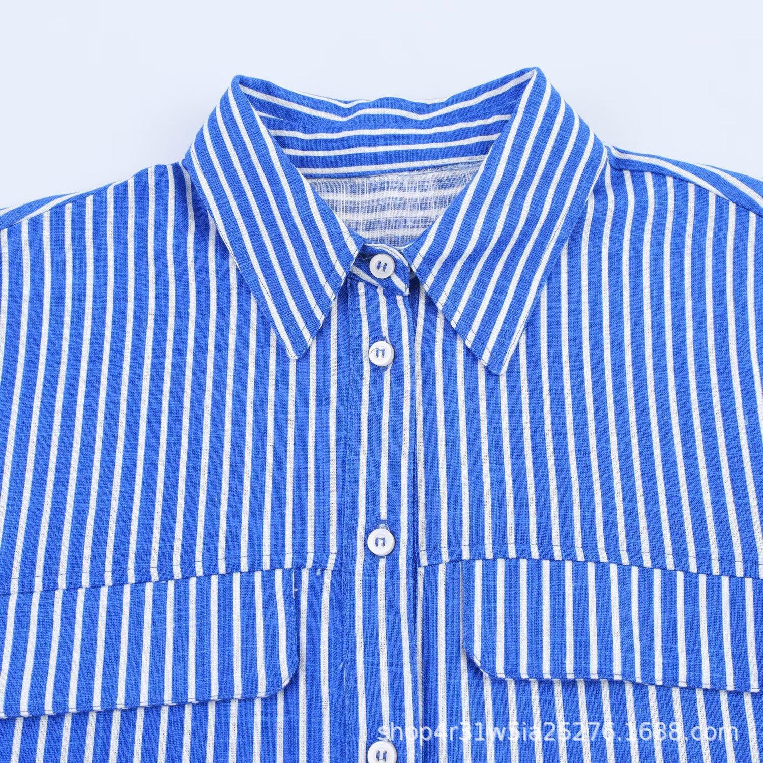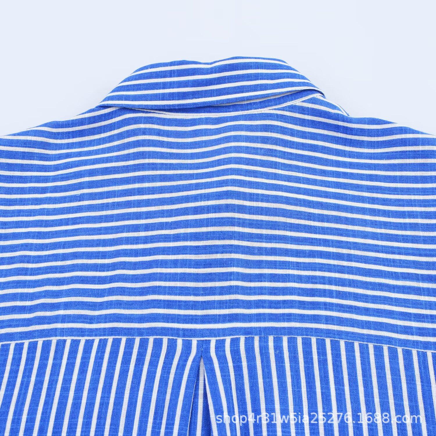 Amazon Comercio Exterior Transfronterizo Venta al Por Mayor Ropa de Mujer 2025 Nuevo Verano Estilo Europeo y Americano Camisa Holgada Rayada Mezcla de Lino