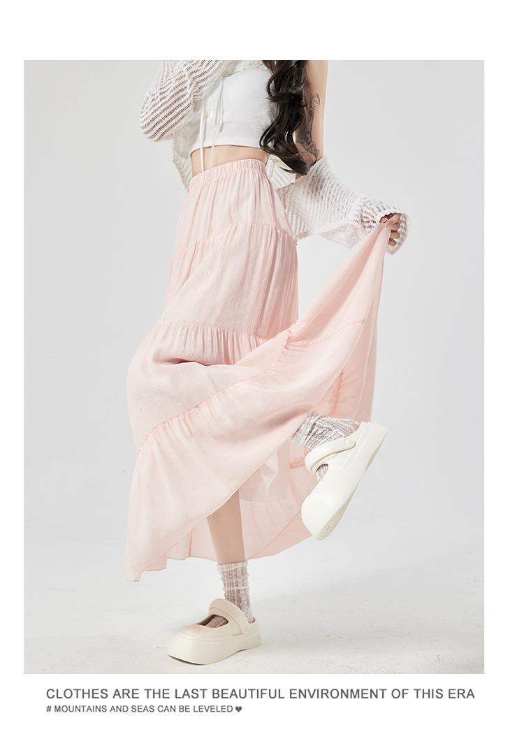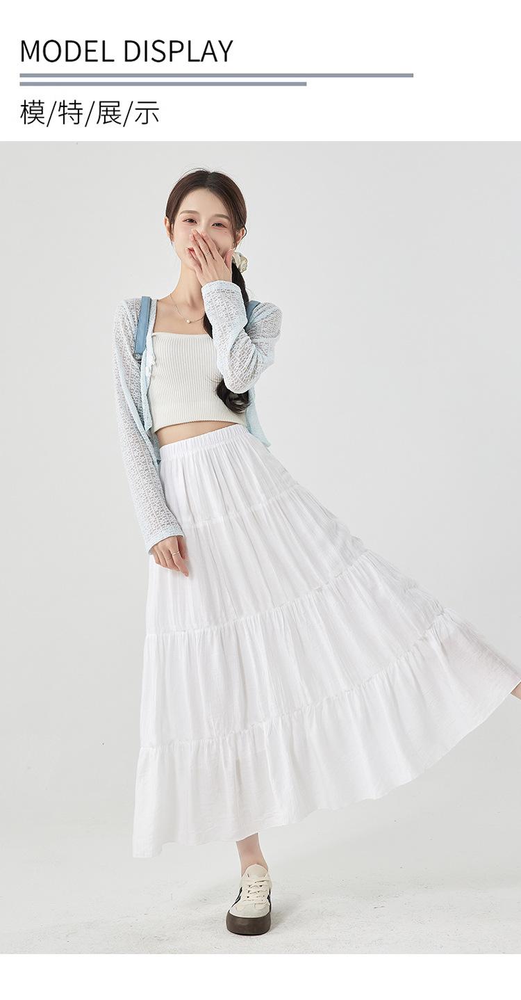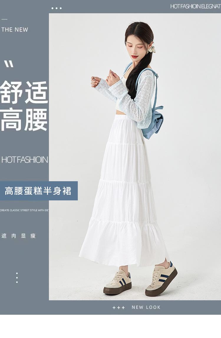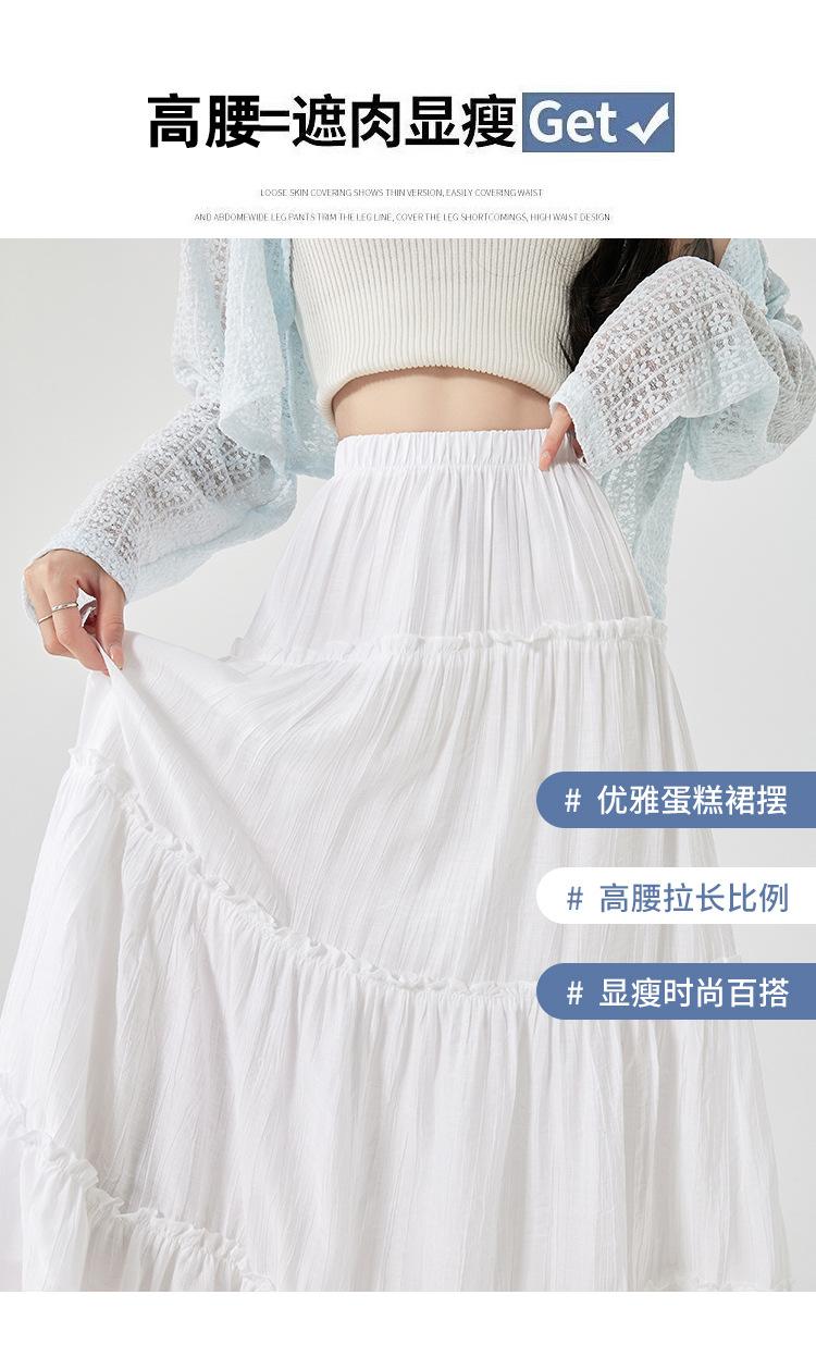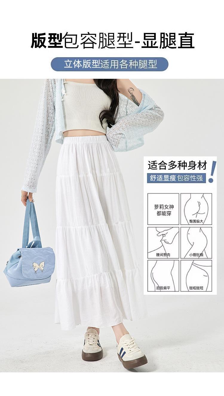 Falda blanca para mujer, nueva primavera y otoño 2025, cintura alta, adelgazante, estilo paraguas, línea A, plisada, con vuelo.