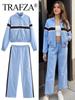 Ropa de Mujer de Estilo Europeo y Americano para Comercio Exterior Estilo Popular Transfronterizo con Cinturón Traje Casual de Manga Larga Chaqueta + Pantalones Casuales Elegantes