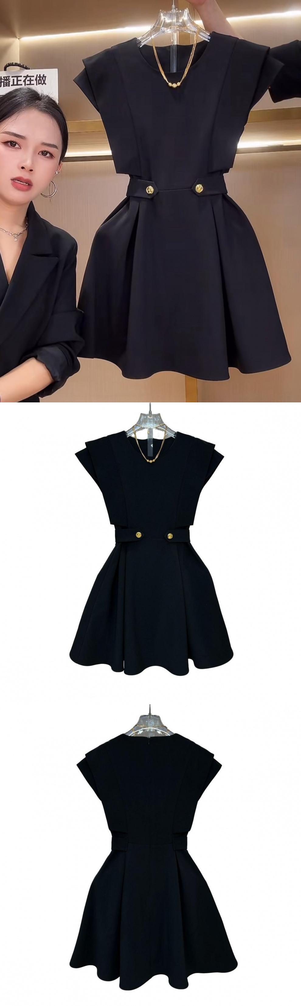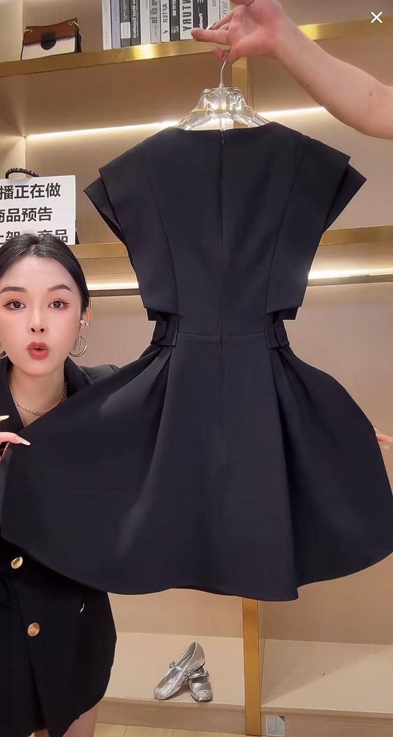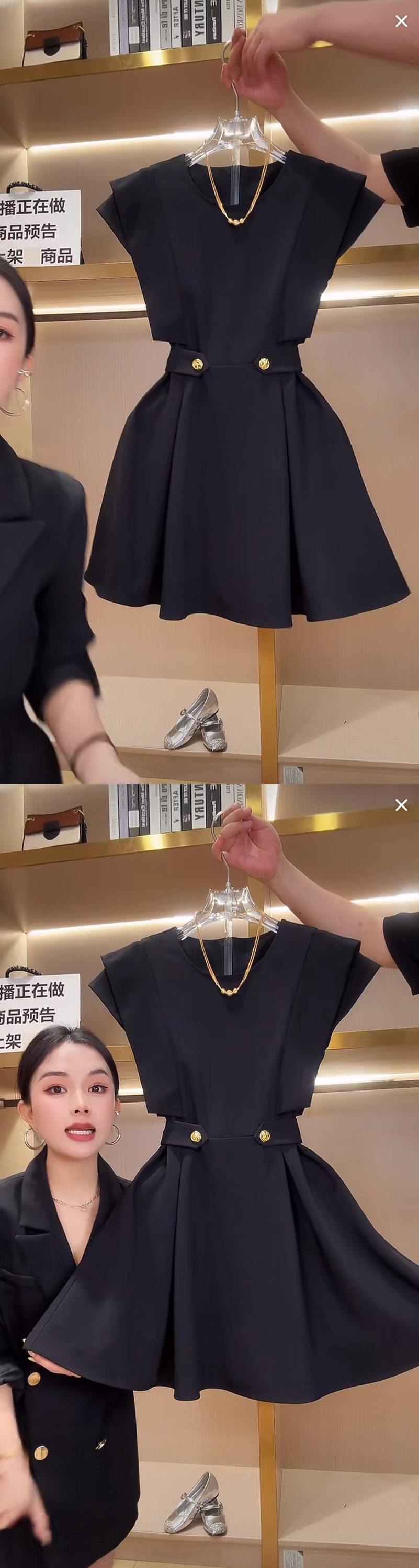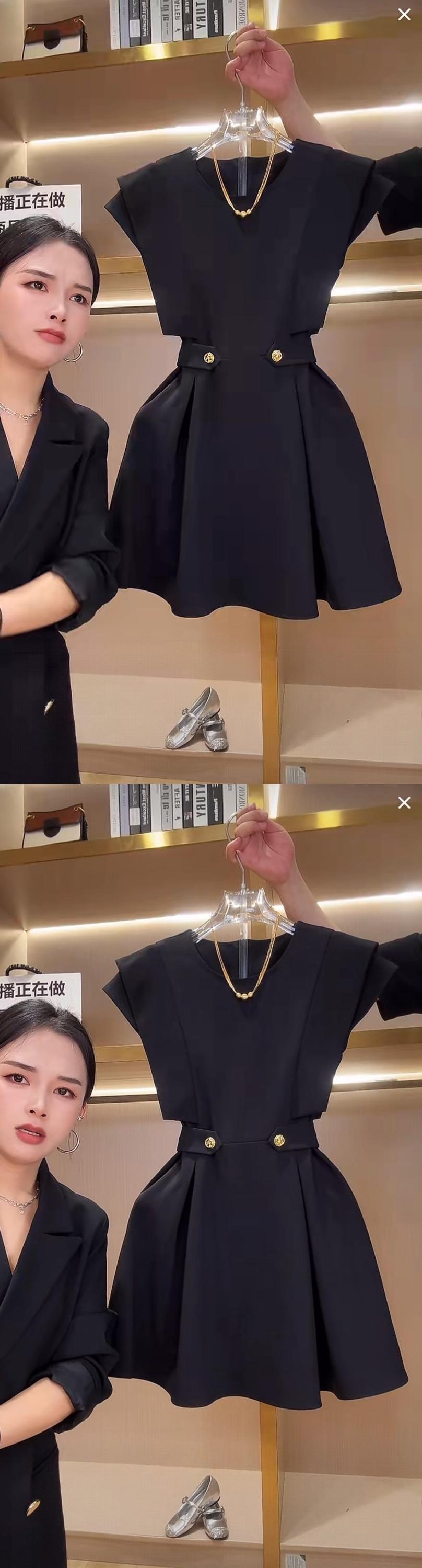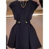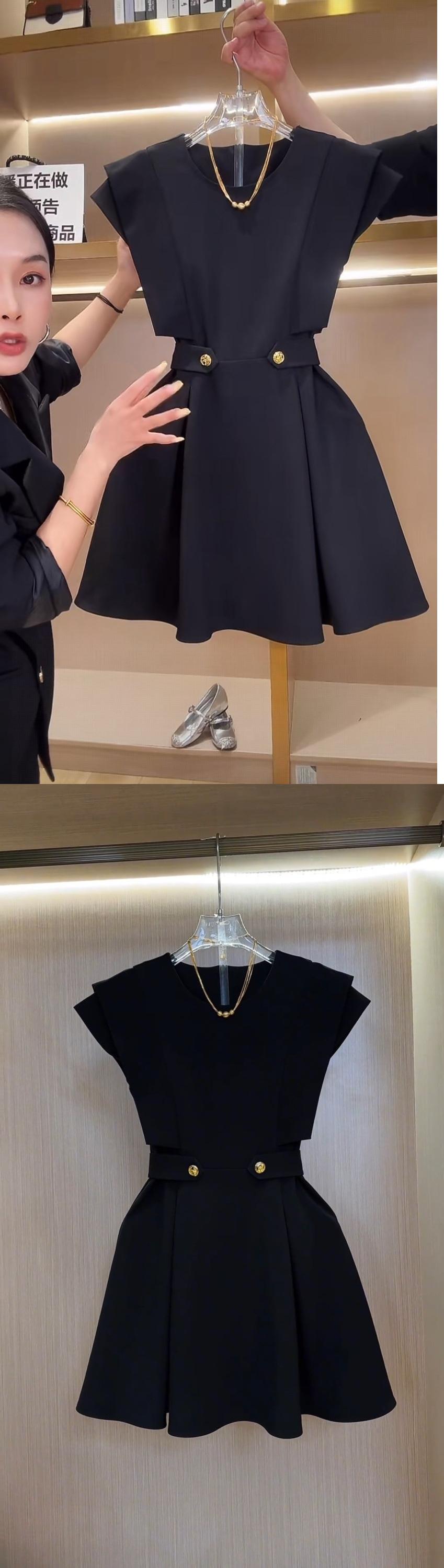 2025 Nuevo Vestido Ajustado Diseño de Falda Corta Nicho Lujo Ligero Estilo Francés Cintura Ceñida Vestidito Negro Verano