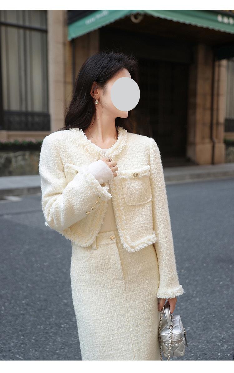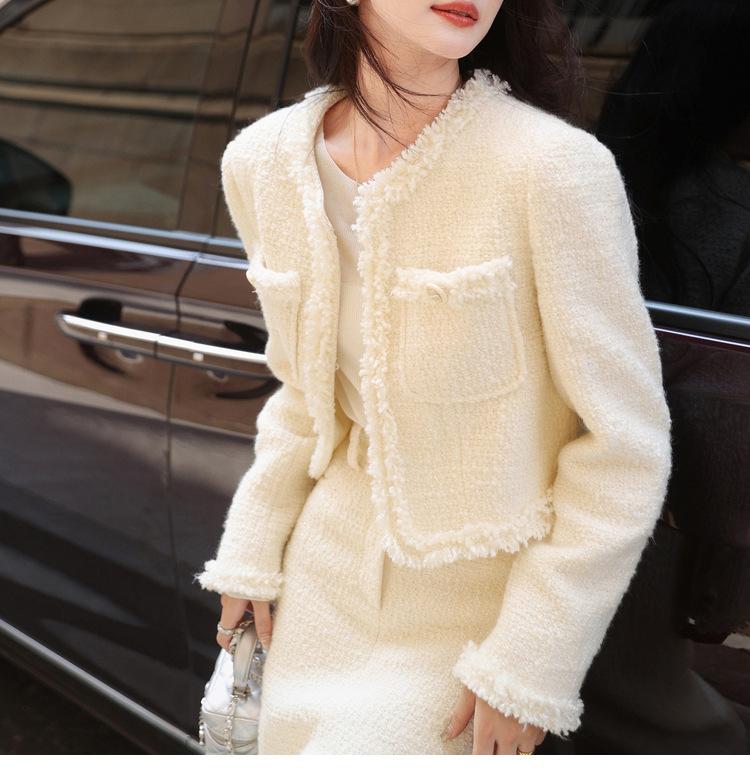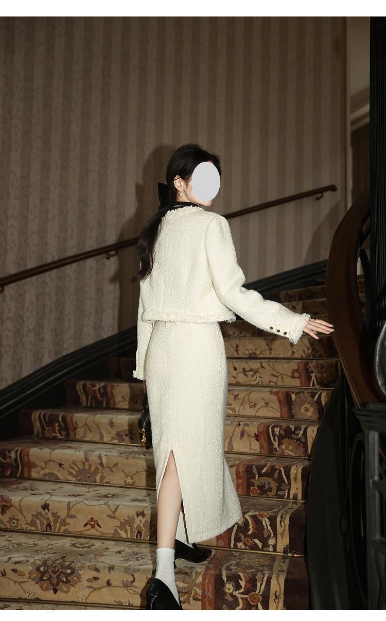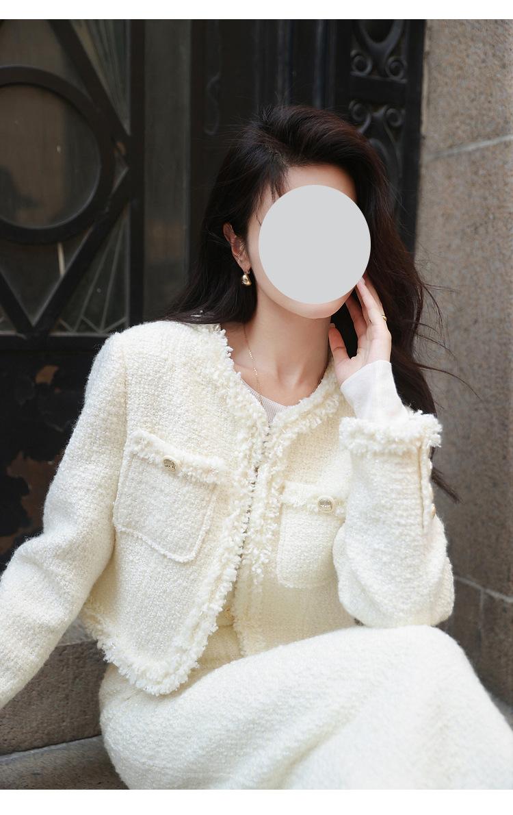 Hija rica temperamento de dama grande blanco traje estilo fragancia pequeña vestido otoño diseño sensación abrigo traje de dos piezas mujeres
