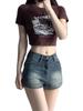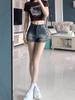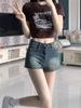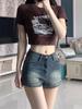 Shorts de Mezclilla Americanos de Chica Sexy Diseño de Moda de Verano 2025 Cintura Alta Petite Retro Hot Pants Pantalones Adelgazantes