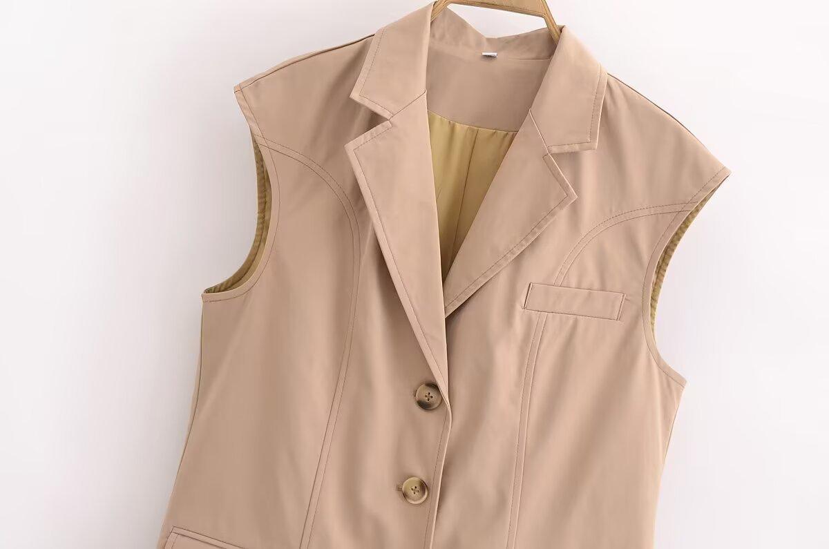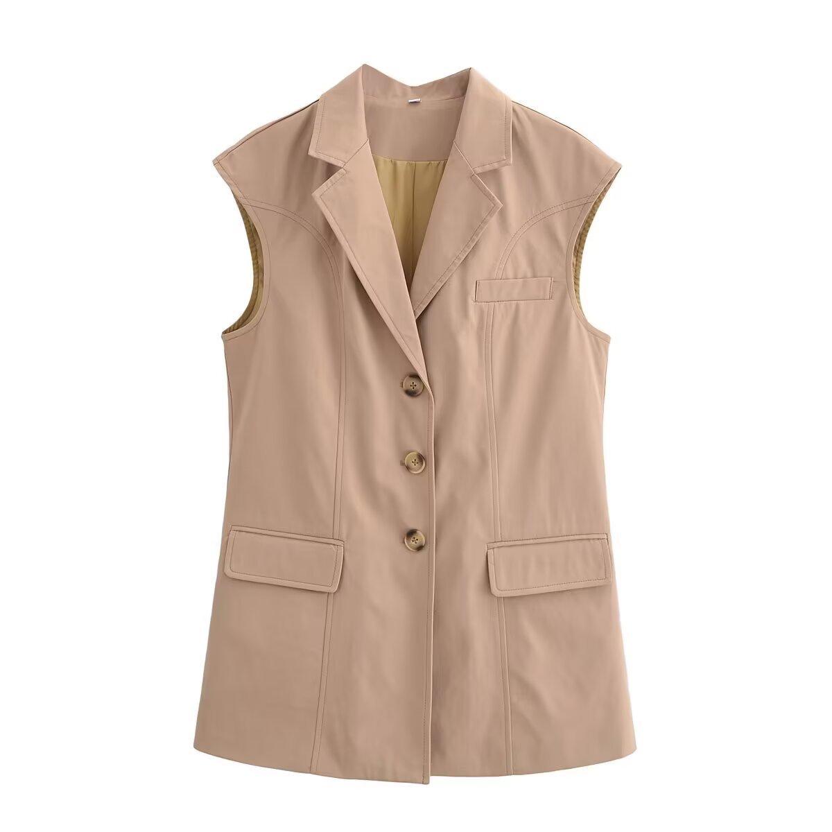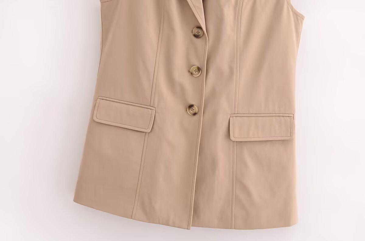 Ropa de Verano para Mujer 2025 Estilo Europeo y Americano Moda Sencilla Versátil Sin Mangas Solapa Botones Chaleco