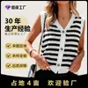 Chaleco cárdigan de punto sin mangas con cuello en V y rayas blancas y negras transfronterizo europeo y americano, suéter de moda versátil y simple para mujer