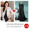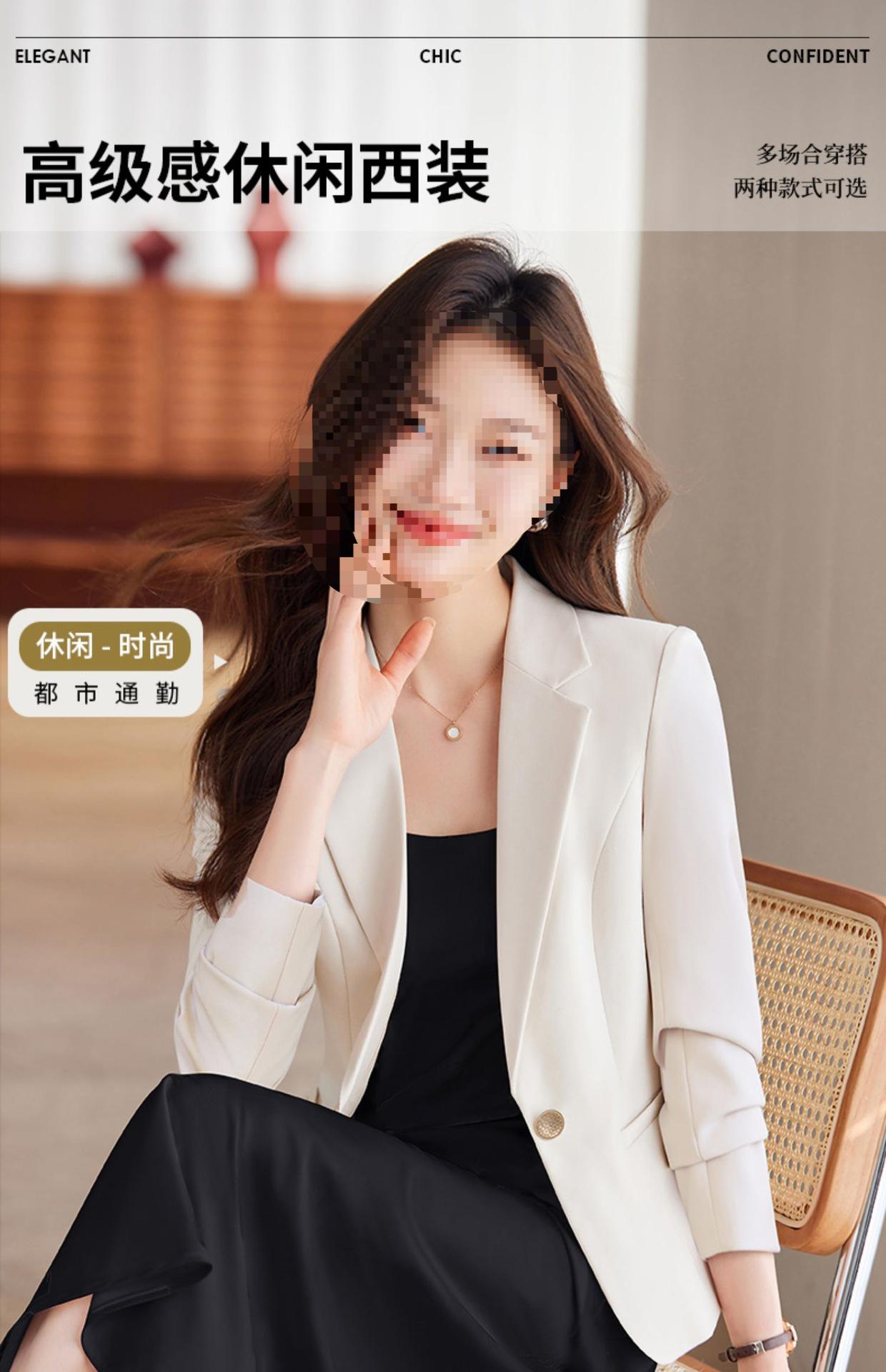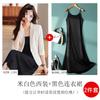 [mid-sleeve]-single piece off-white suit, [mid-sleeve]-single piece of off-white suit + black dress, [mid-slee...