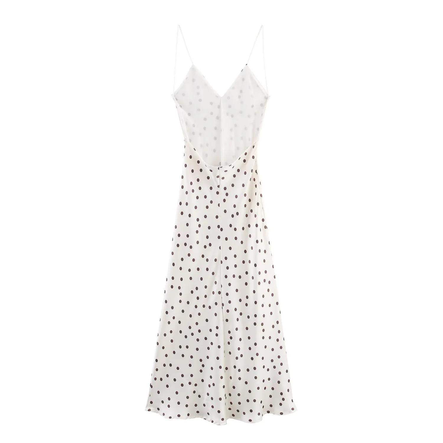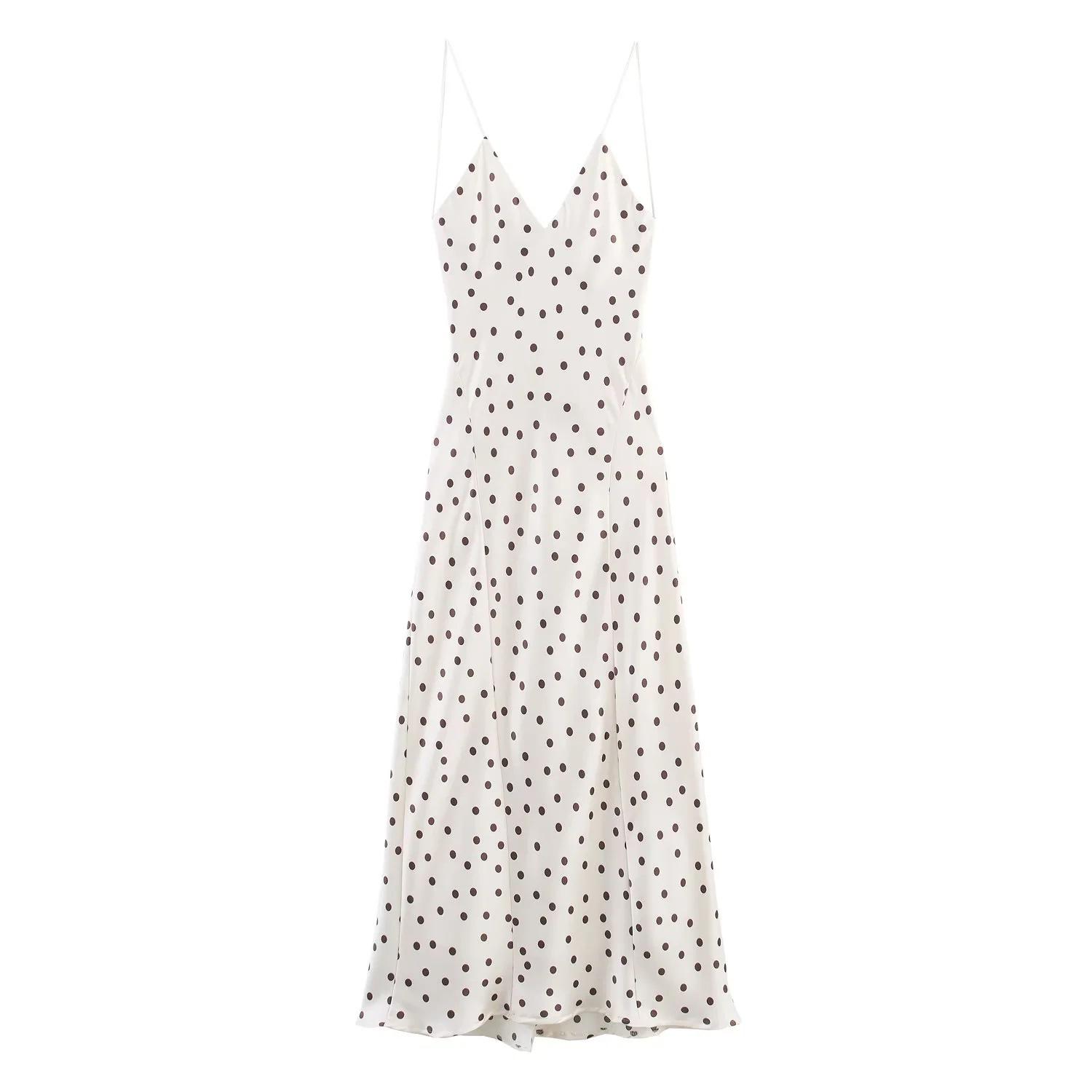 Vestido midi de estilo europeo y americano, tendencia de moda superventas de Amazon AliExpress, sexy para vacaciones, con lunares, textura de satén de seda