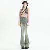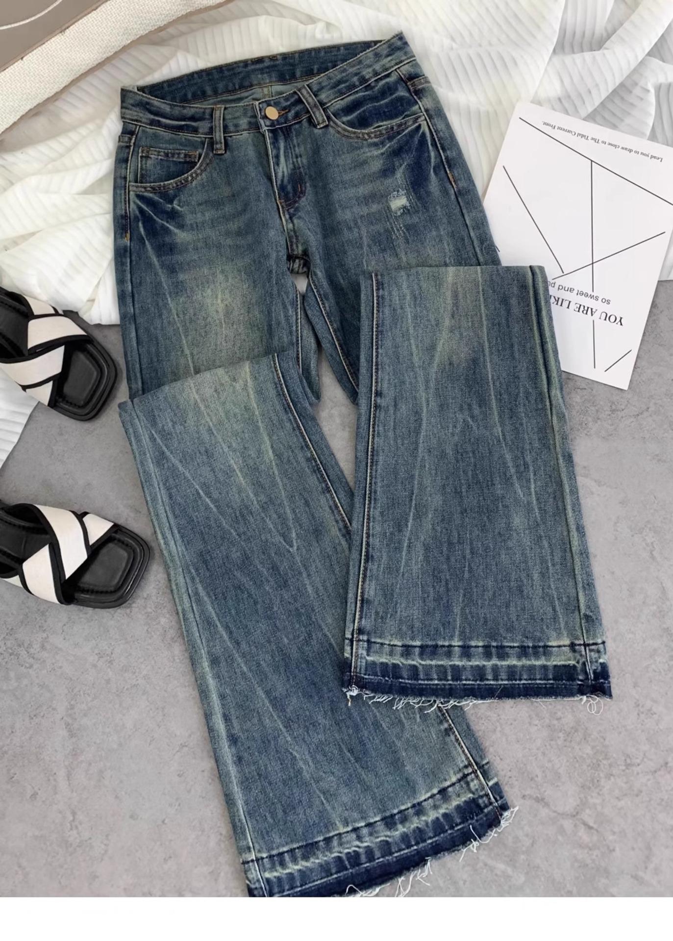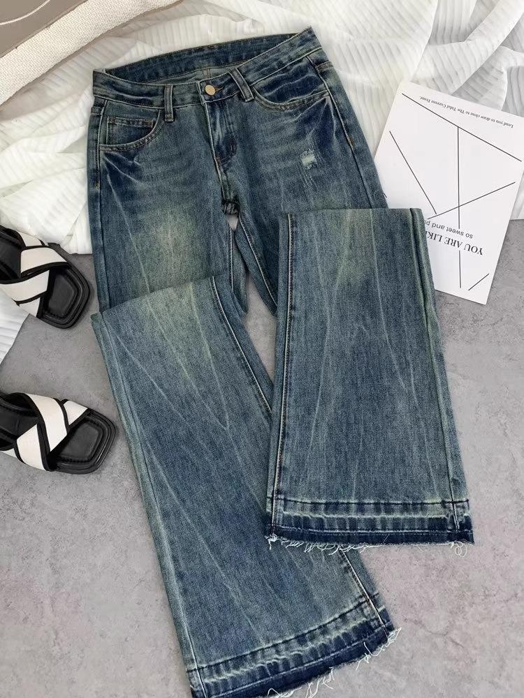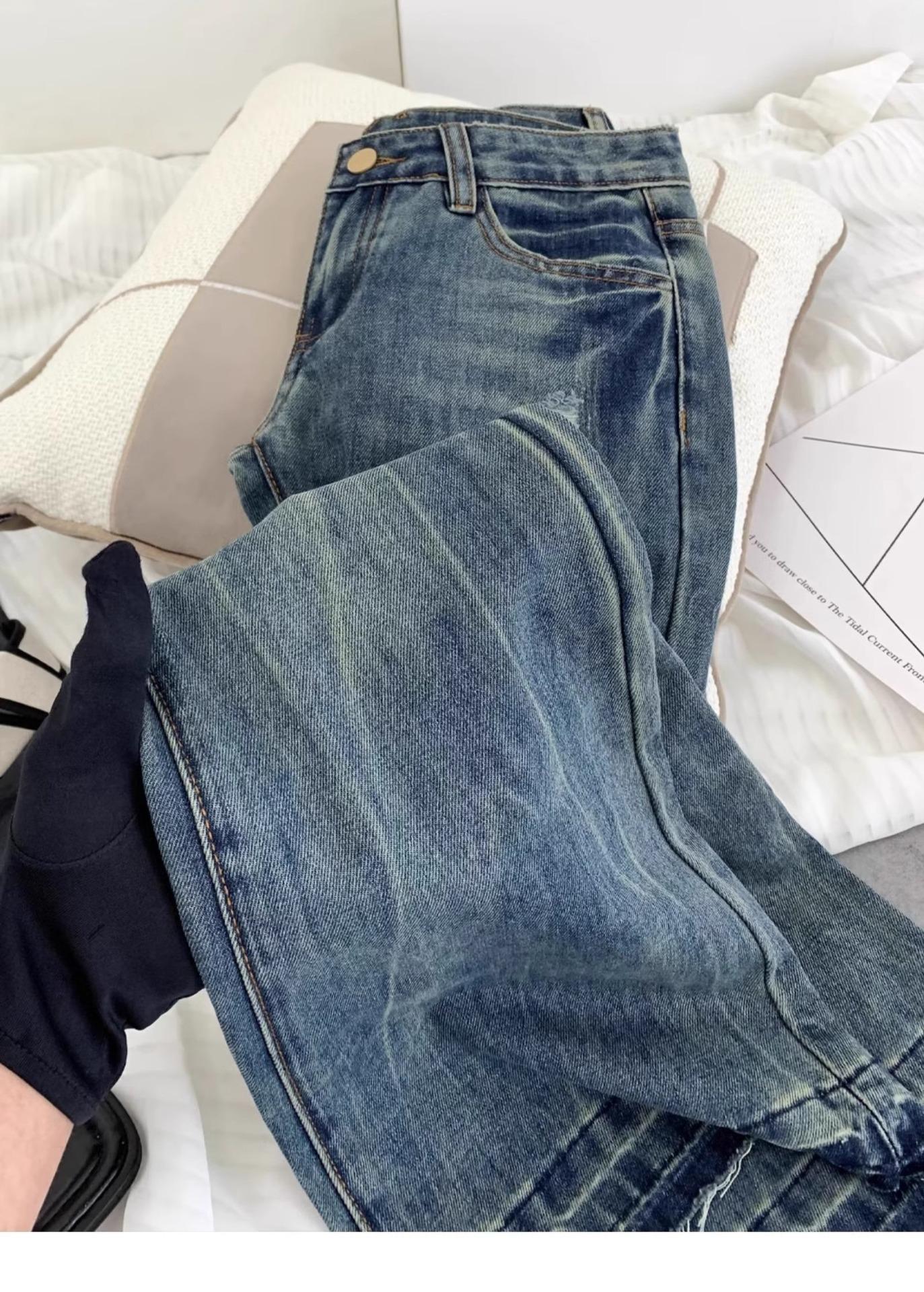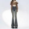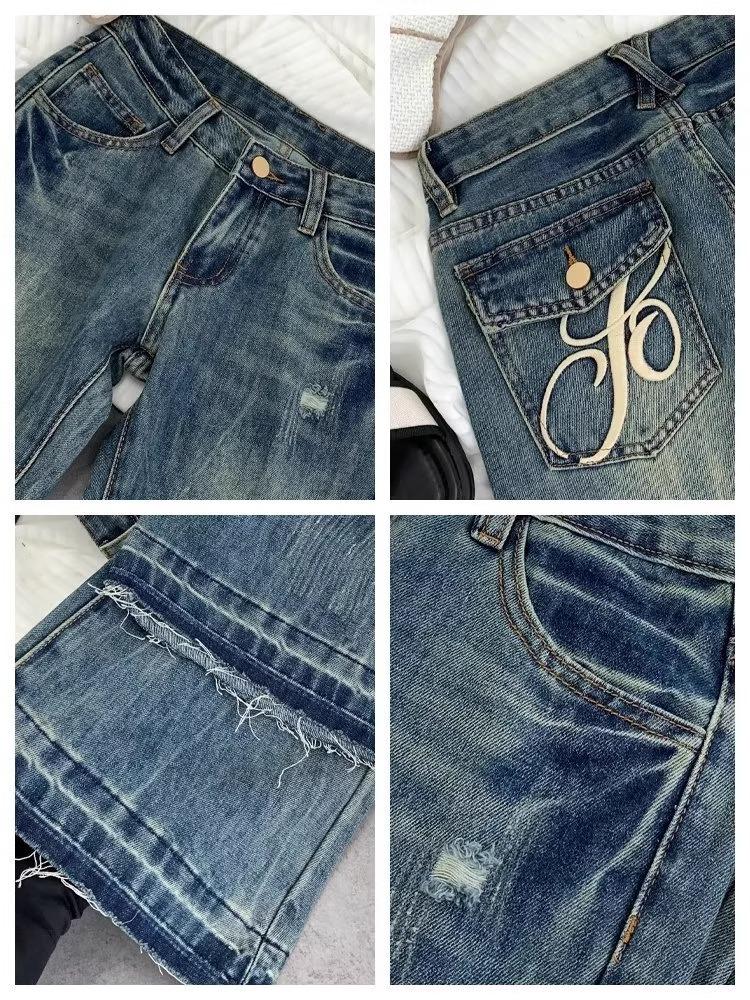 Jeans Retro de Cintura Alta Estilo Americano para Mujer Bordados a la Moda Antigua Combinables Nuevos de Corte Slim Adelgazantes de Trompeta