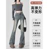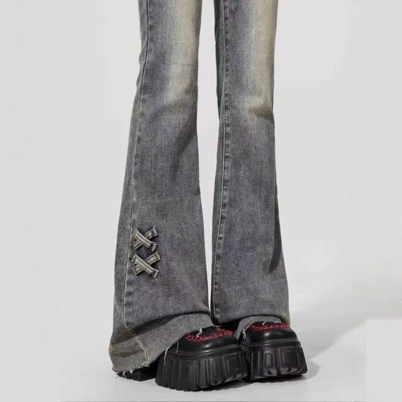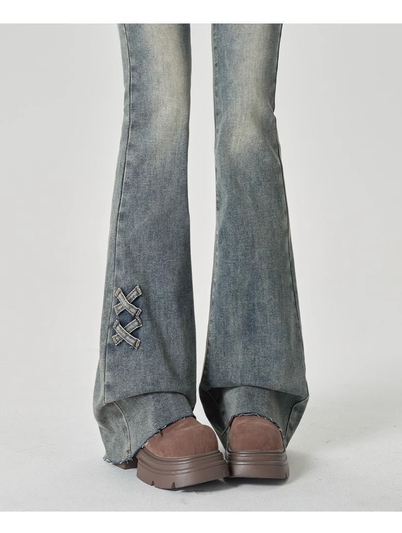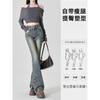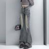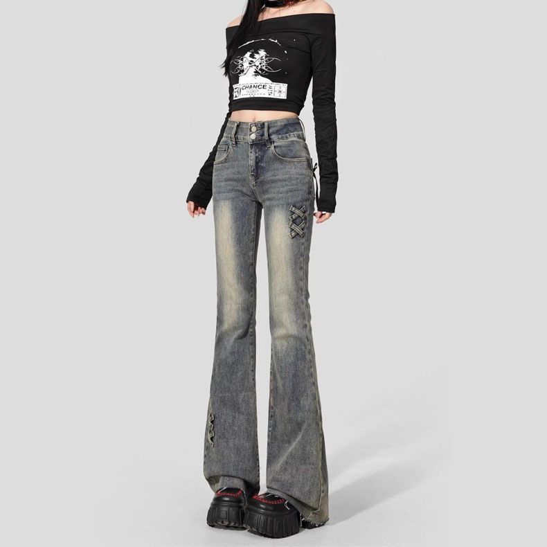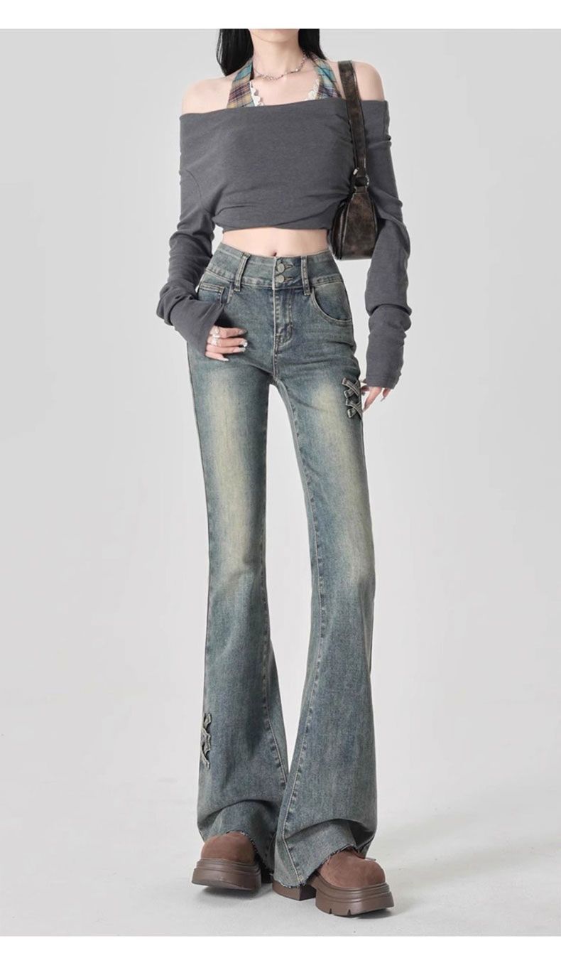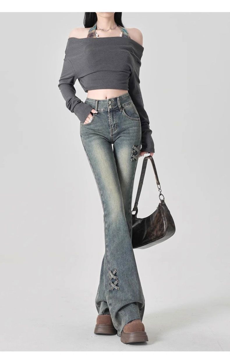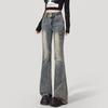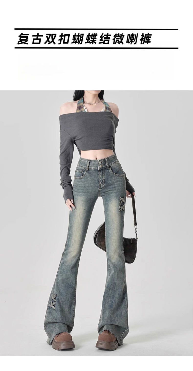 Jeans Acampanados de Cintura Alta con Doble Botonadura para Mujer de Talla Grande, Corte Slim, Estilo Retro Americano
