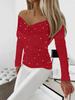 Ropa de Exportación Europea y Americana para Mujer Primavera y Otoño Top Corto con Hombros Descubiertos Camiseta Original de Manga Larga Slim para Fondo