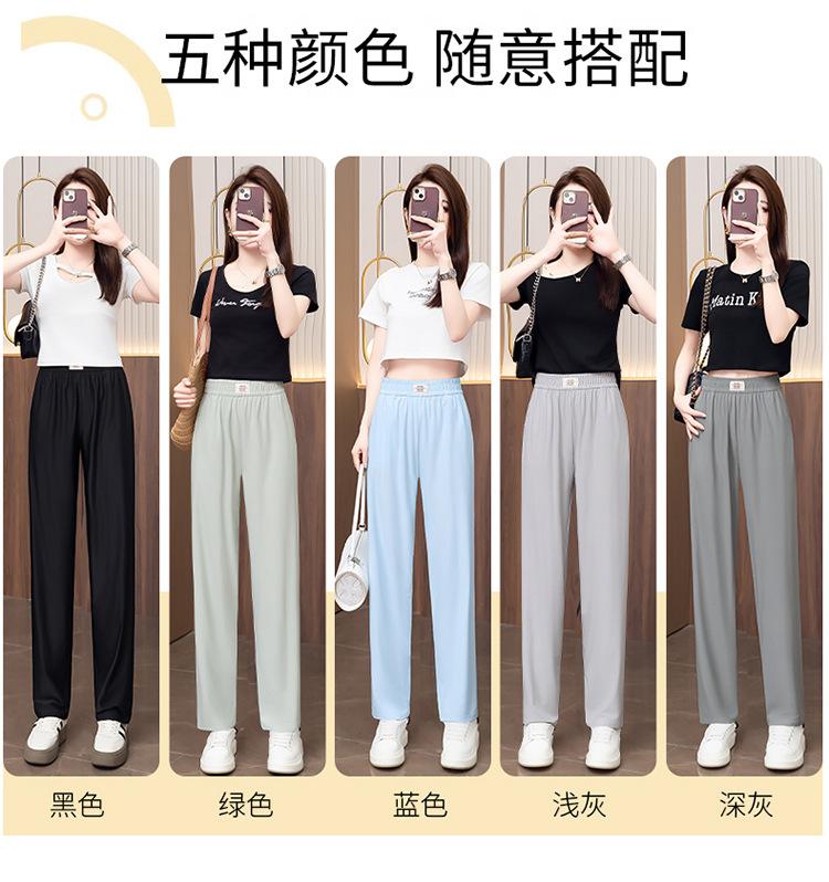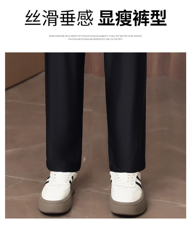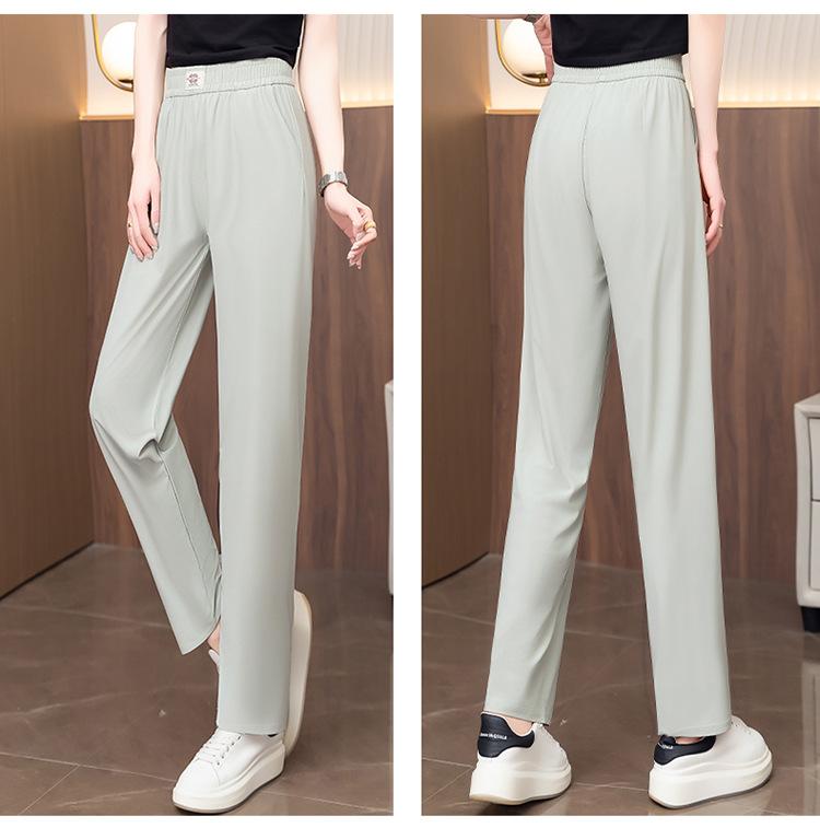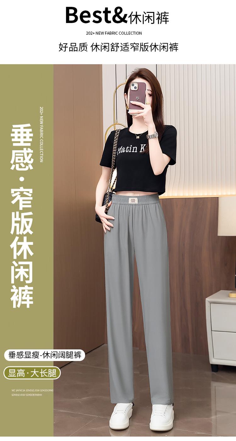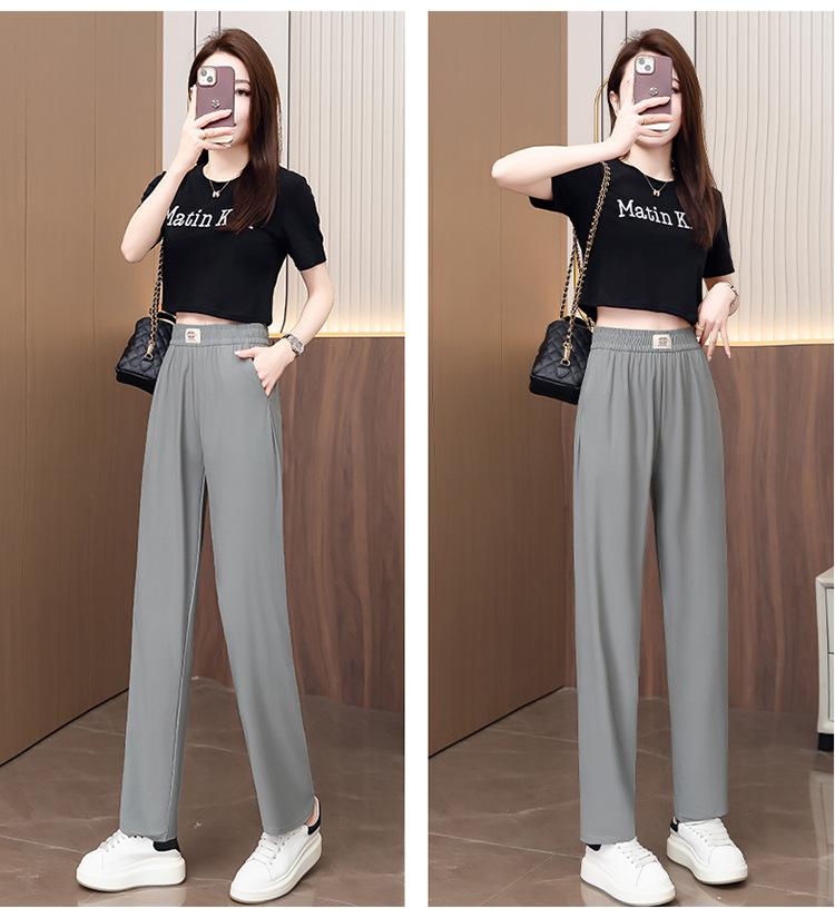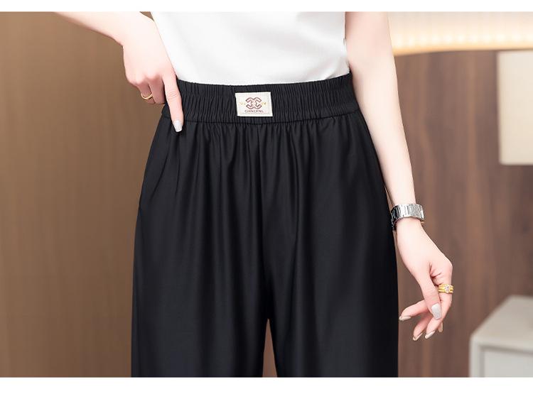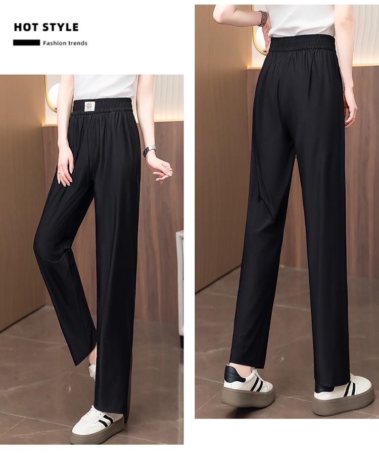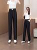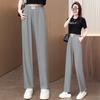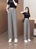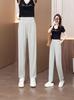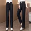 Pantalones de Gasa de Pierna Ancha para Mujer 2025 Nuevo Pantalón Nueve Puntos Drapeado de Cintura Alta Pantalón Casual Recto Primavera y Otoño Adelgazante de Cintura Alta