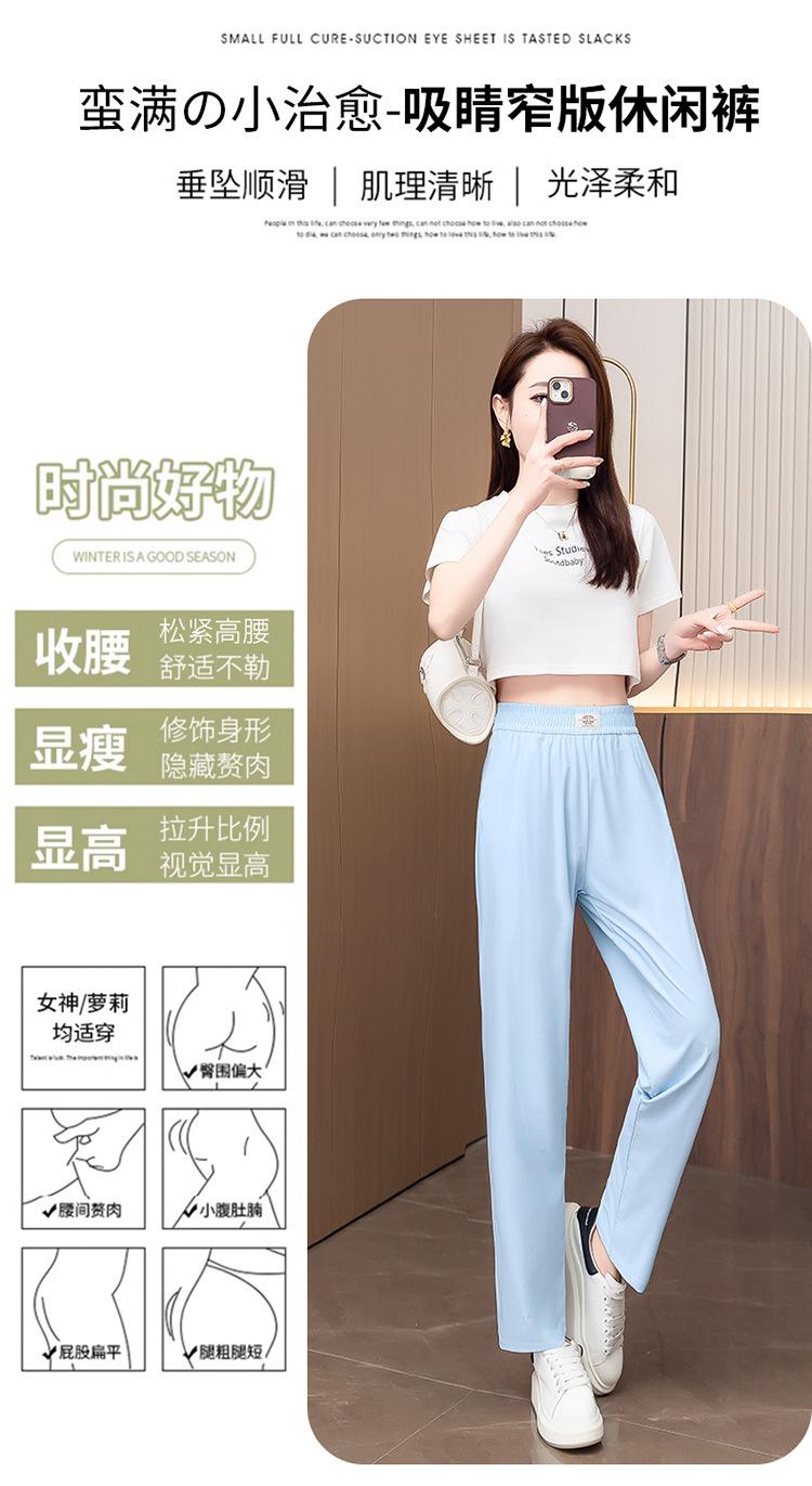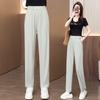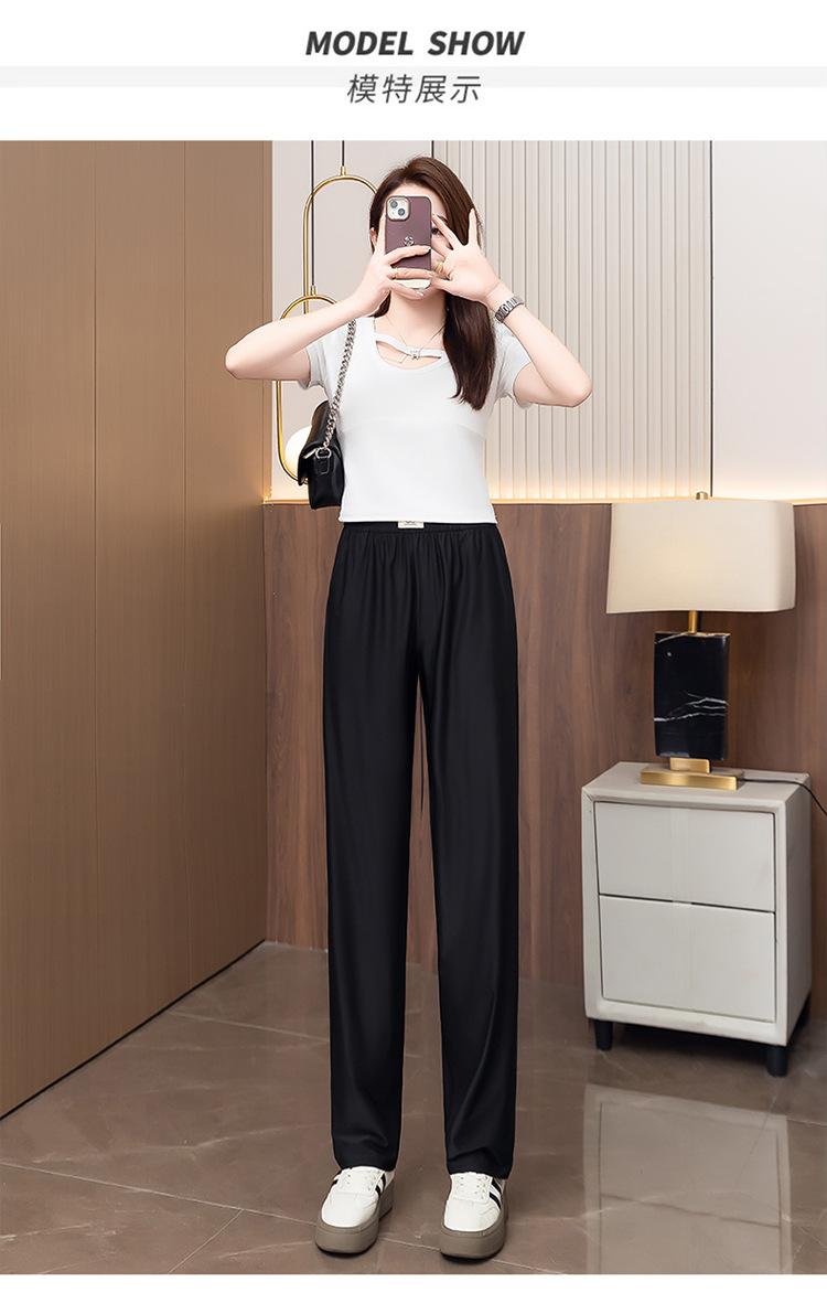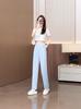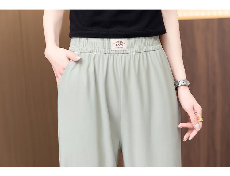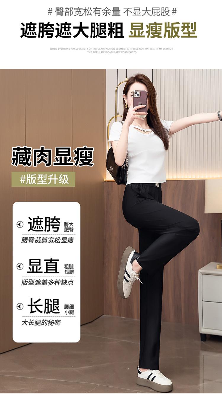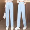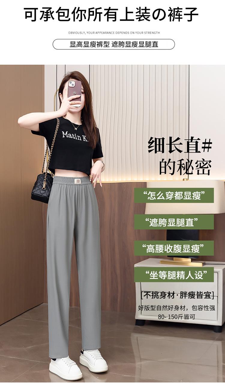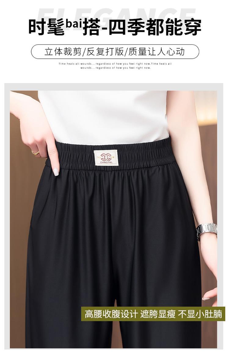Pantalones de Gasa de Pierna Ancha para Mujer 2025 Nuevo Pantalón Nueve Puntos Drapeado de Cintura Alta Pantalón Casual Recto Primavera y Otoño Adelgazante de Cintura Alta