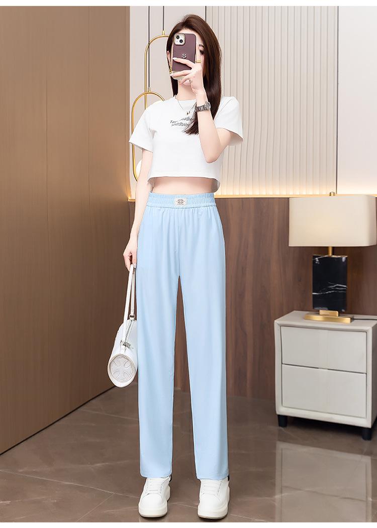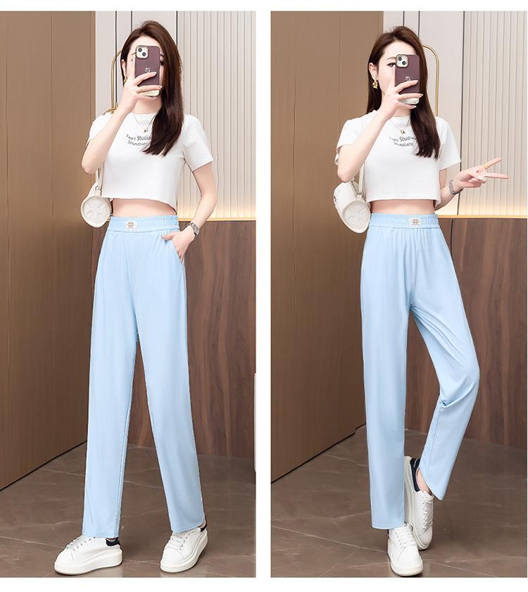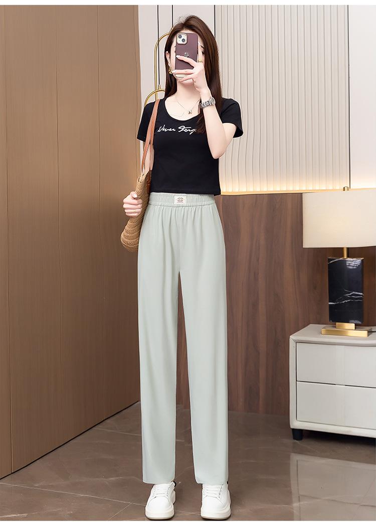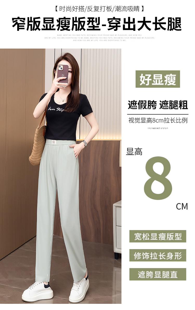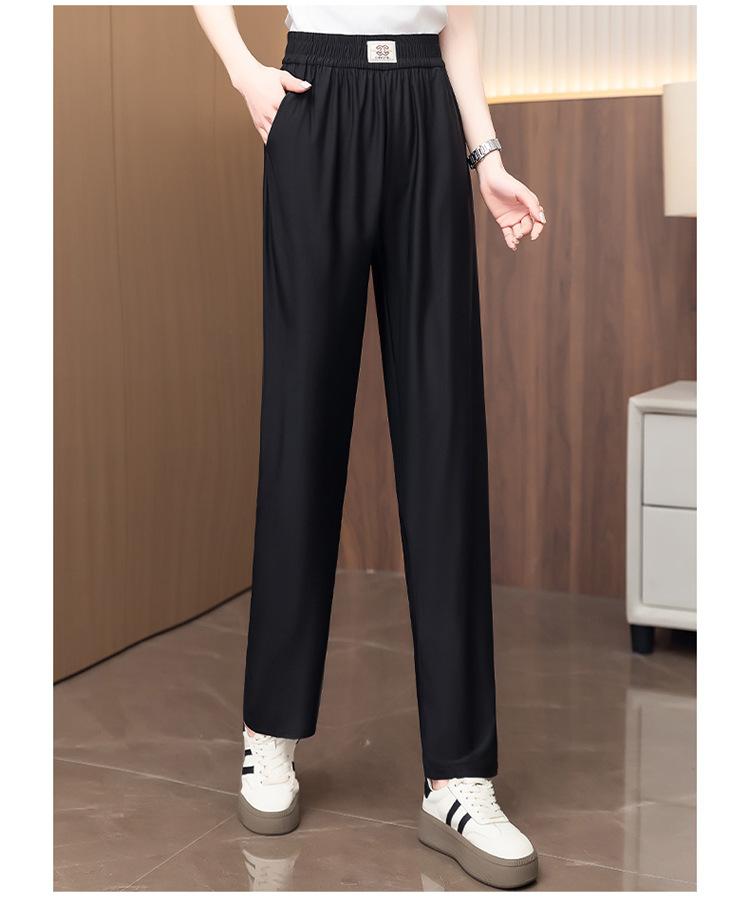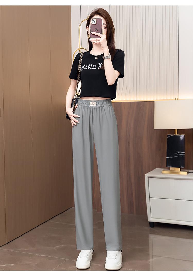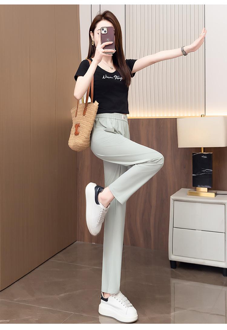 Pantalones de Gasa de Pierna Ancha para Mujer 2025 Nuevo Pantalón Nueve Puntos Drapeado de Cintura Alta Pantalón Casual Recto Primavera y Otoño Adelgazante de Cintura Alta