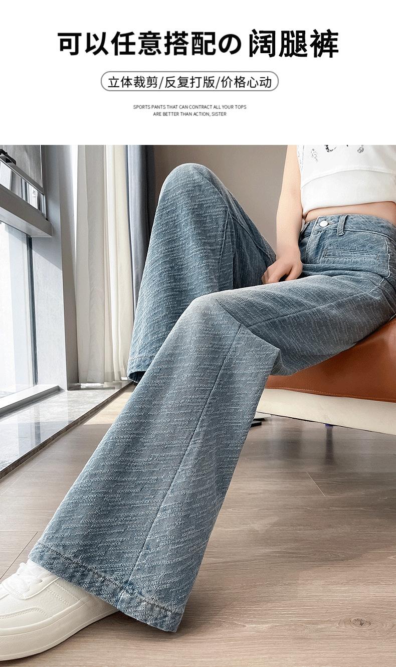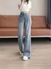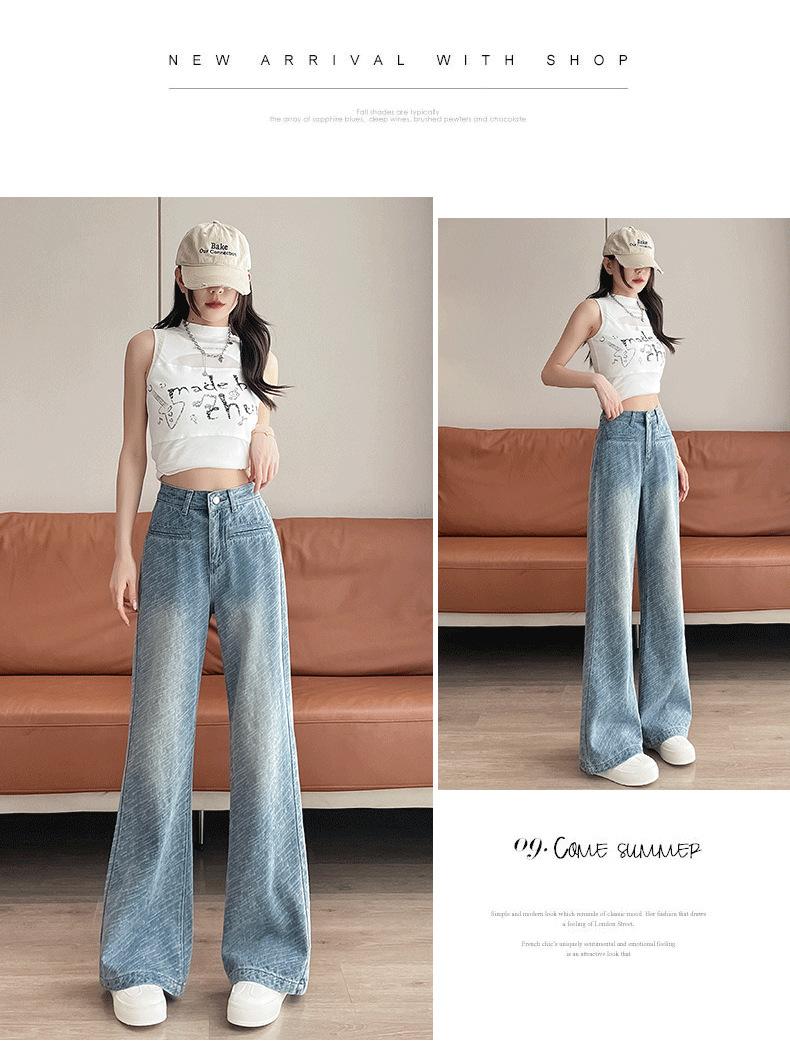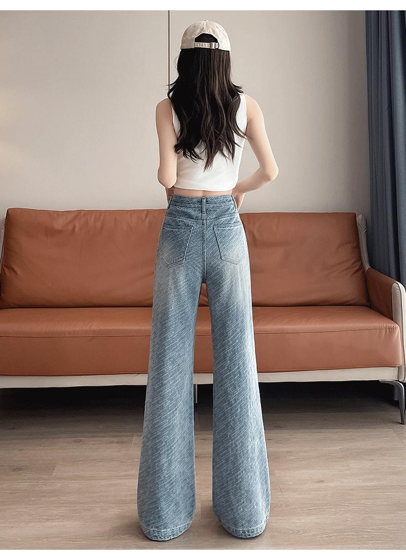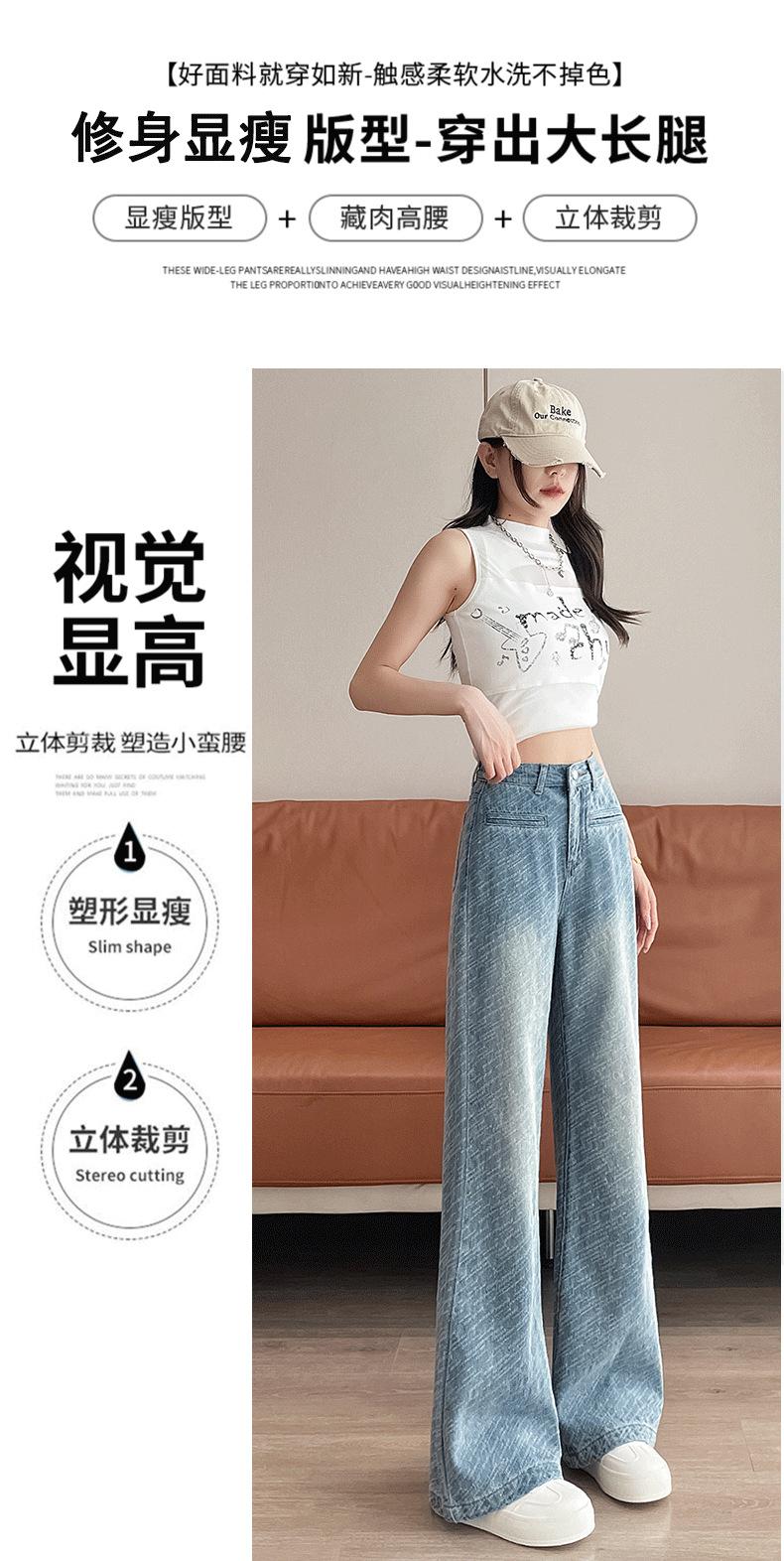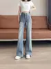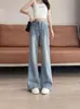 Jeans Acampanados Holgados de Cintura Alta Nuevos de Verano 2025 para Mujer con Patrón de Cielo Estrellado, Jeans Acampanados de Pierna Ancha que Realzan la Altura y Adelgazan