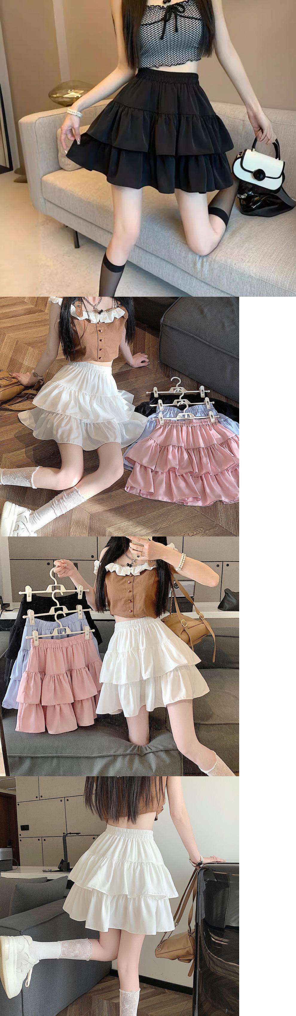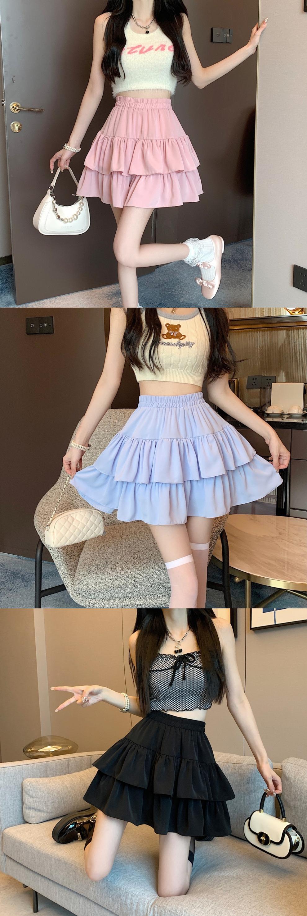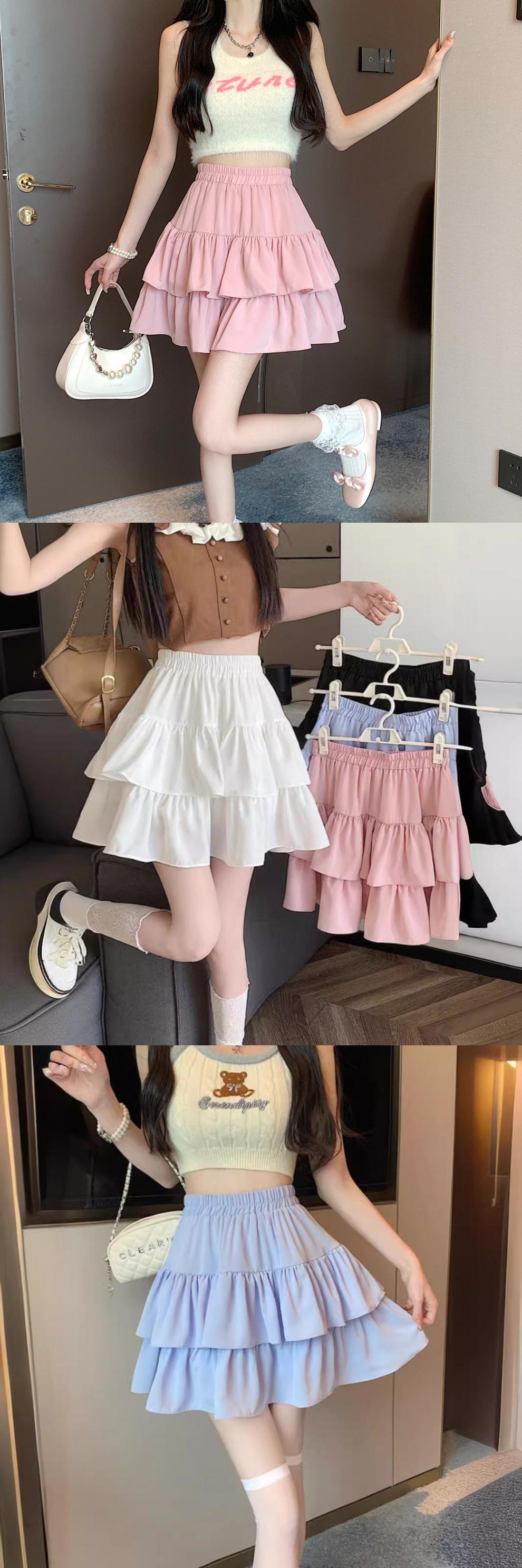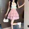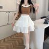 Zh Falda de Pastel Dulce Francés para Mujer Primavera y Verano Nuevo Cintura Alta Look Adelgazante Anti-Exposición Falda Corta Blanca Línea A