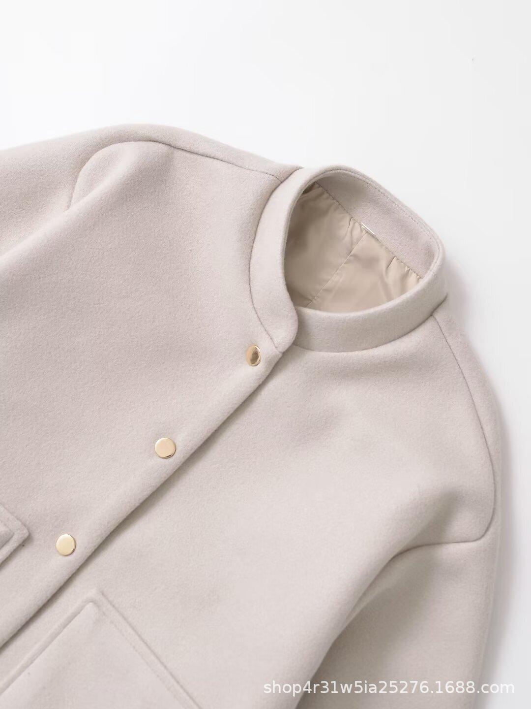 Europeo y Americano 2025 Invierno Nuevo Retro Suelto Casual Cuello Manga Larga Pic Chaqueta Corta para Mujer