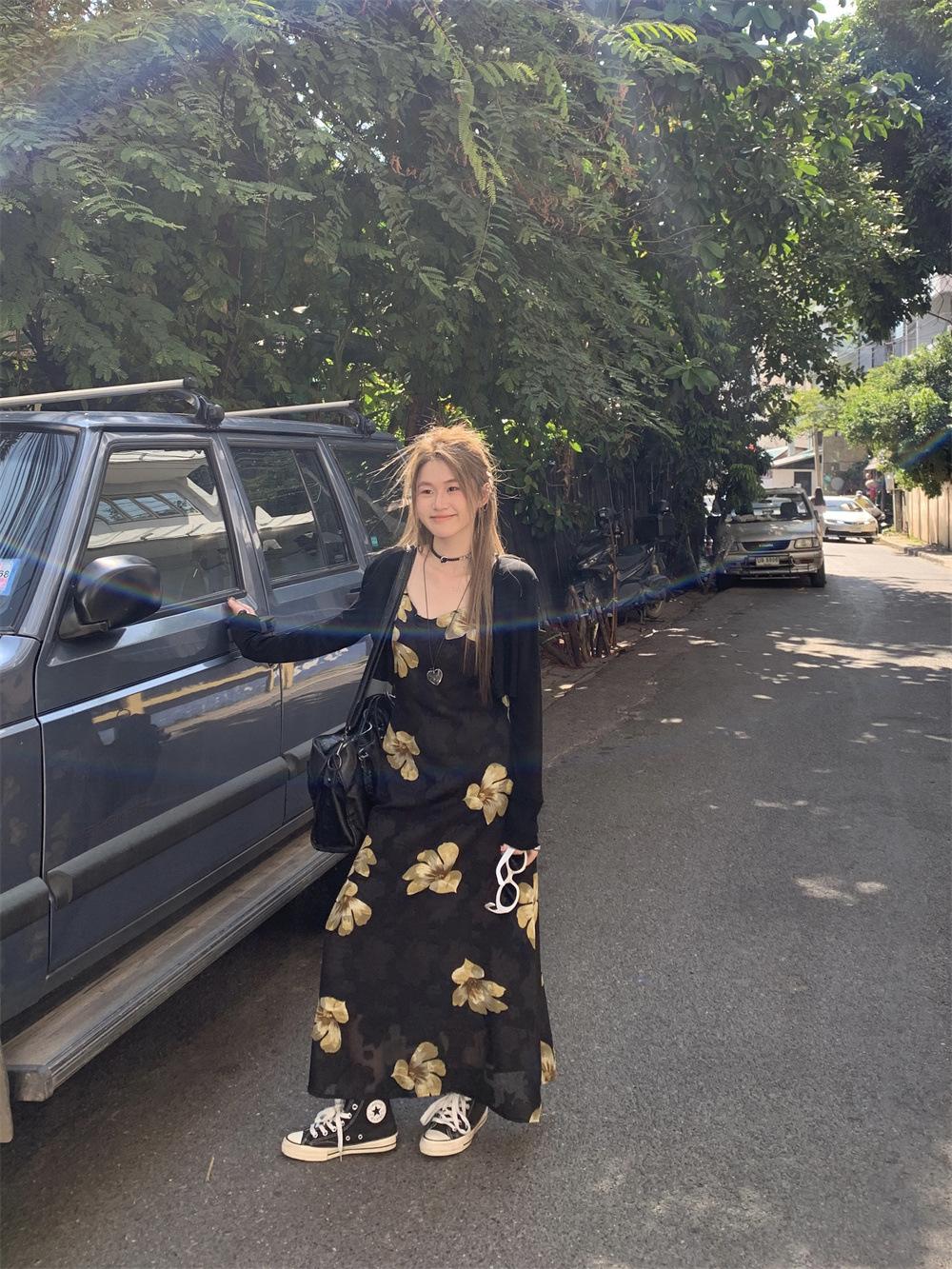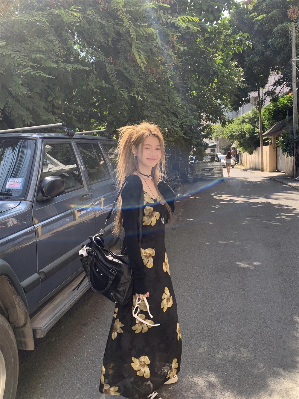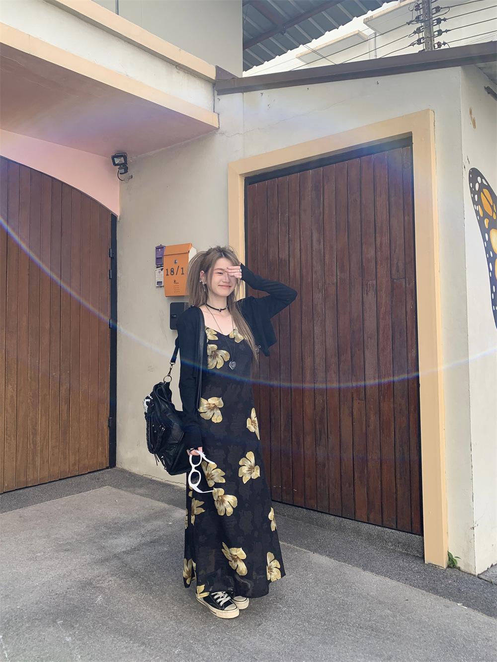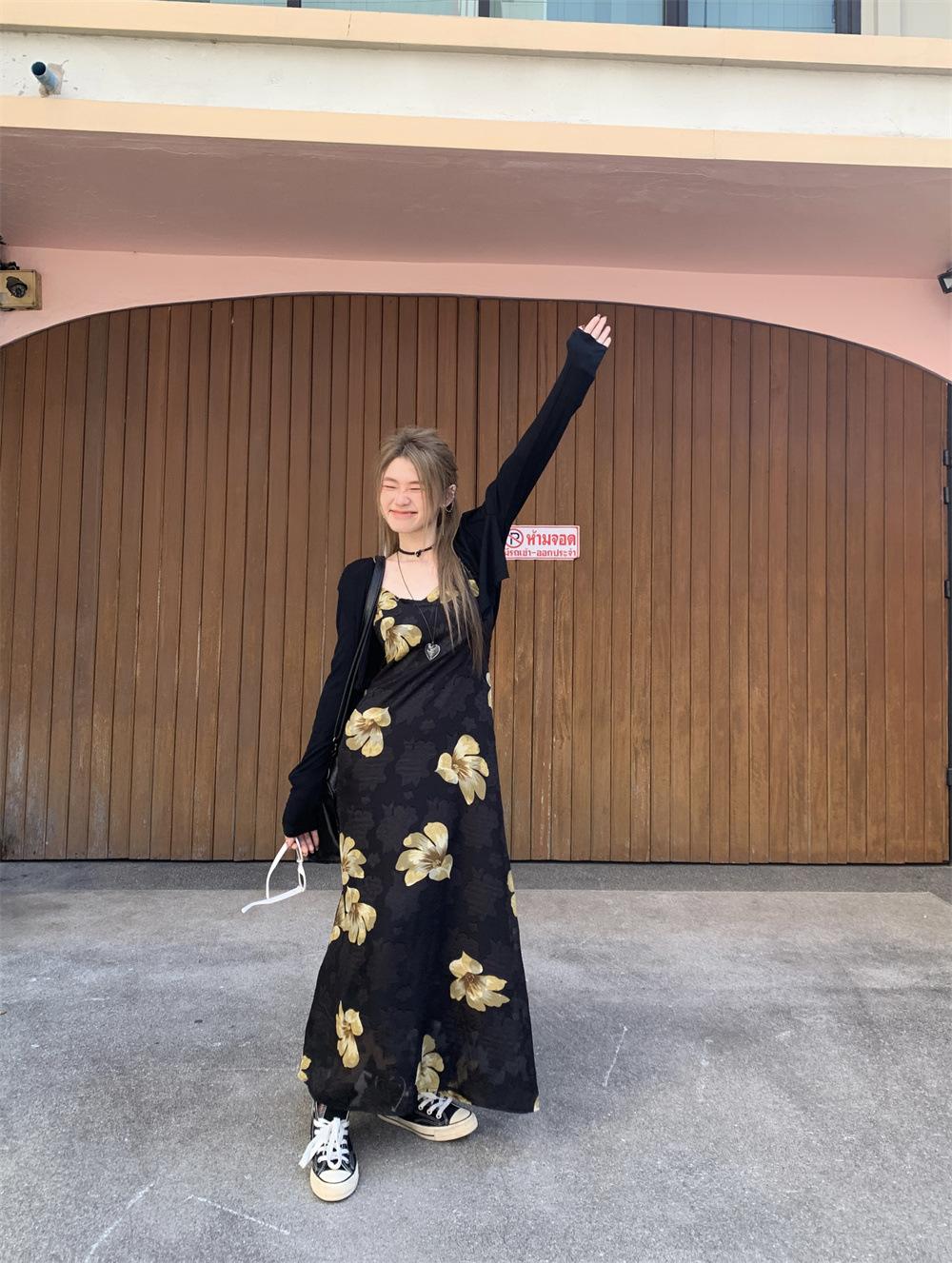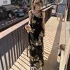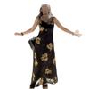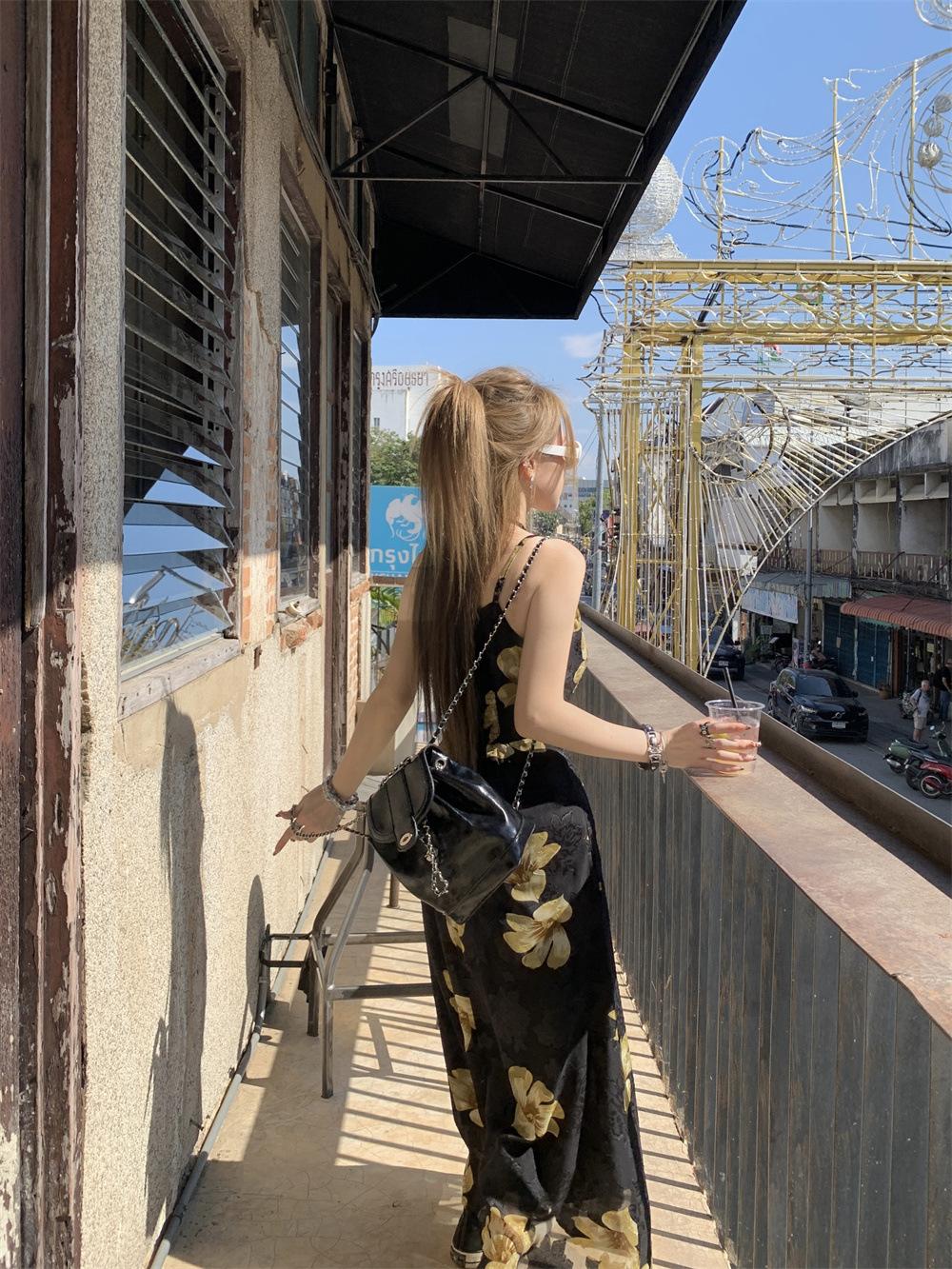 Vestido de Tirantes Floral Retro Francés de Talla Grande Verano Vacaciones en la Costa Hermana Real Elegante Look Adelgazante Cintura Falda Larga A-Line