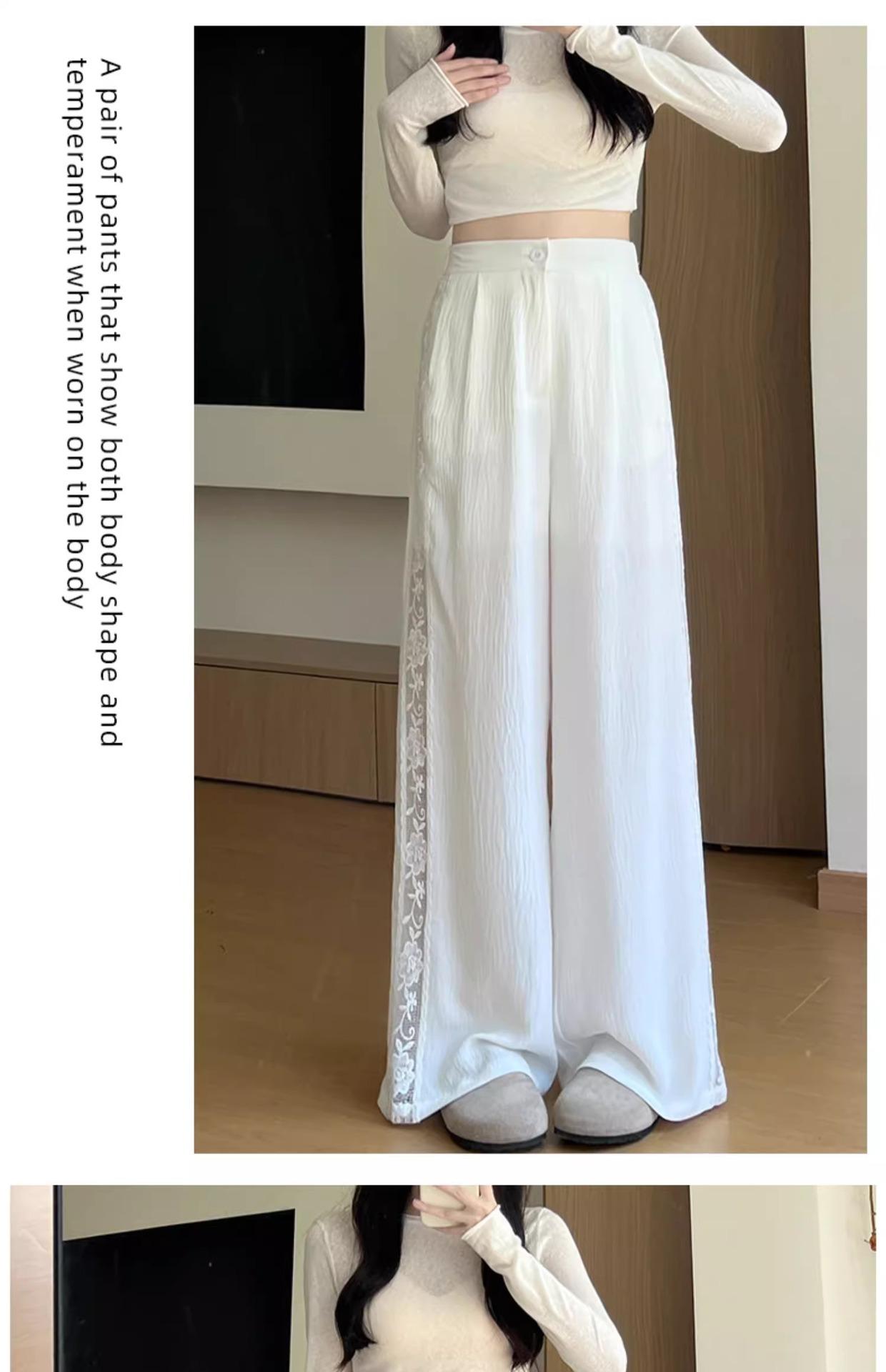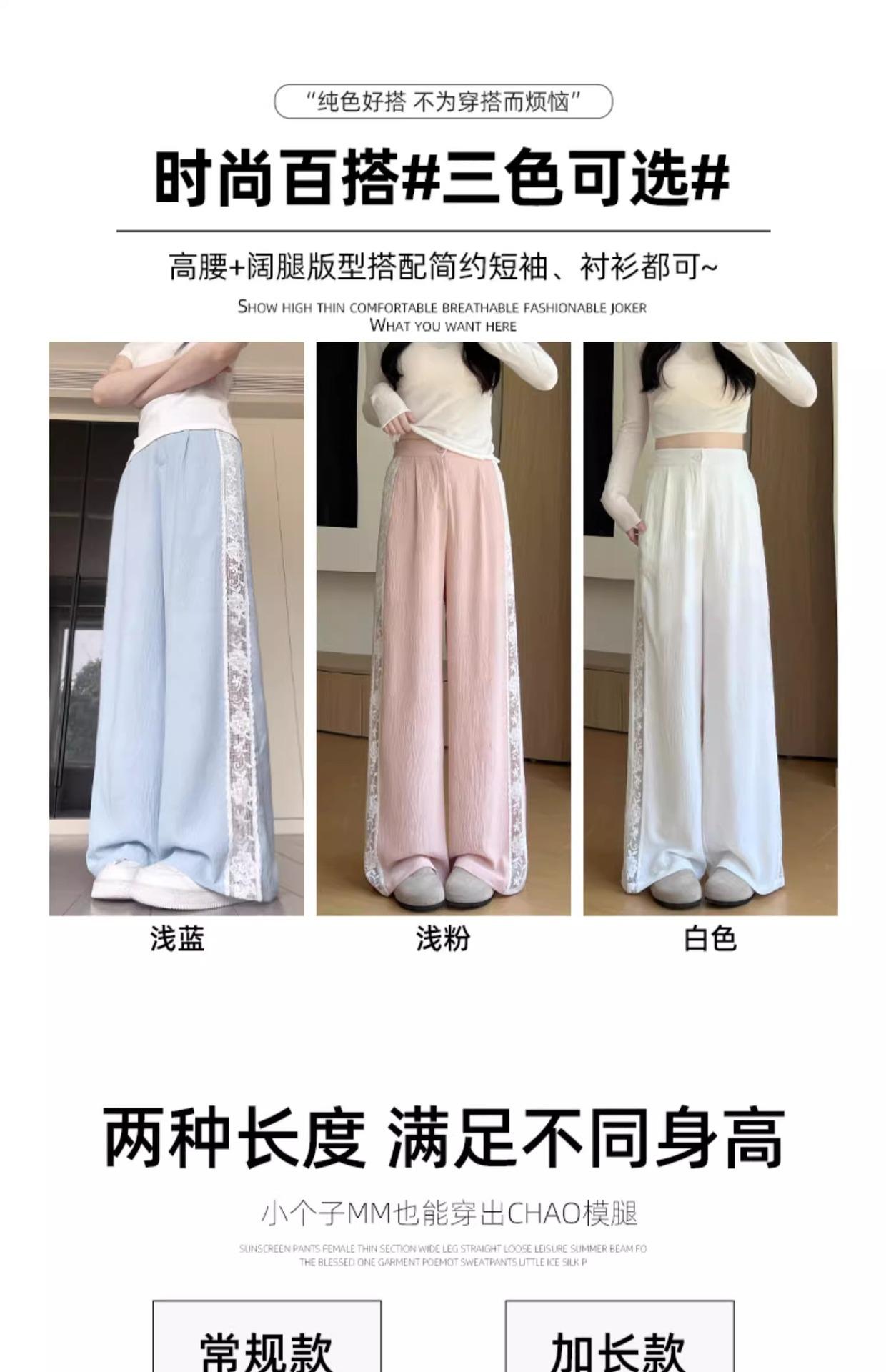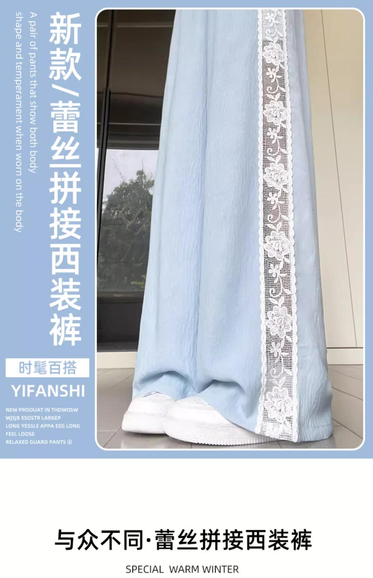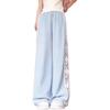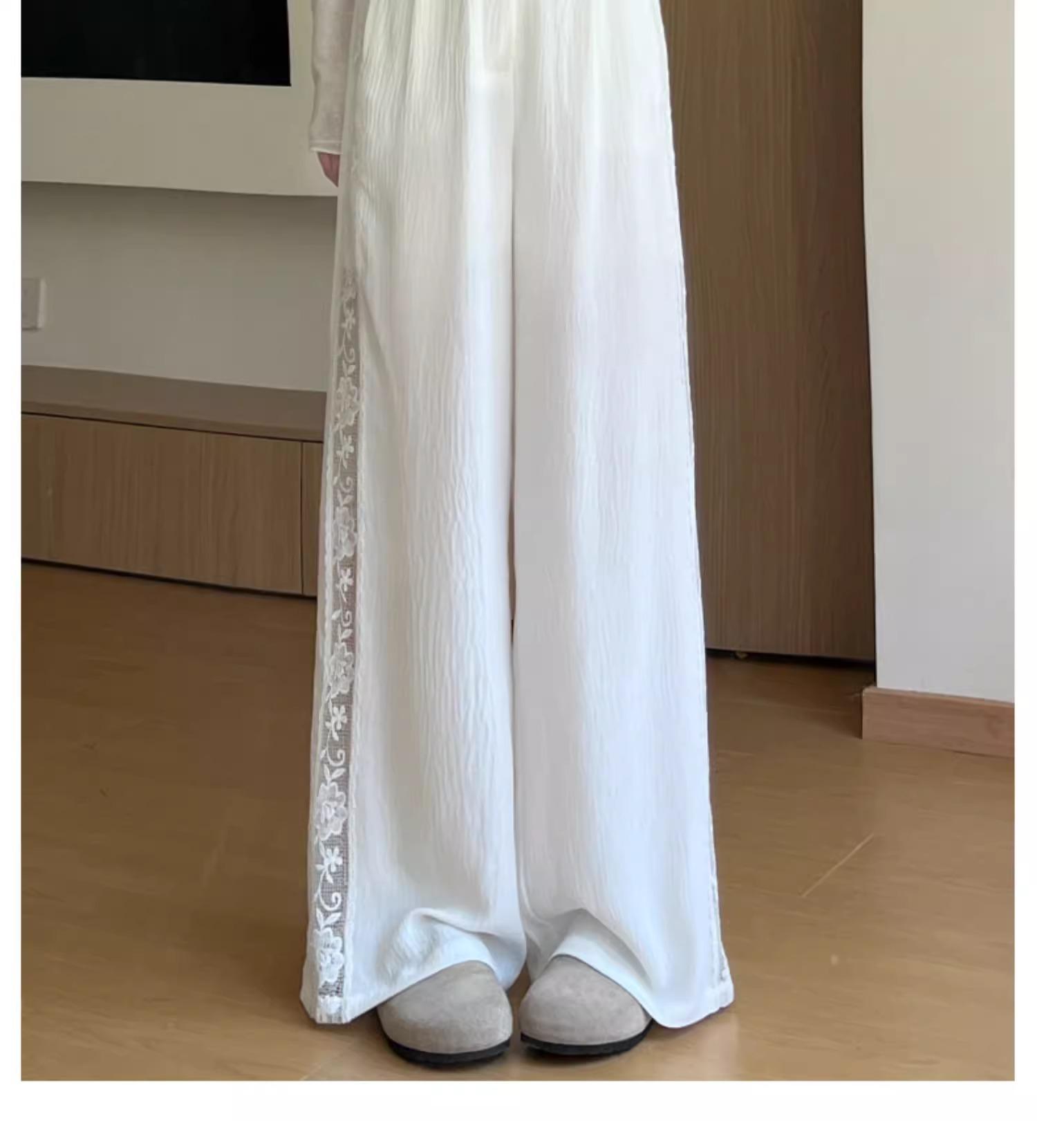 Pantalones Azules de Encaje con Aberturas para Mujer Verano 2025 Nuevo Diseño Cintura Alta Sueltos Pierna Ancha Seda de Hielo Ligera