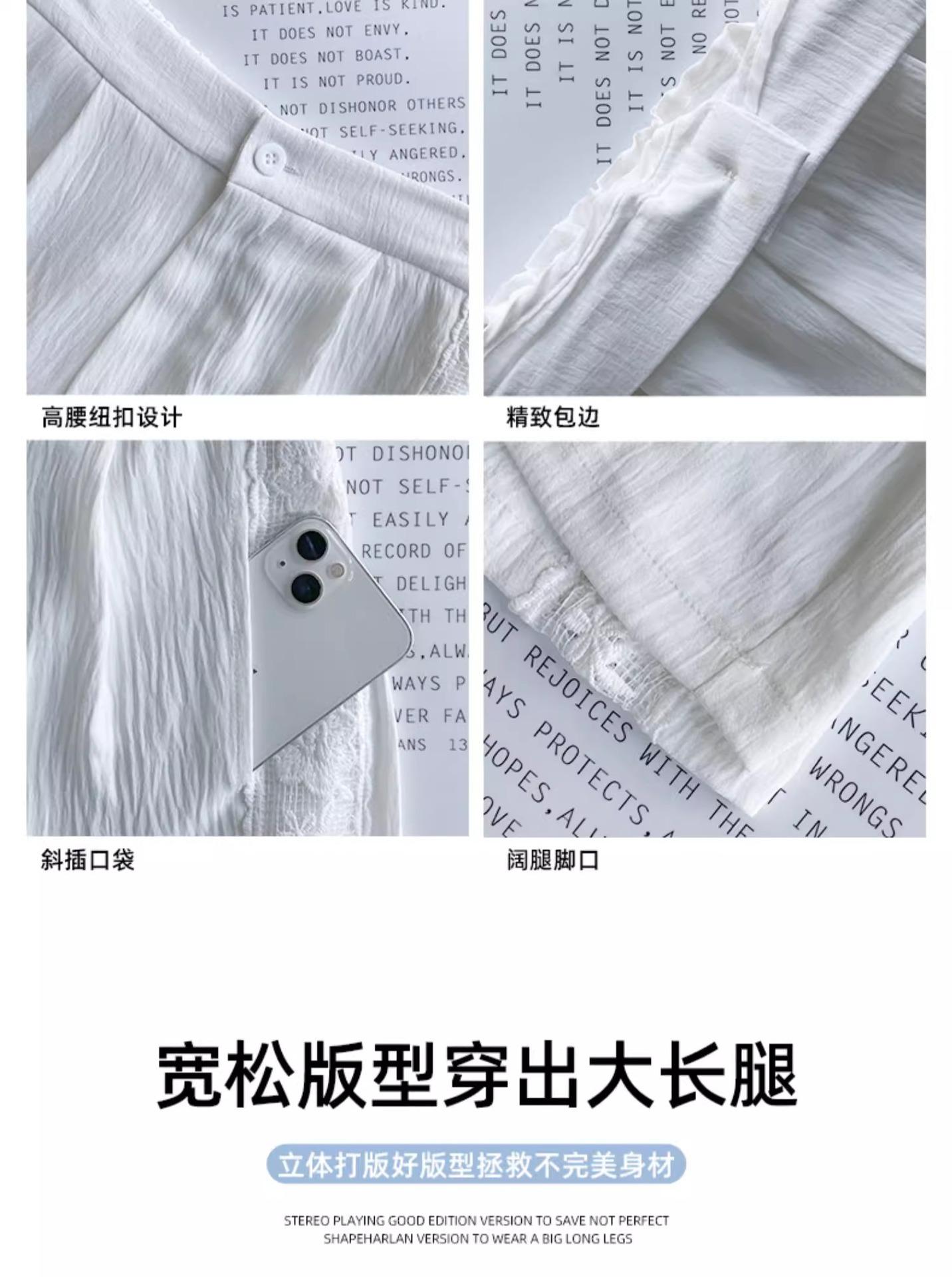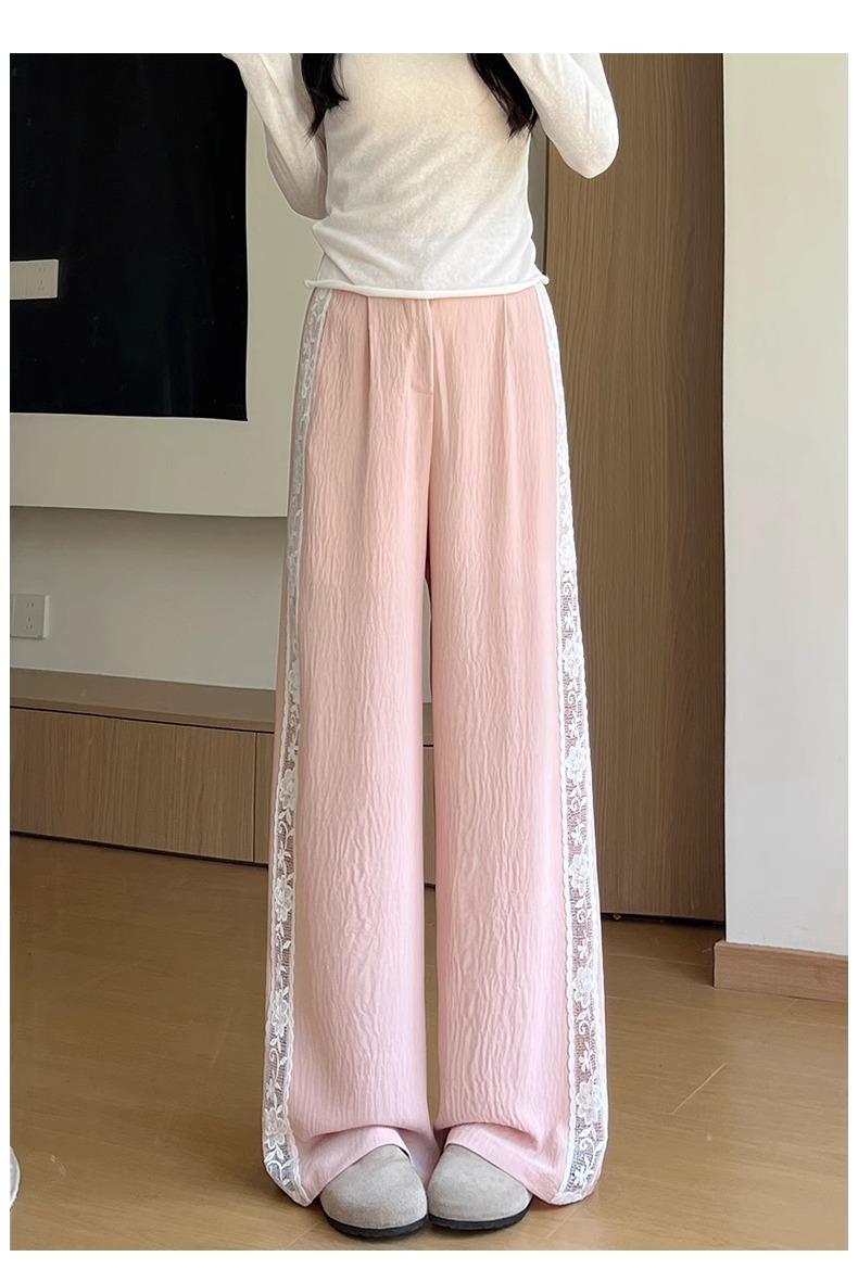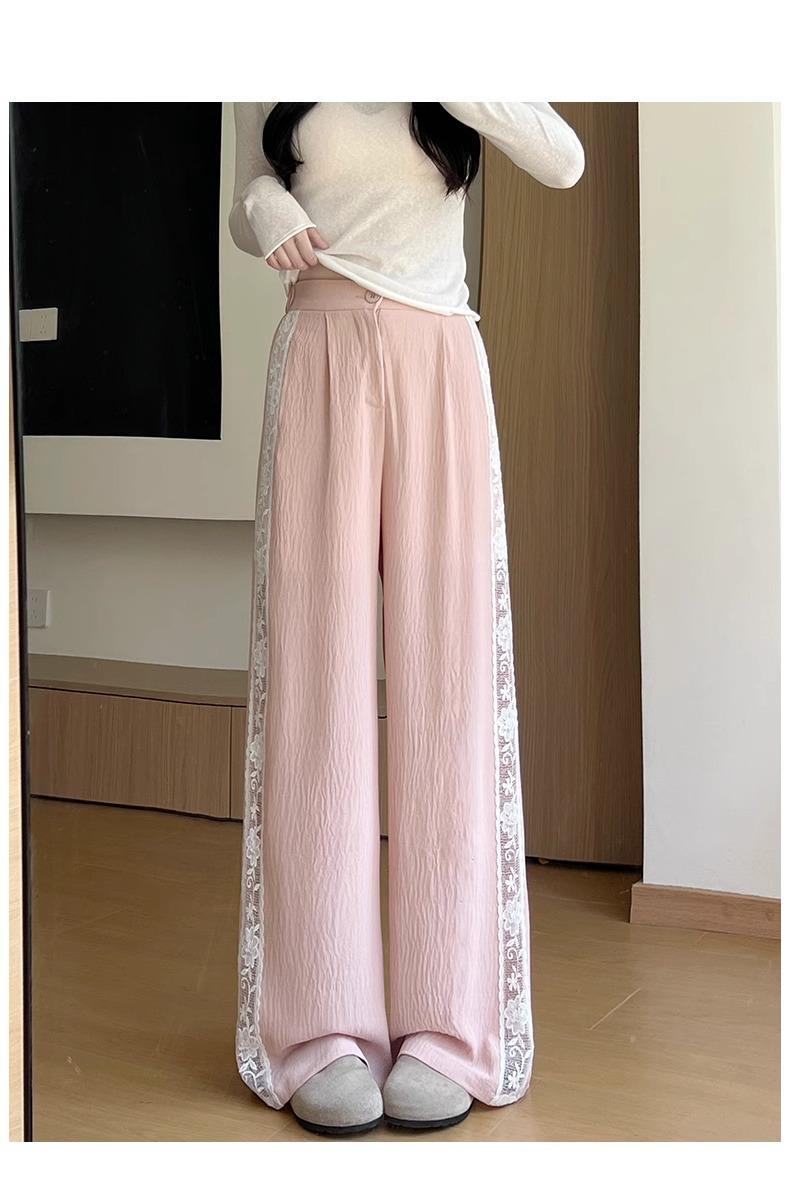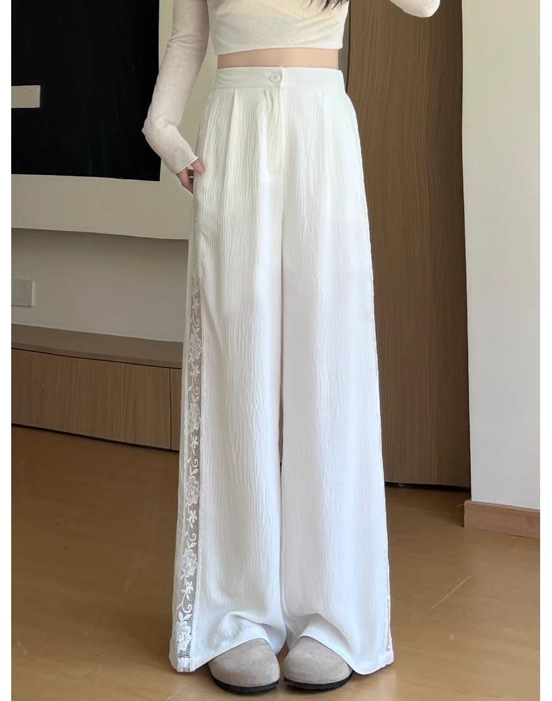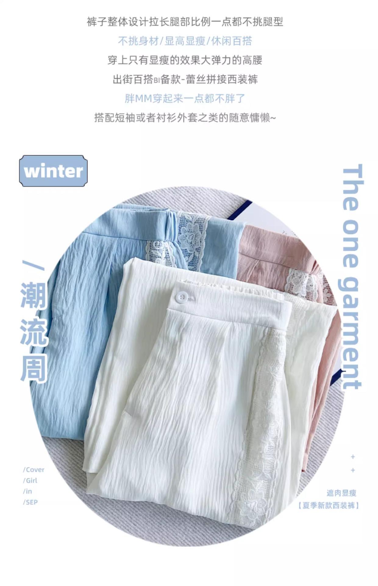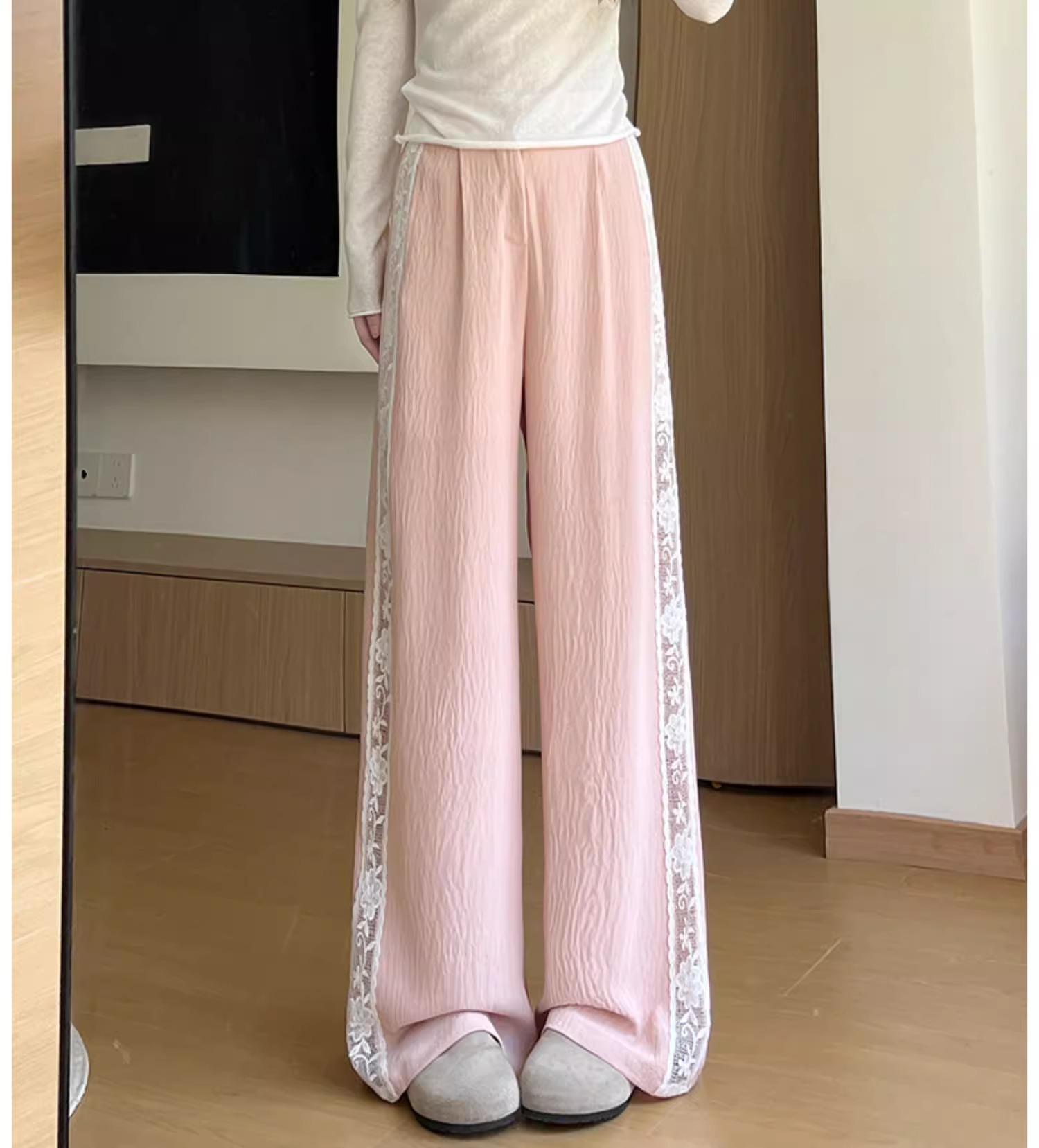 Pantalones Azules de Encaje con Aberturas para Mujer Verano 2025 Nuevo Diseño Cintura Alta Sueltos Pierna Ancha Seda de Hielo Ligera