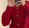 Suéter Cárdigan de Punto de Nuevo Estilo Otoñal para Mujer, Chaqueta de Suéter Corta de Estilo Suave y Relajado, Top Rojo de Cuello Redondo para Mujer