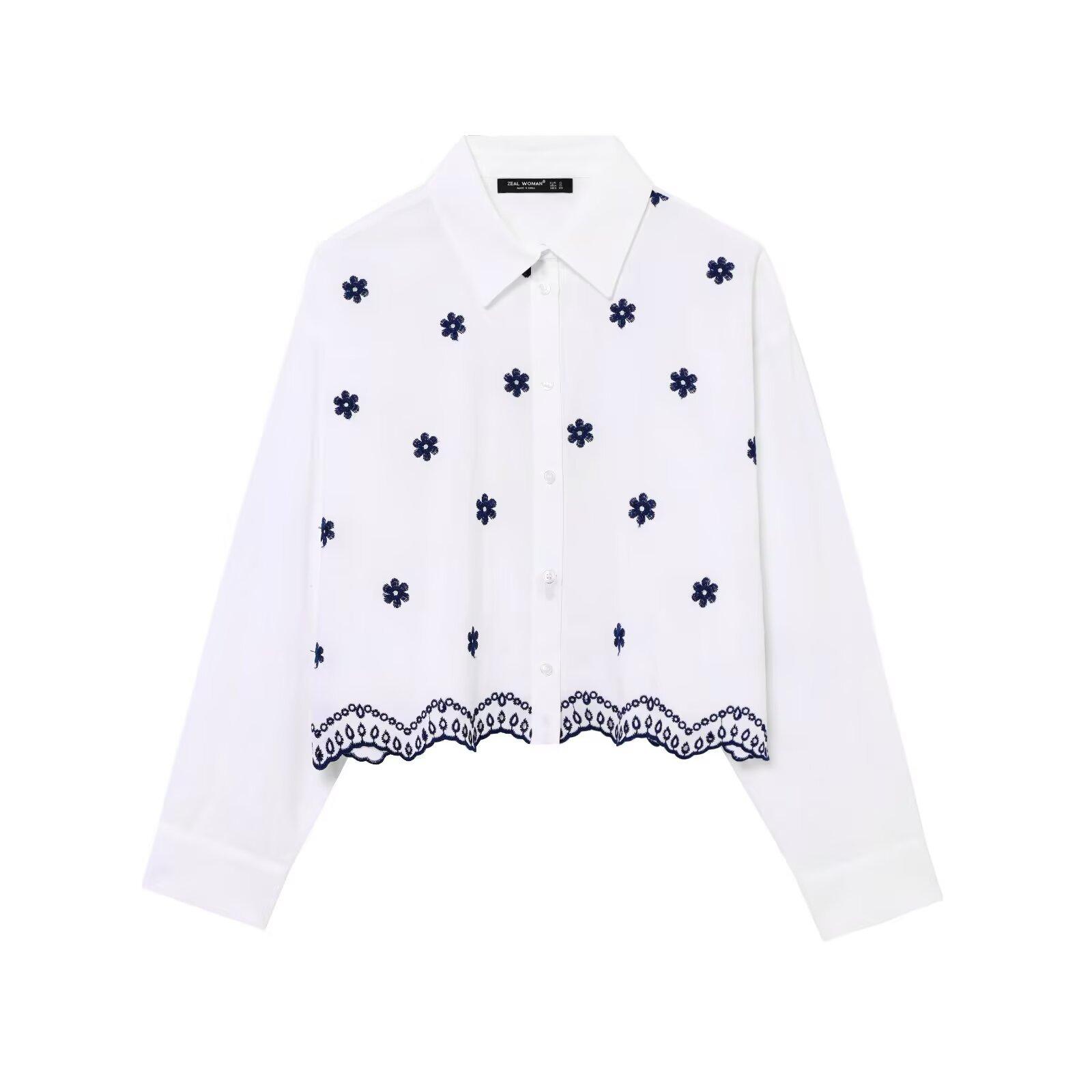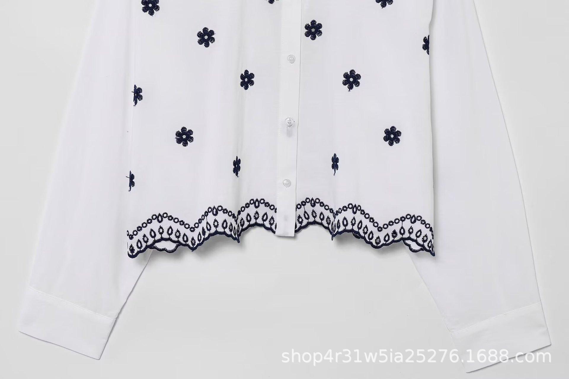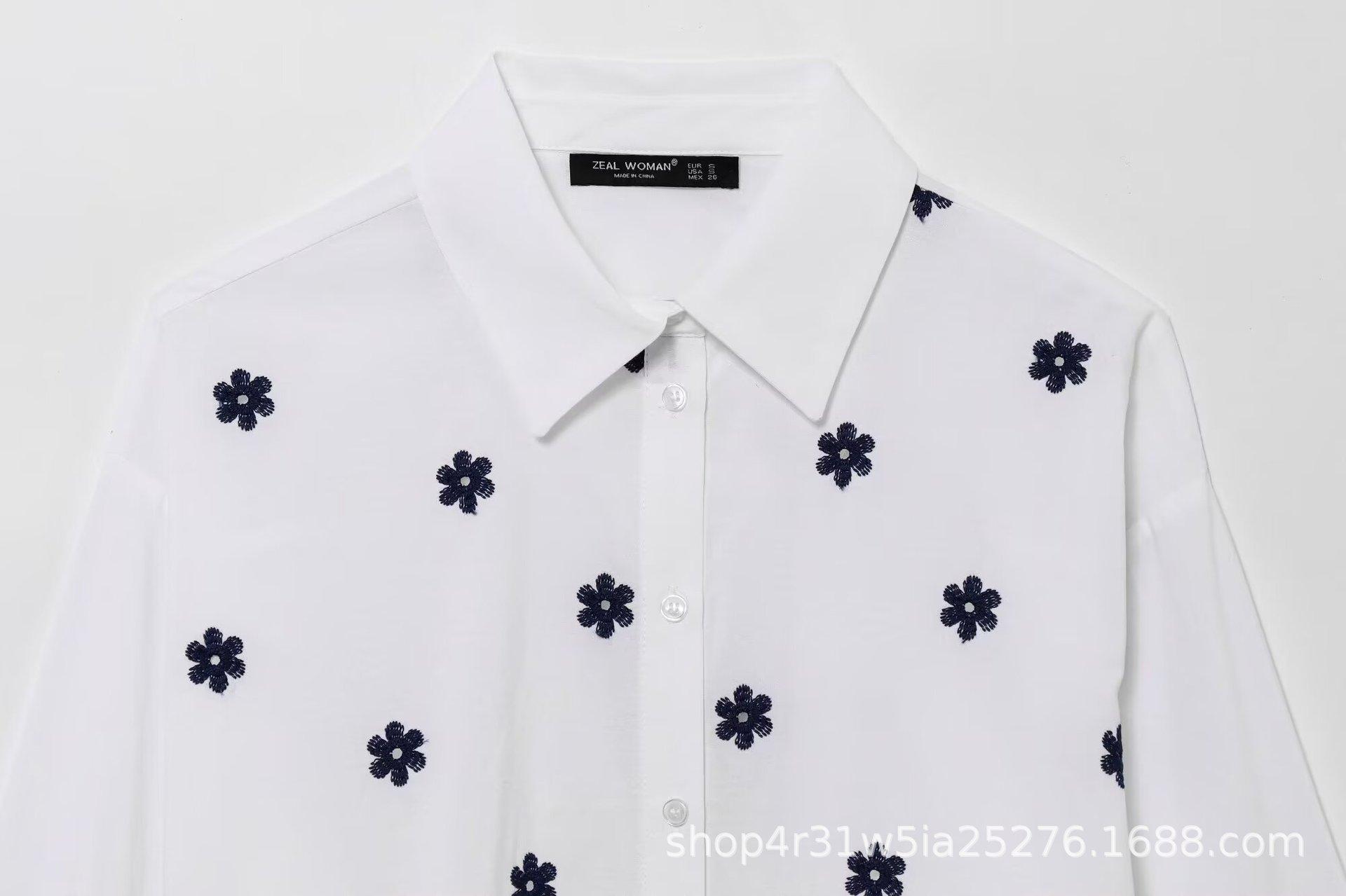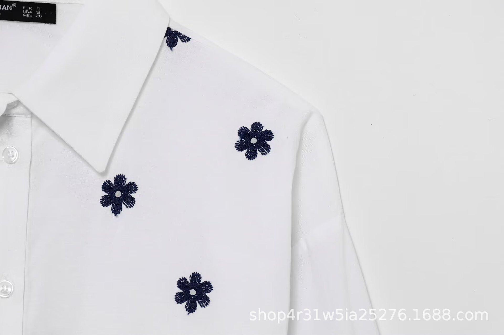 Amazon Aliexpress Exportación Transfronteriza Ropa de Mujer 2025 Verano Nuevo Camisas Holgadas Bordadas con Flores Tops