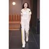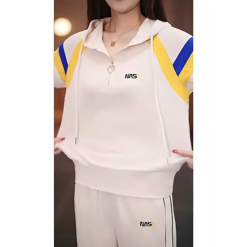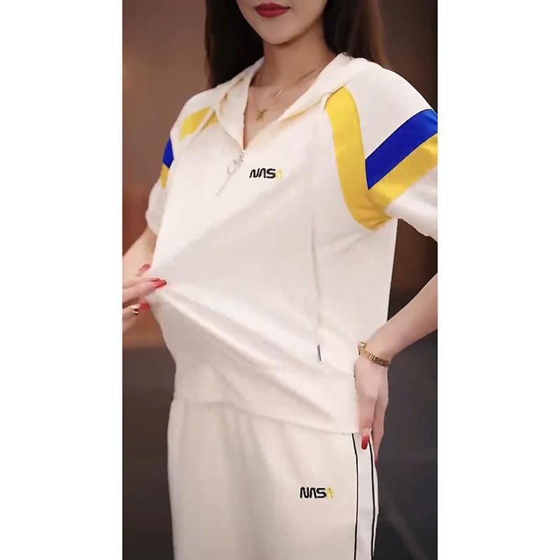 Conjunto deportivo casual de estilo europeo para mujer, verano 2025, nuevo estilo, que reduce la edad, estilo urbano de influencer, conjunto de dos piezas moderno de manga corta con capucha y cremallera