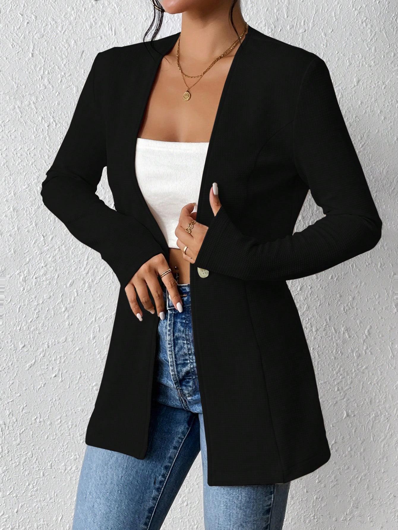 2025 Europeo y Americano Amazon Nuevo Estilo Coreano Moda Cuello en V Un Botón Color Puro Manga Larga Chaqueta de Traje Pequeña