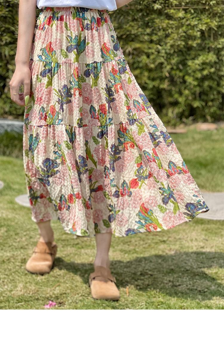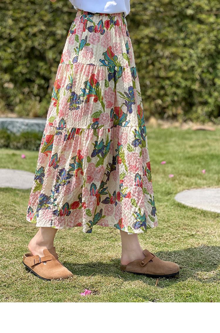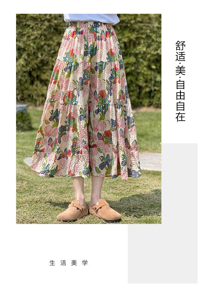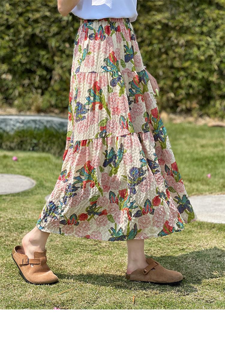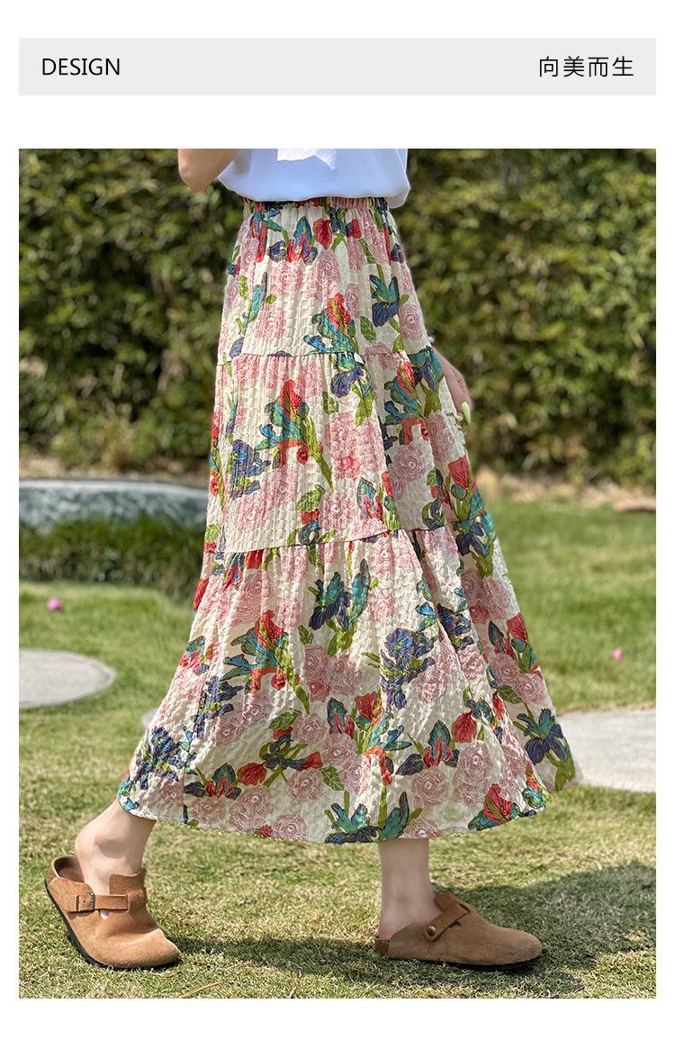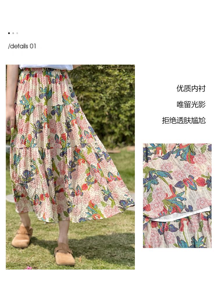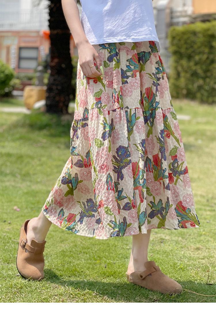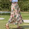 Falda Forrada con Estampado de Bosque para Mujer Verano 2025 Nuevo Estilo Retro Suave Cintura Elástica Falda Larga