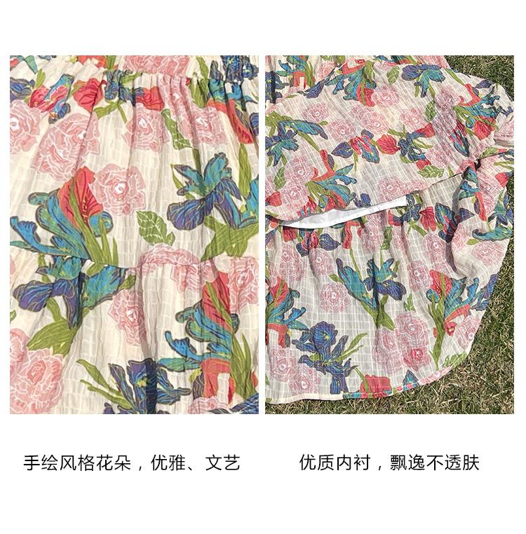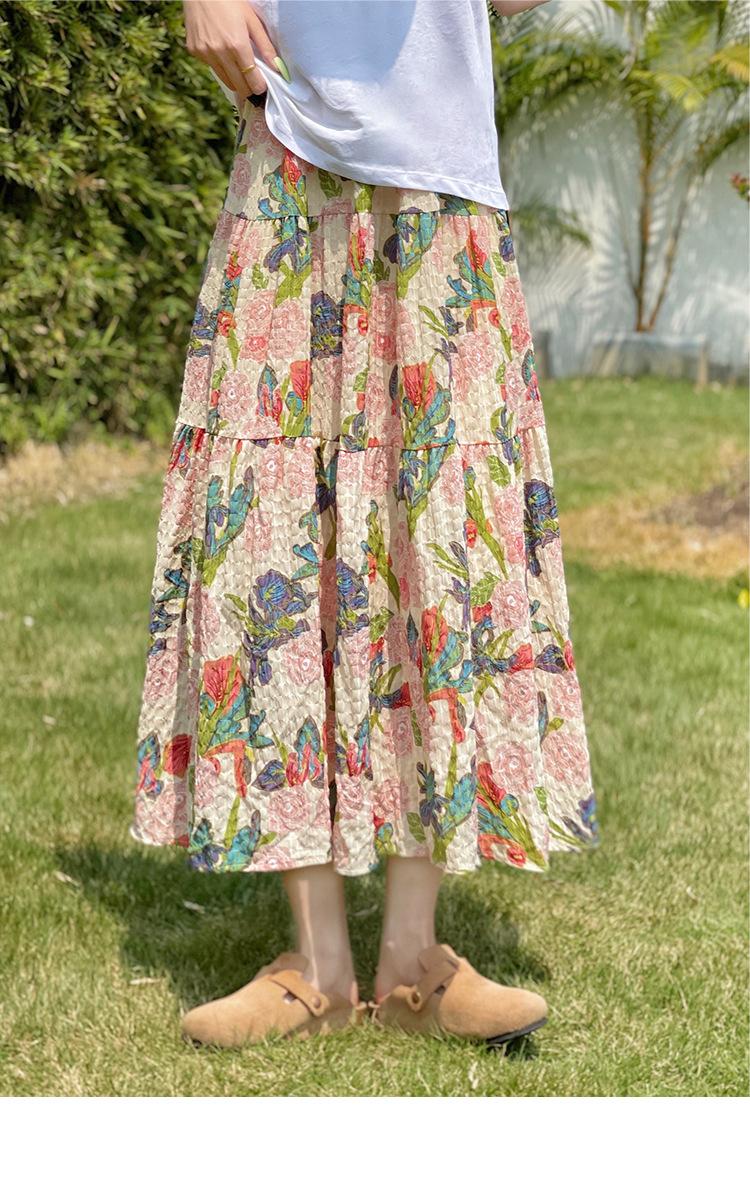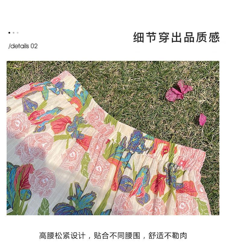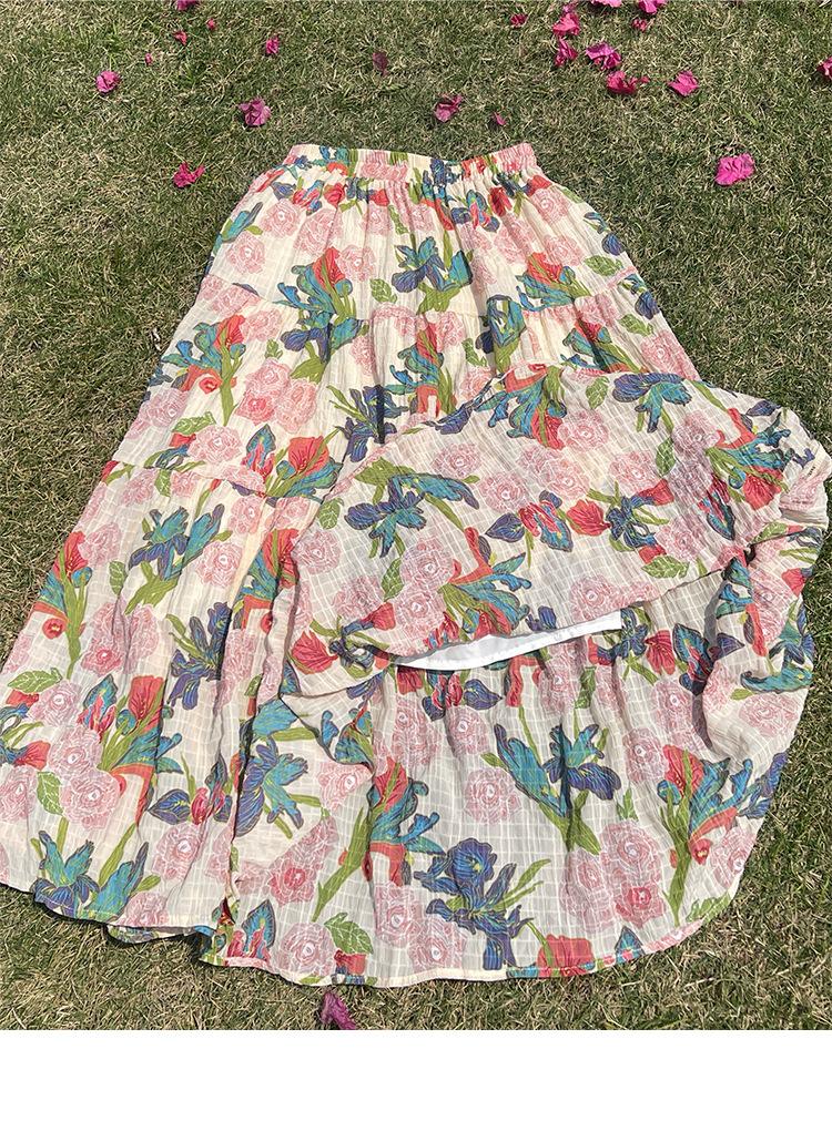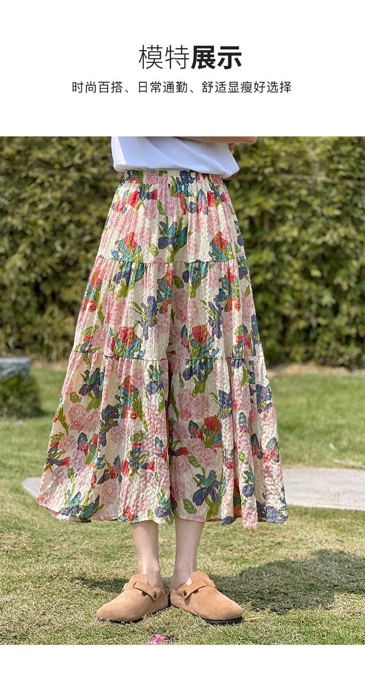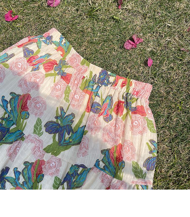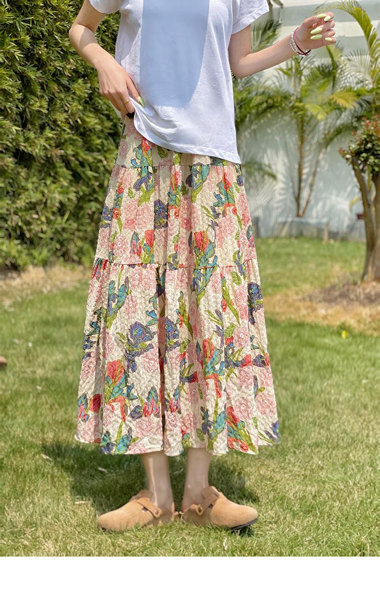Falda Forrada con Estampado de Bosque para Mujer Verano 2025 Nuevo Estilo Retro Suave Cintura Elástica Falda Larga