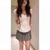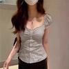 Camisa Blanca de Manga Corta Abullonada con Volantes y Corte Slim para Mujer, Nuevo Estilo de Verano Versátil Top Corto Coreano Interior
