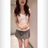 Six-button puff sleeves-grey and white vertical striped short sleeves with fungus edges