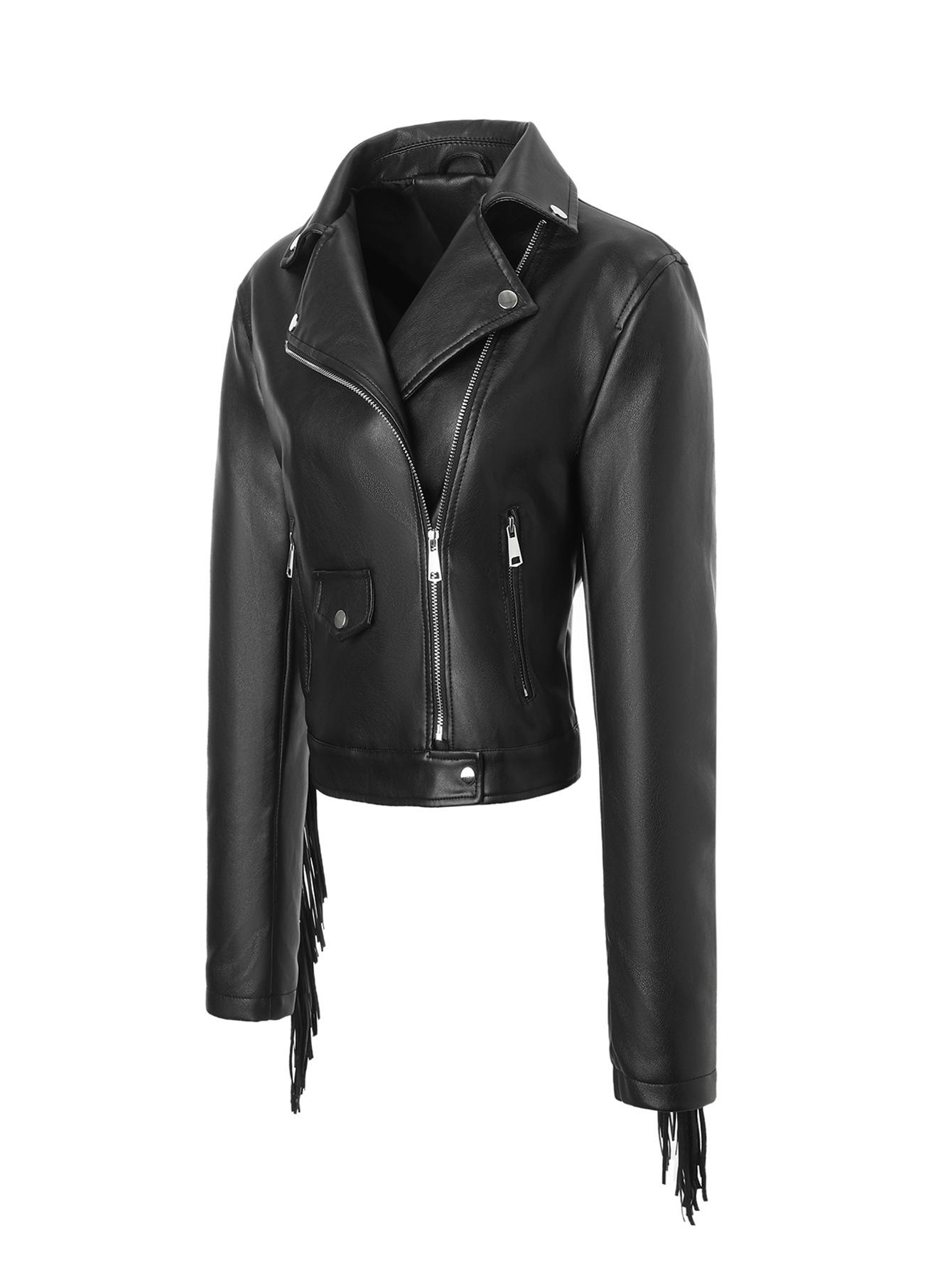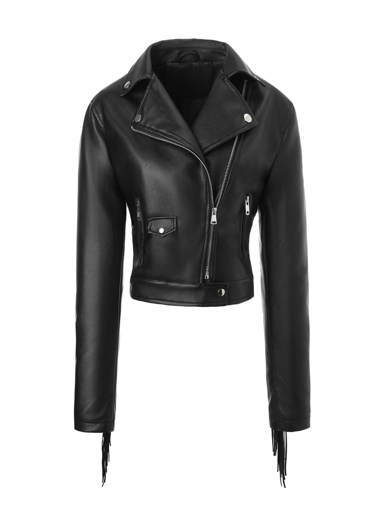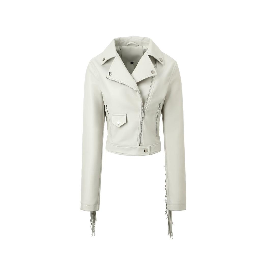 Chaqueta Corta de Cuero PU Estilo Europeo y Americano con Solapa y Borlas, Corte Slim, Chaqueta Biker, Nuevo Modelo de Primavera