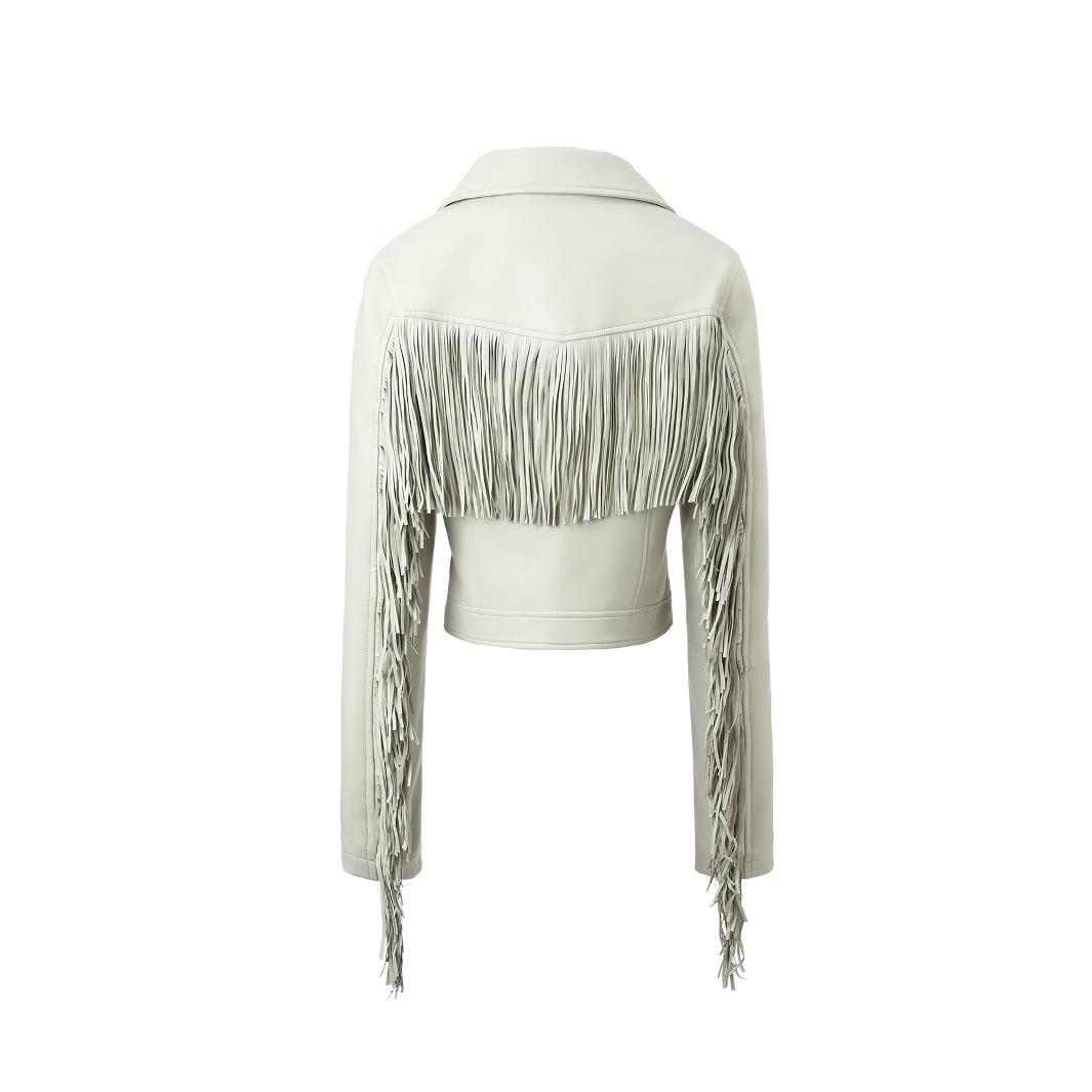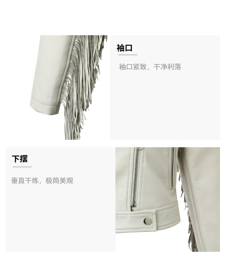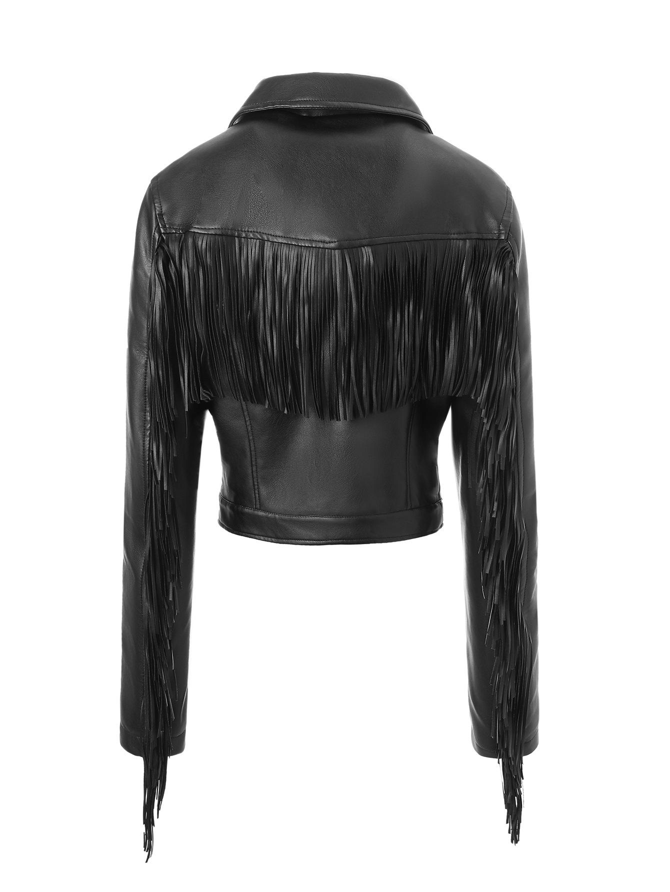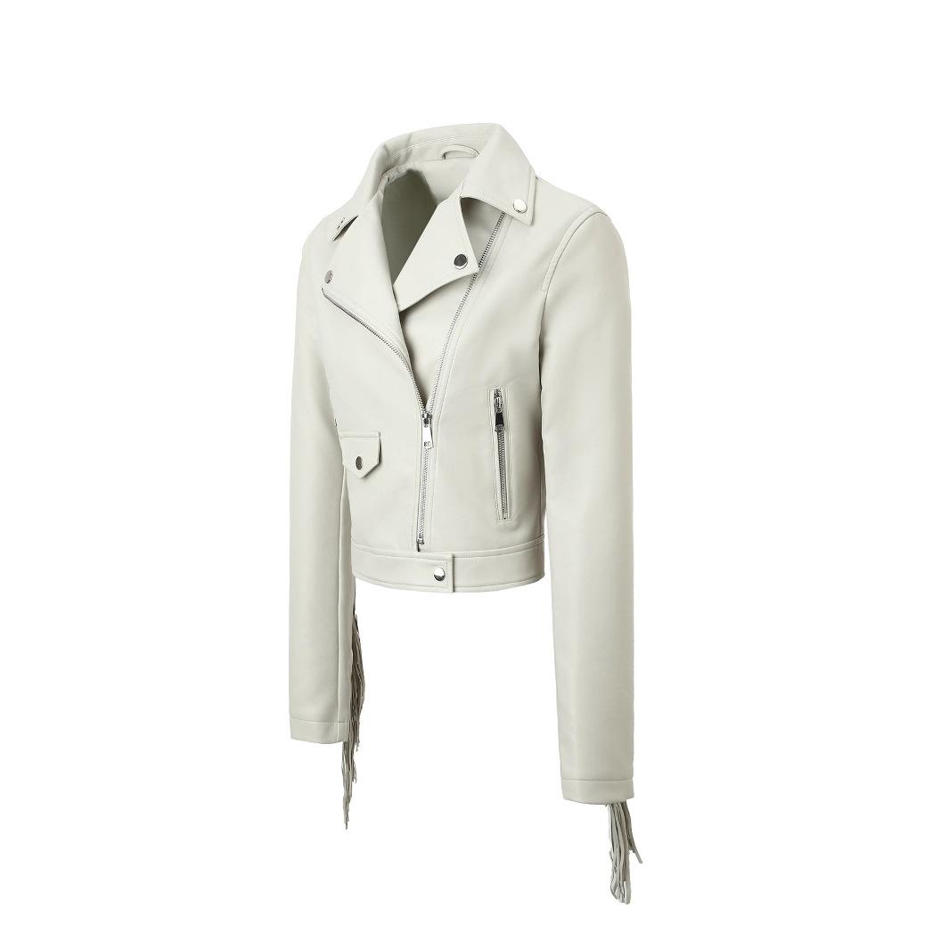 Chaqueta Corta de Cuero PU Estilo Europeo y Americano con Solapa y Borlas, Corte Slim, Chaqueta Biker, Nuevo Modelo de Primavera