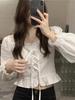 Spice Girl Cuello Cuadrado Ajustado Ajustado Cintura Ceñida con Cordones Camiseta de Manga Larga Diseño de Principios de Otoño Estilo Chic Puro Top Sexy