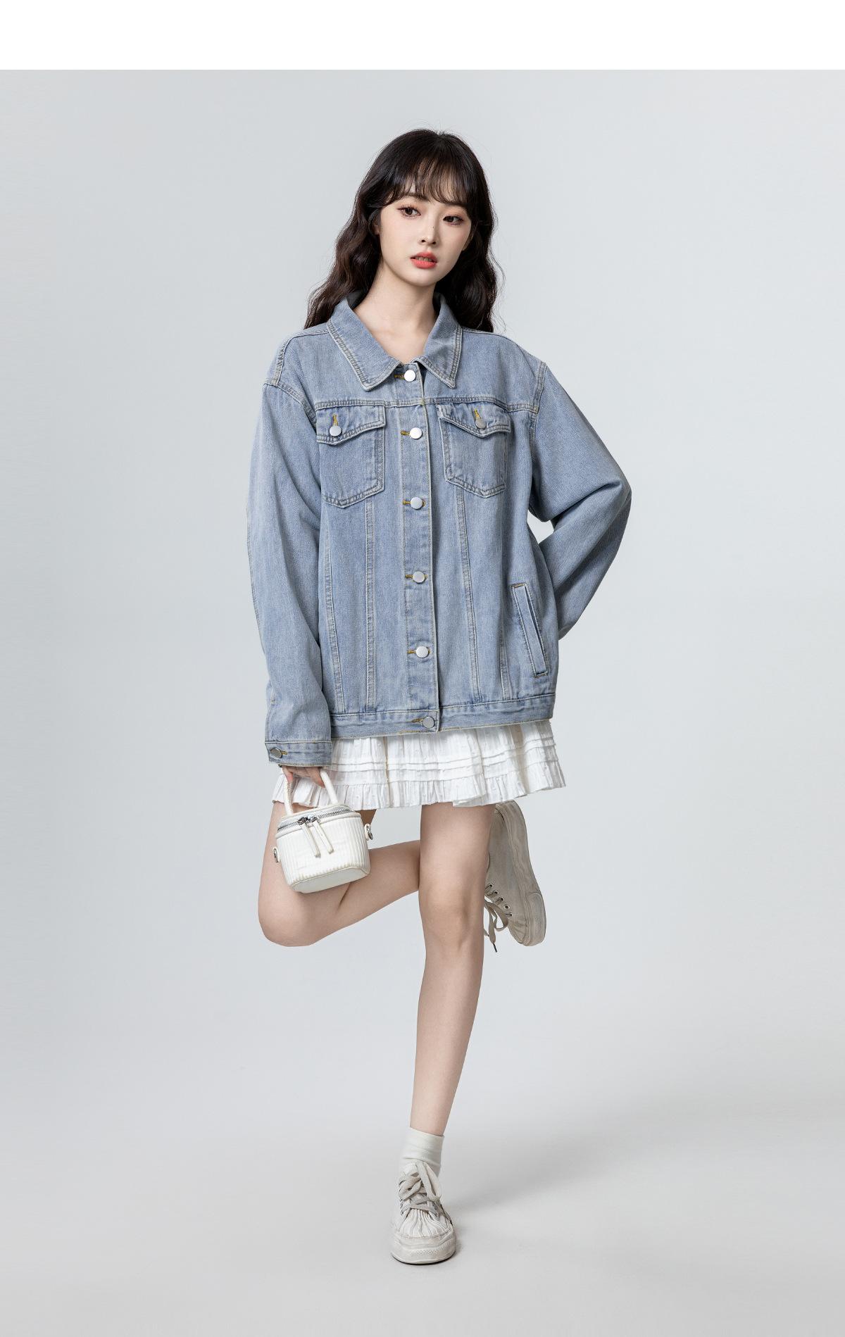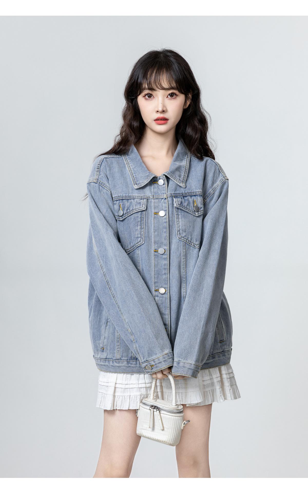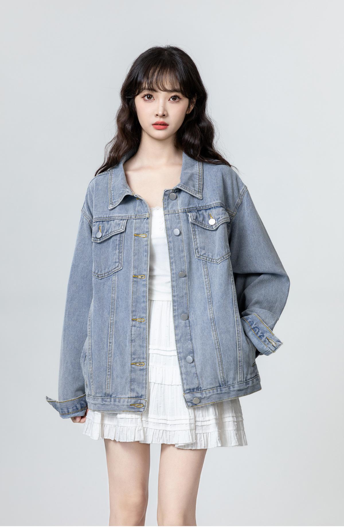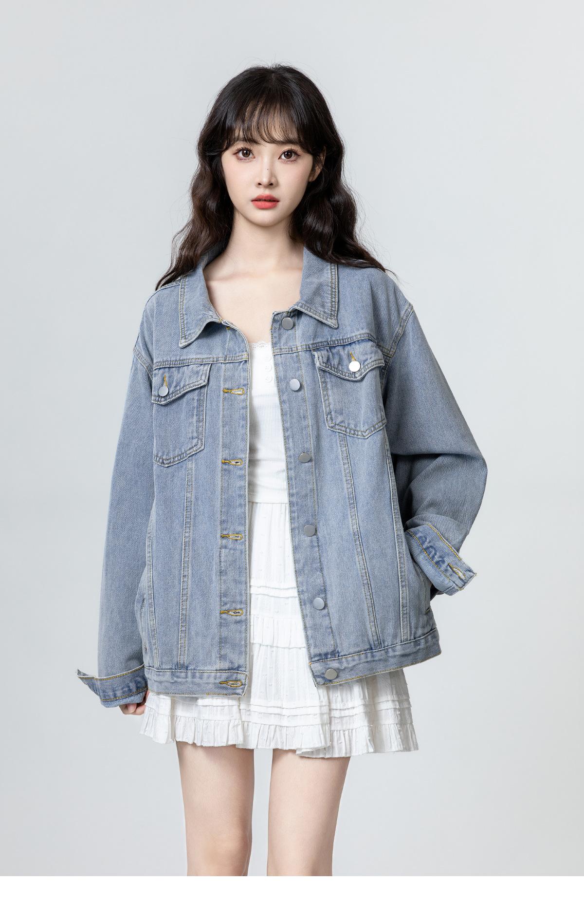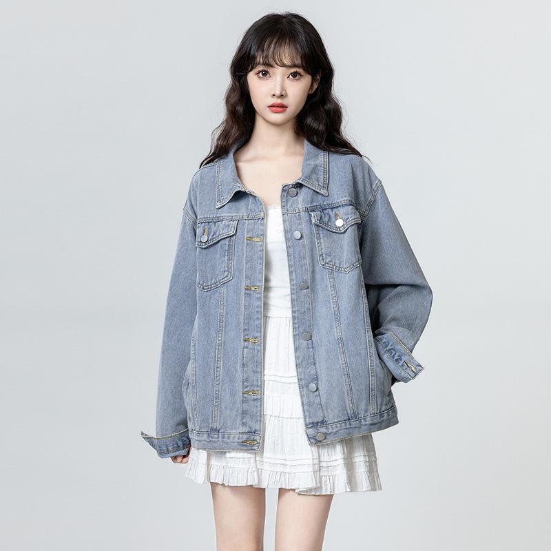 Chaqueta de mezclilla Xintang de estilo europeo y americano de longitud media para primavera y otoño para mujer, estilo coreano holgada y versátil, casual para el día a día