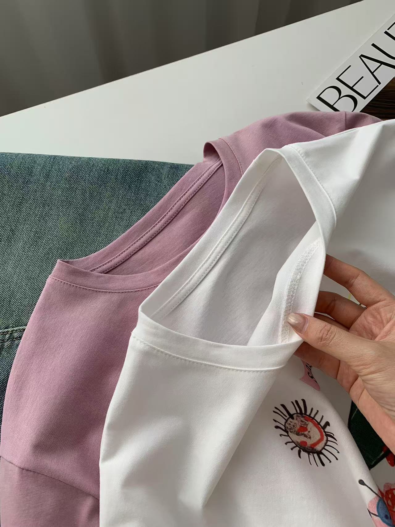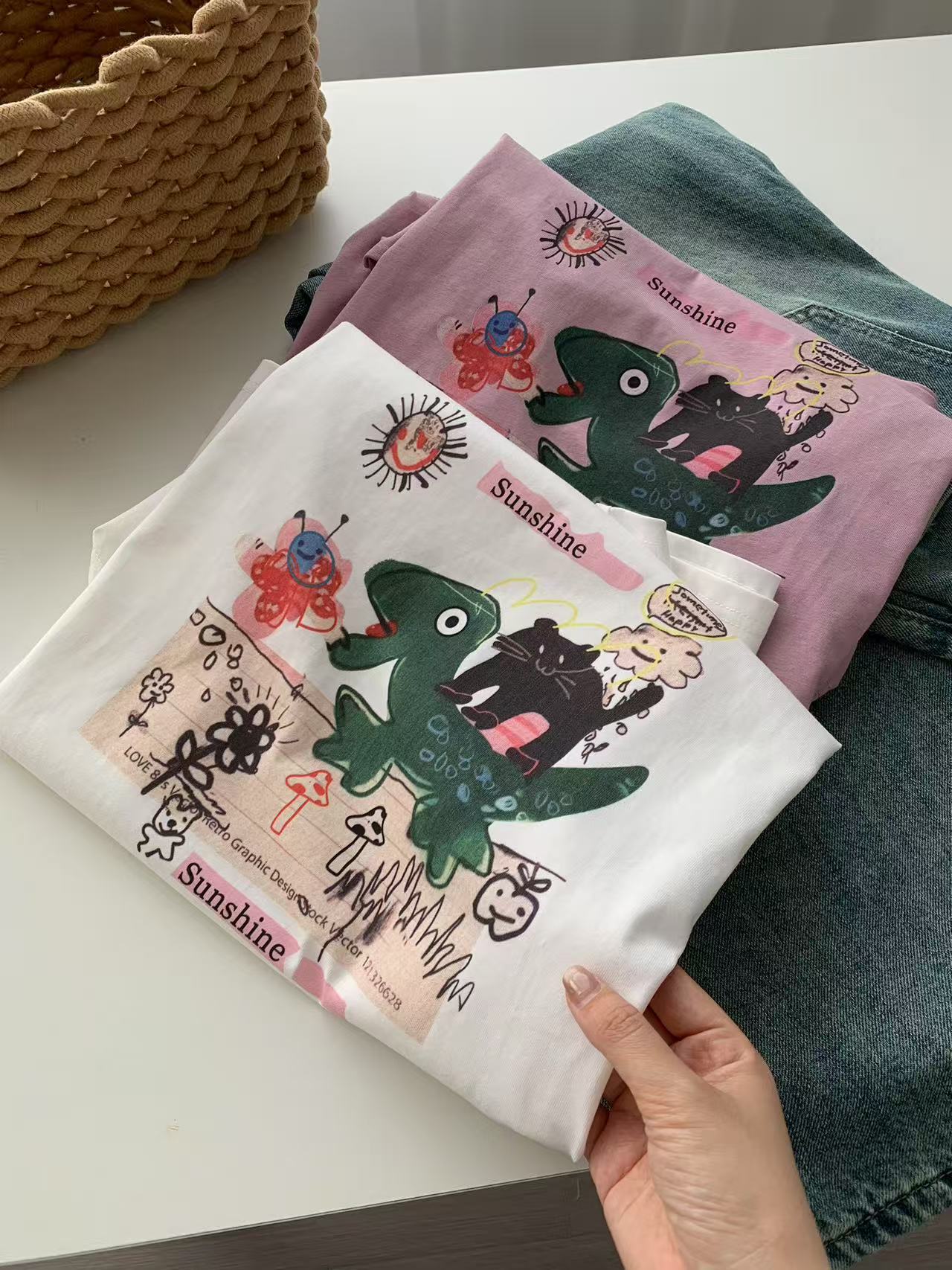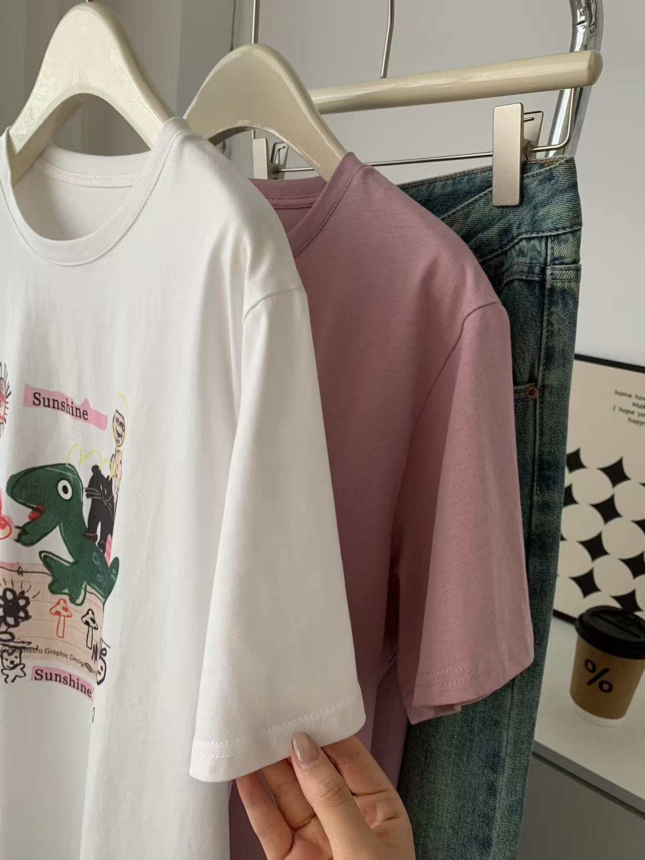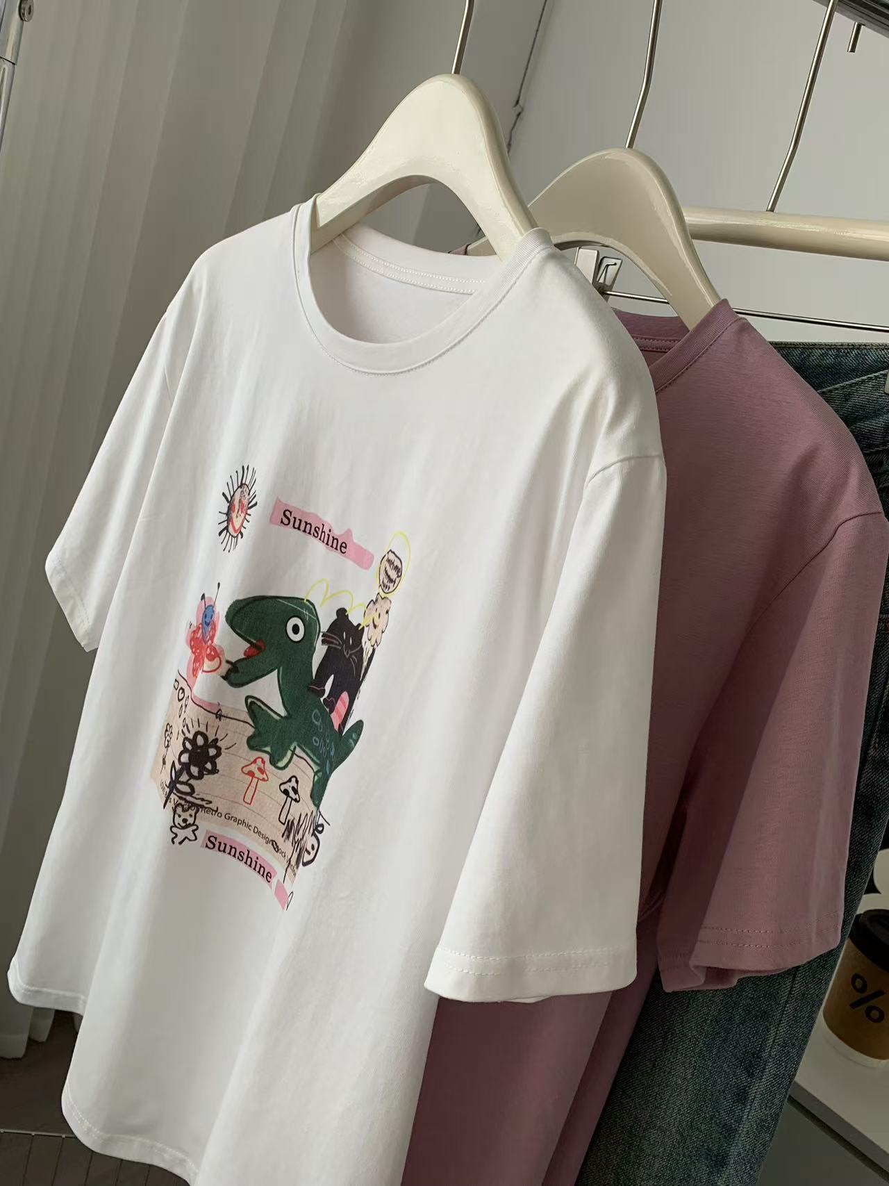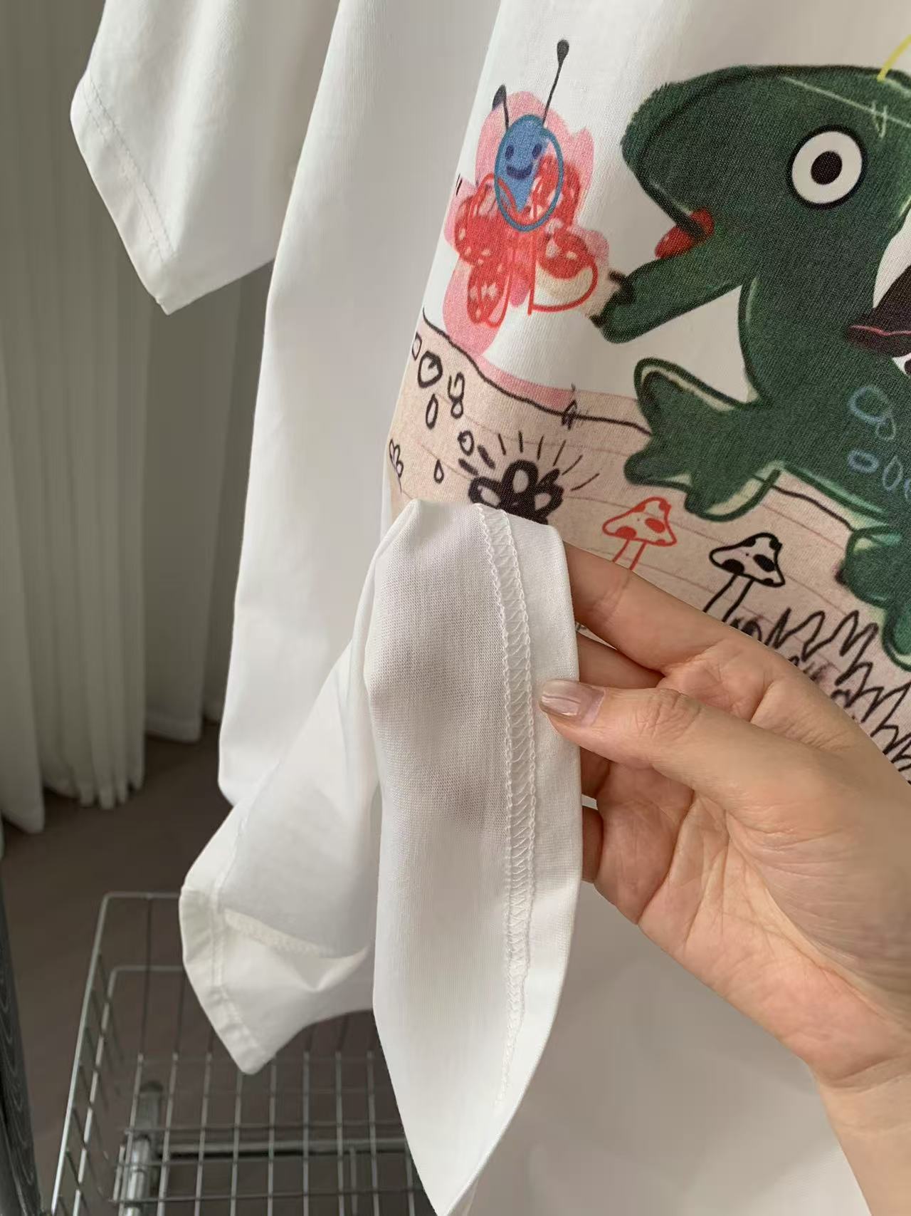 Camiseta de Algodón con Estampado de Dibujos Animados de Largo Medio y Manga Corta para Mujer Verano Nuevo Perezosa Casual Combinable Holgada Estudiantil Camiseta Básica