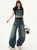 Ropa de Mujer de Seda Naranja# Diseño de Deconstrucción Americana Lavado Jeans de Pierna Ancha Sueltos Casual Combinables Pantalones Machete