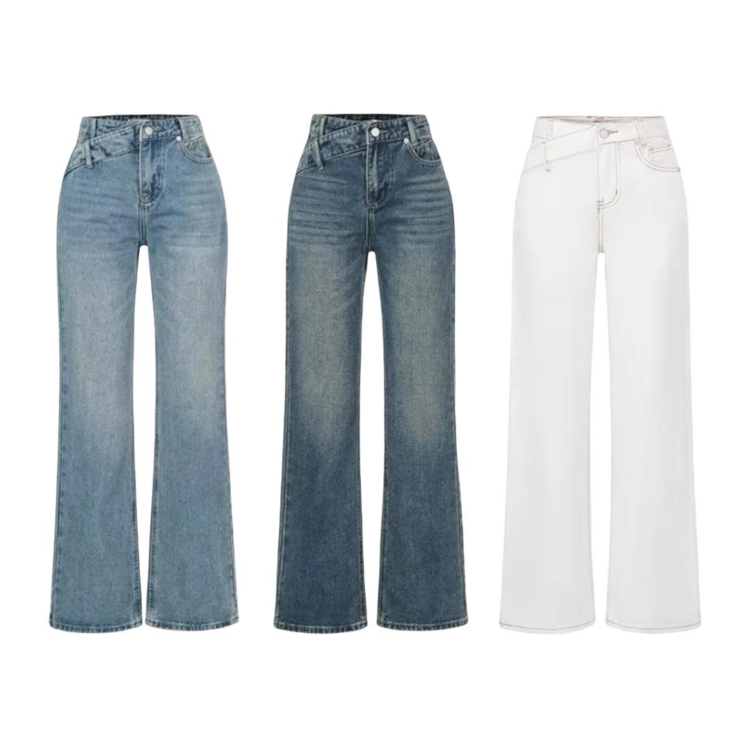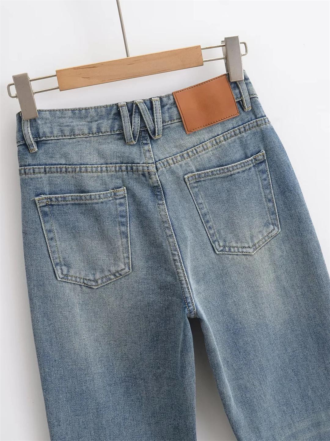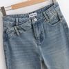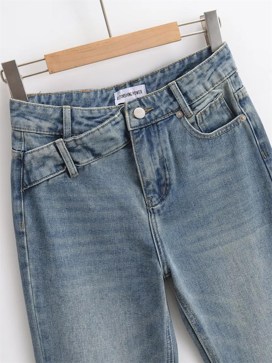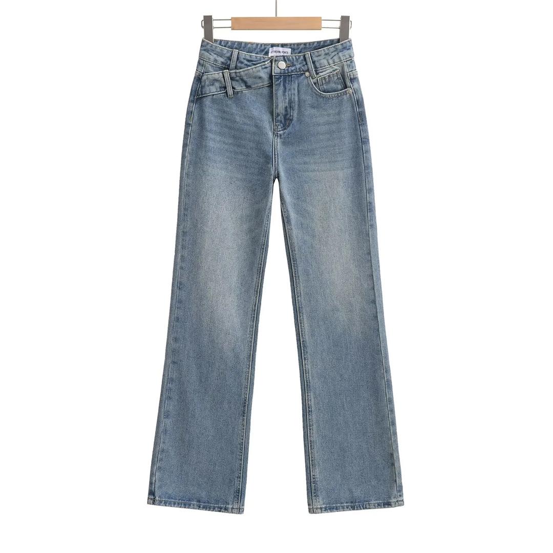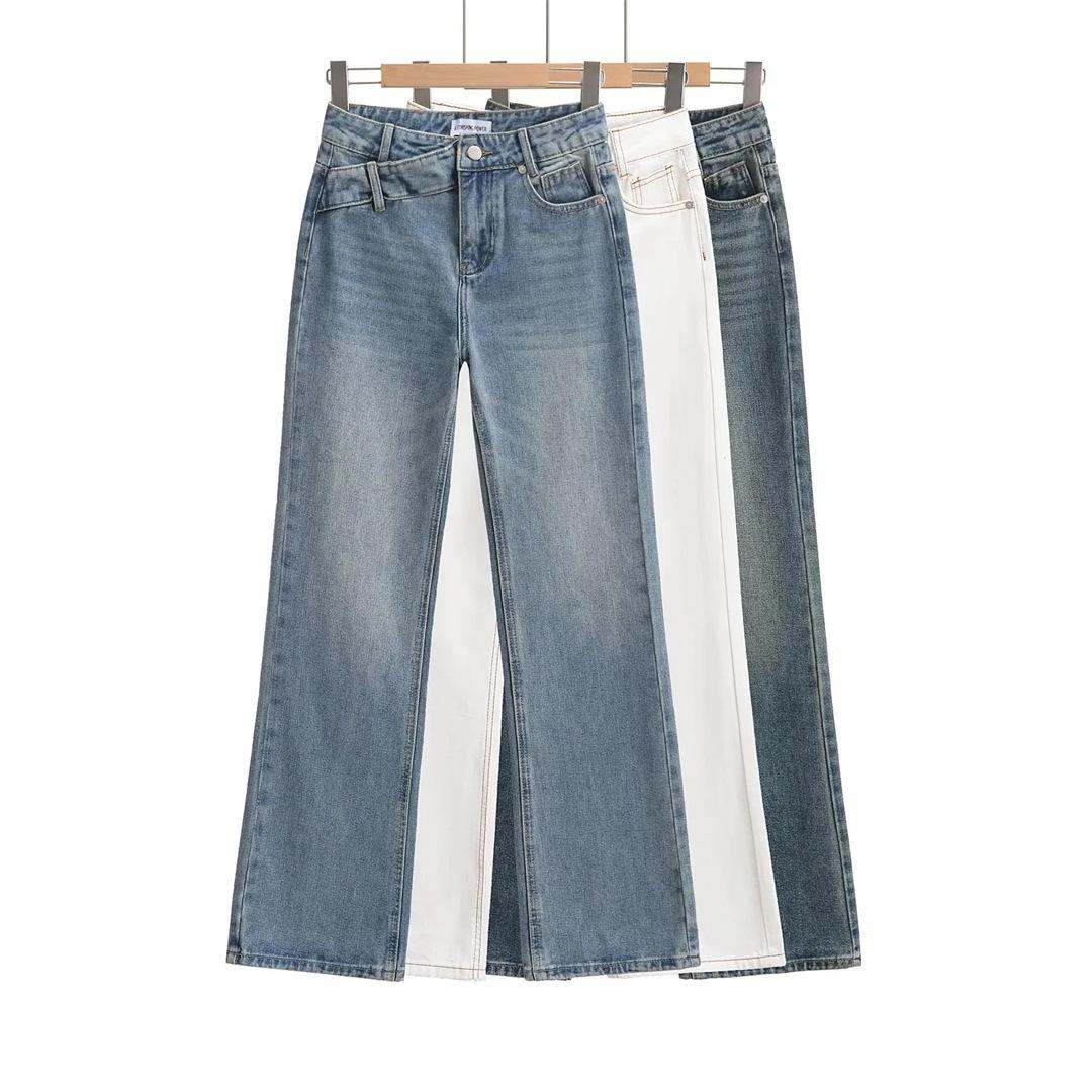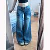 Pantalones Americanos Retro de Cintura Baja Irregulares Hot Girl Sueltos de Pierna Ancha Primavera Nuevos Jeans de Pierna Recta Pantalones de Mujer