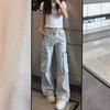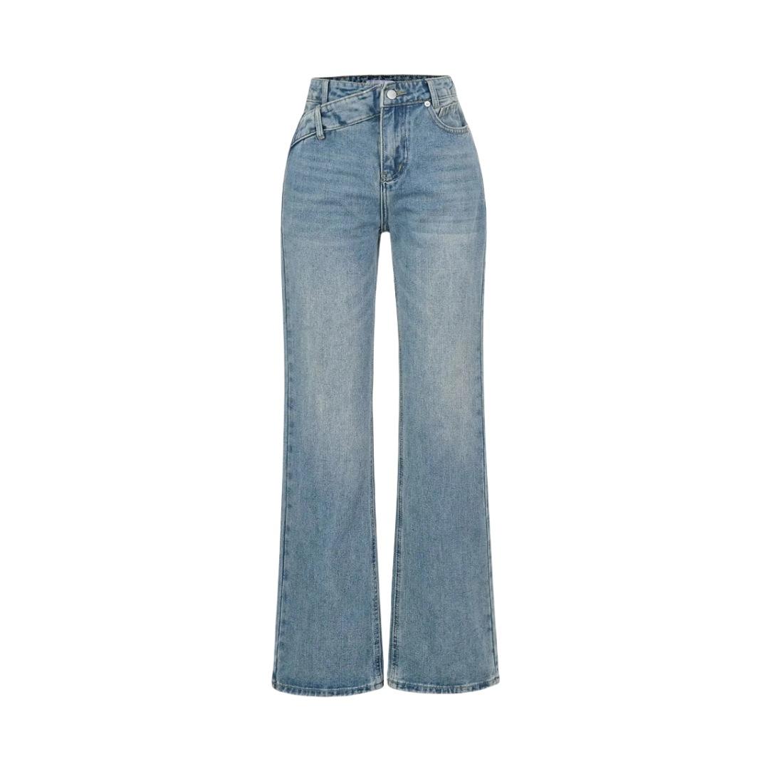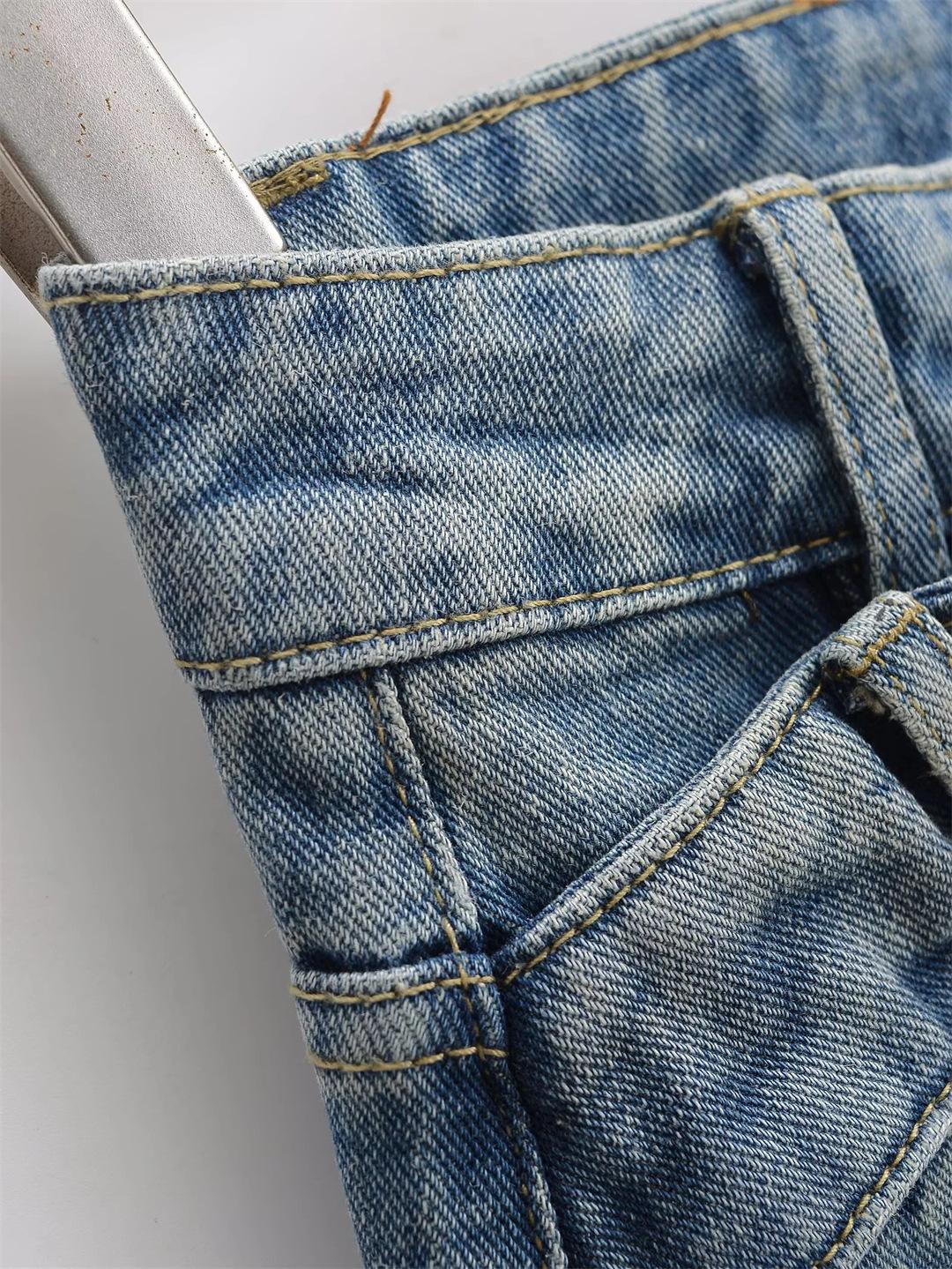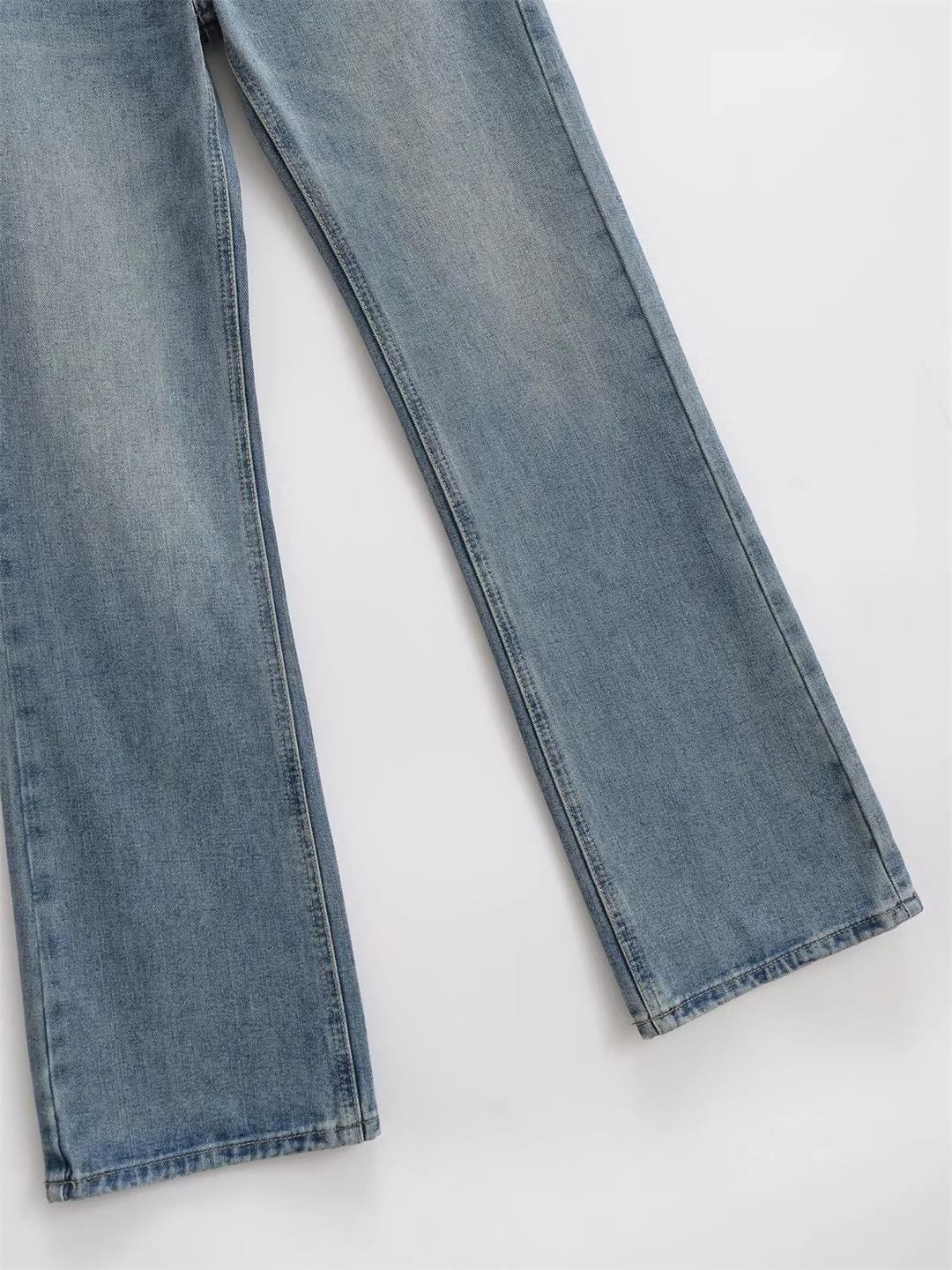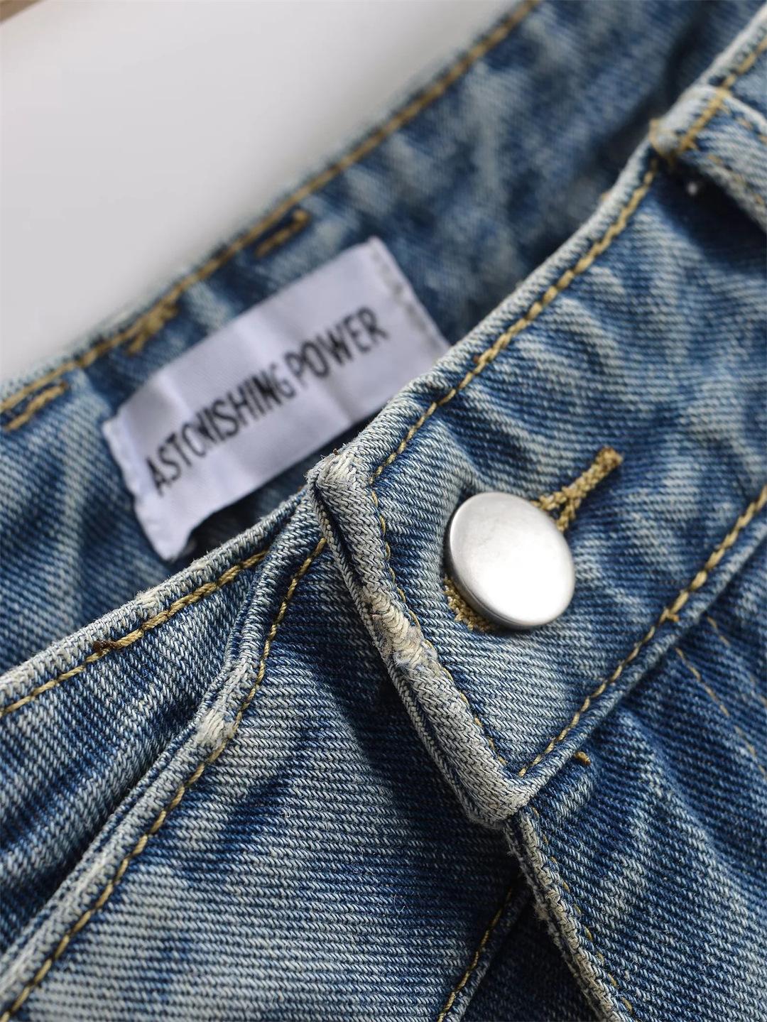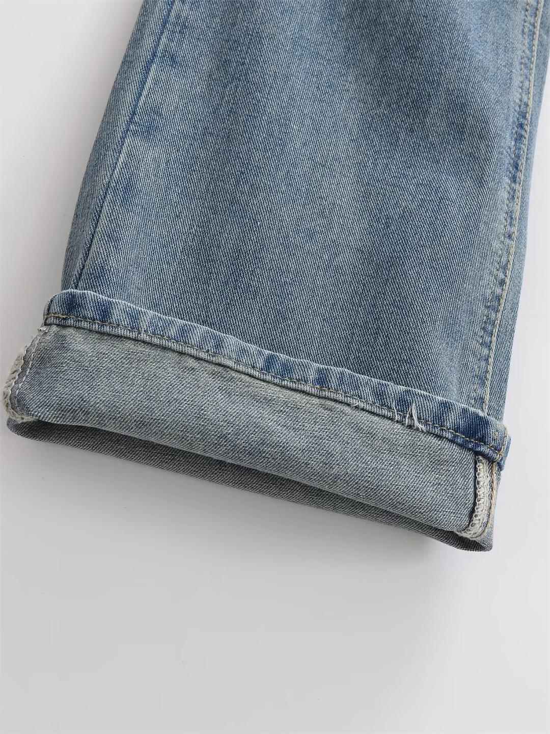 Pantalones Americanos Retro de Cintura Baja Irregulares Hot Girl Sueltos de Pierna Ancha Primavera Nuevos Jeans de Pierna Recta Pantalones de Mujer