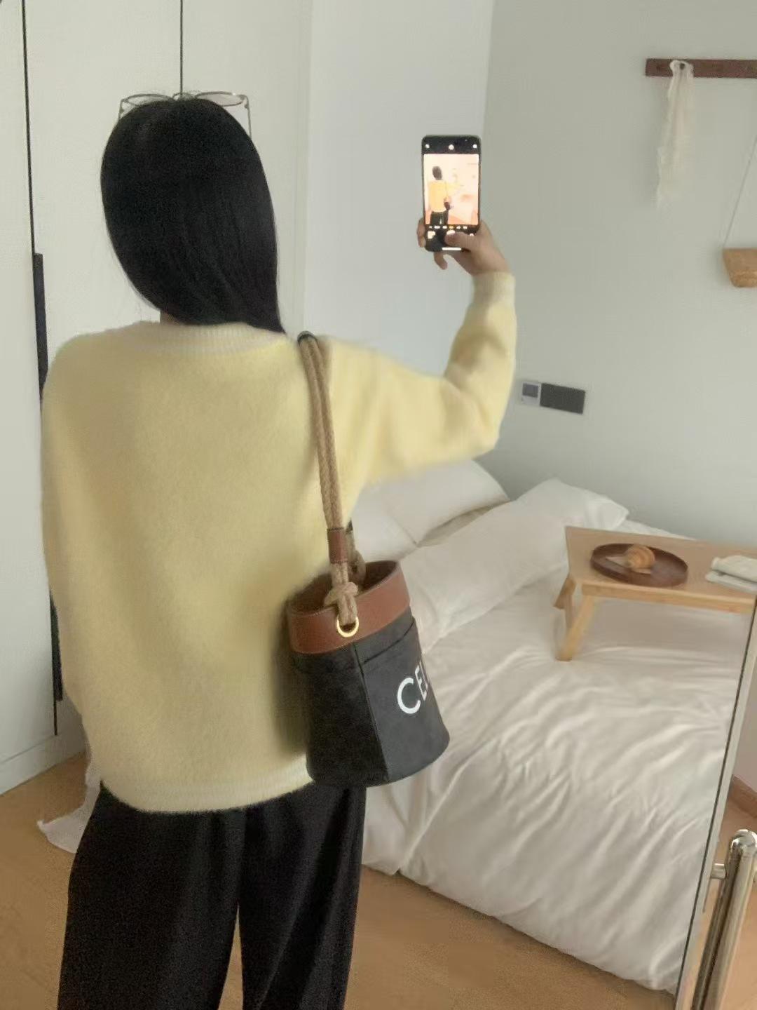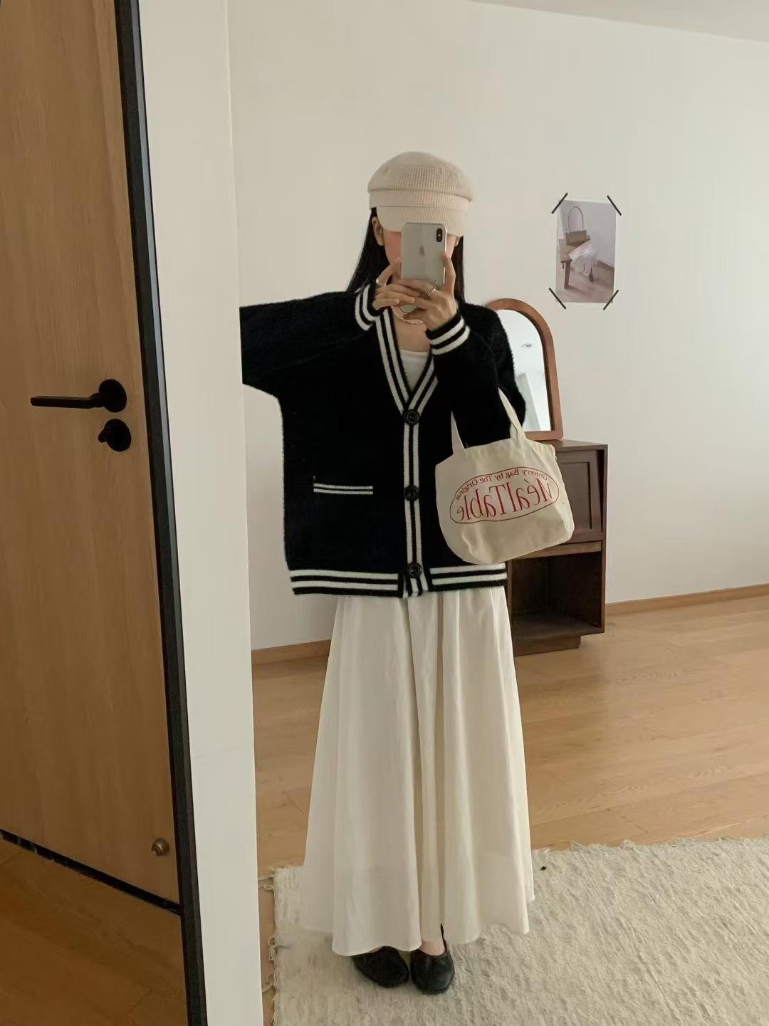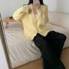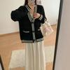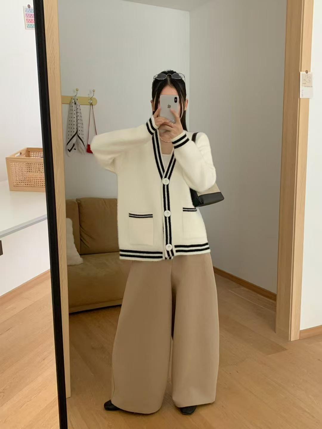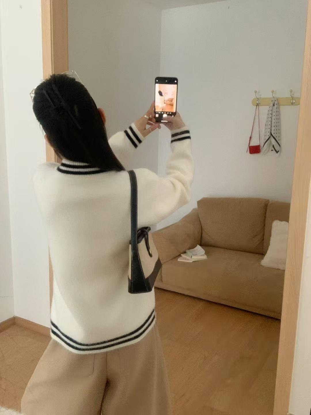 Elegante Chaqueta de Bolsillo de Terciopelo Visón Sintético 2025 Otoño e Invierno Nuevo Cárdigan de Punto Bloque de Color Comercio Exterior Suéter Rosa para Mujer