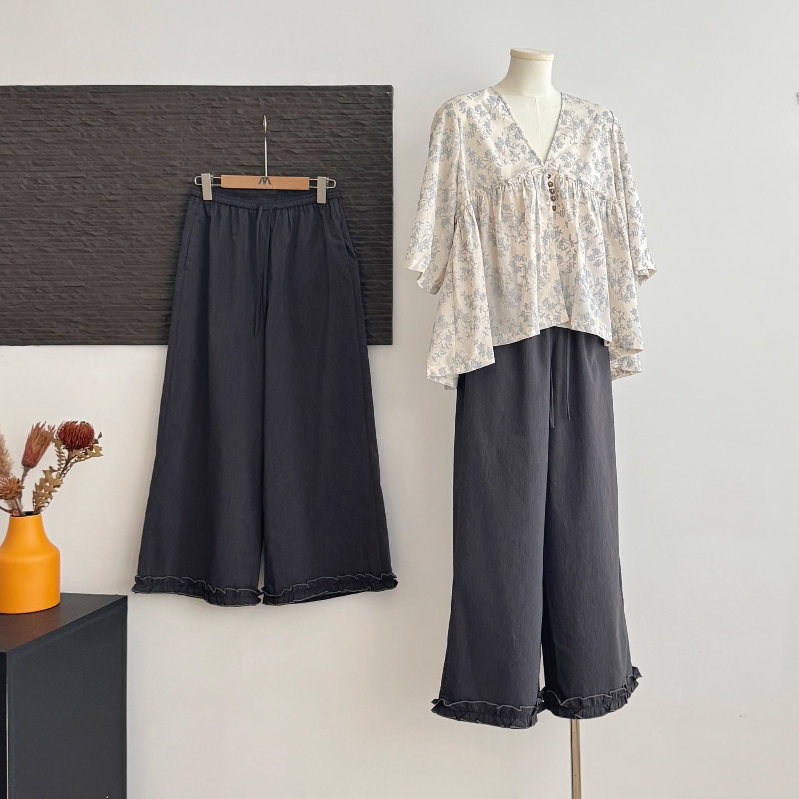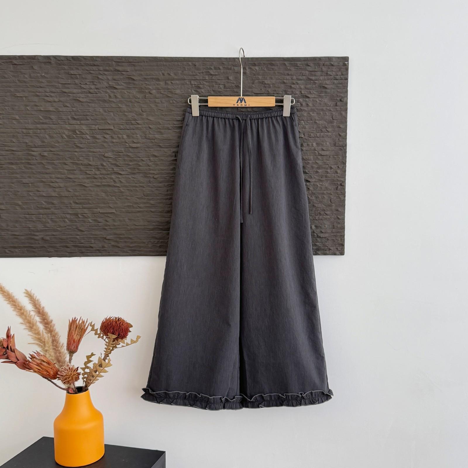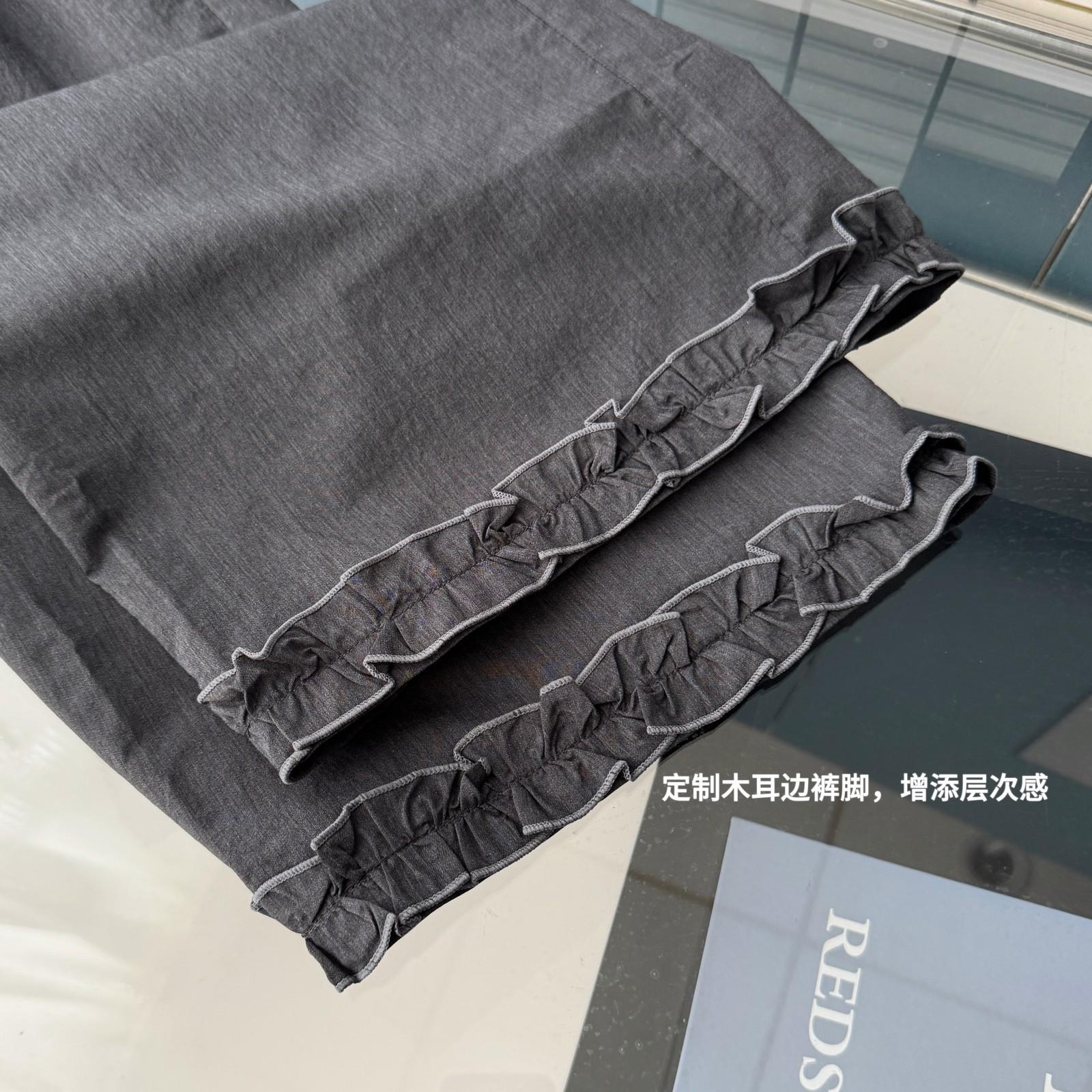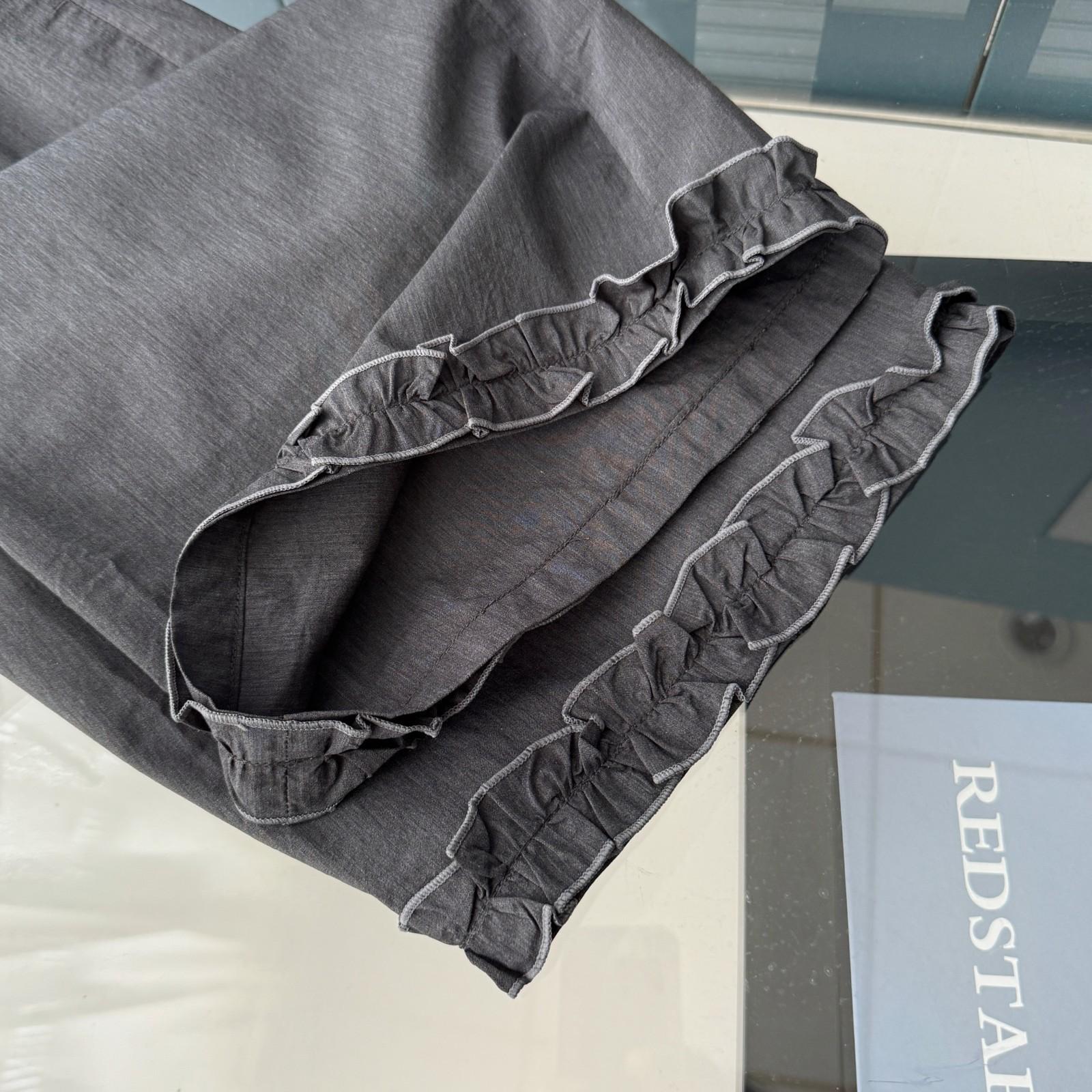 Pantalones Capri Grises de Cintura Alta y Pierna Ancha para Mujer Verano Delgados con Borde de Volante Casuales de Pierna Recta Sueltos Adelgazantes