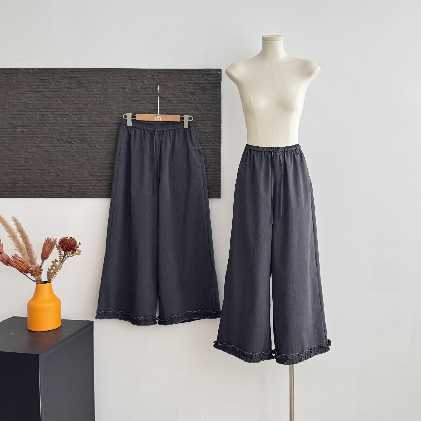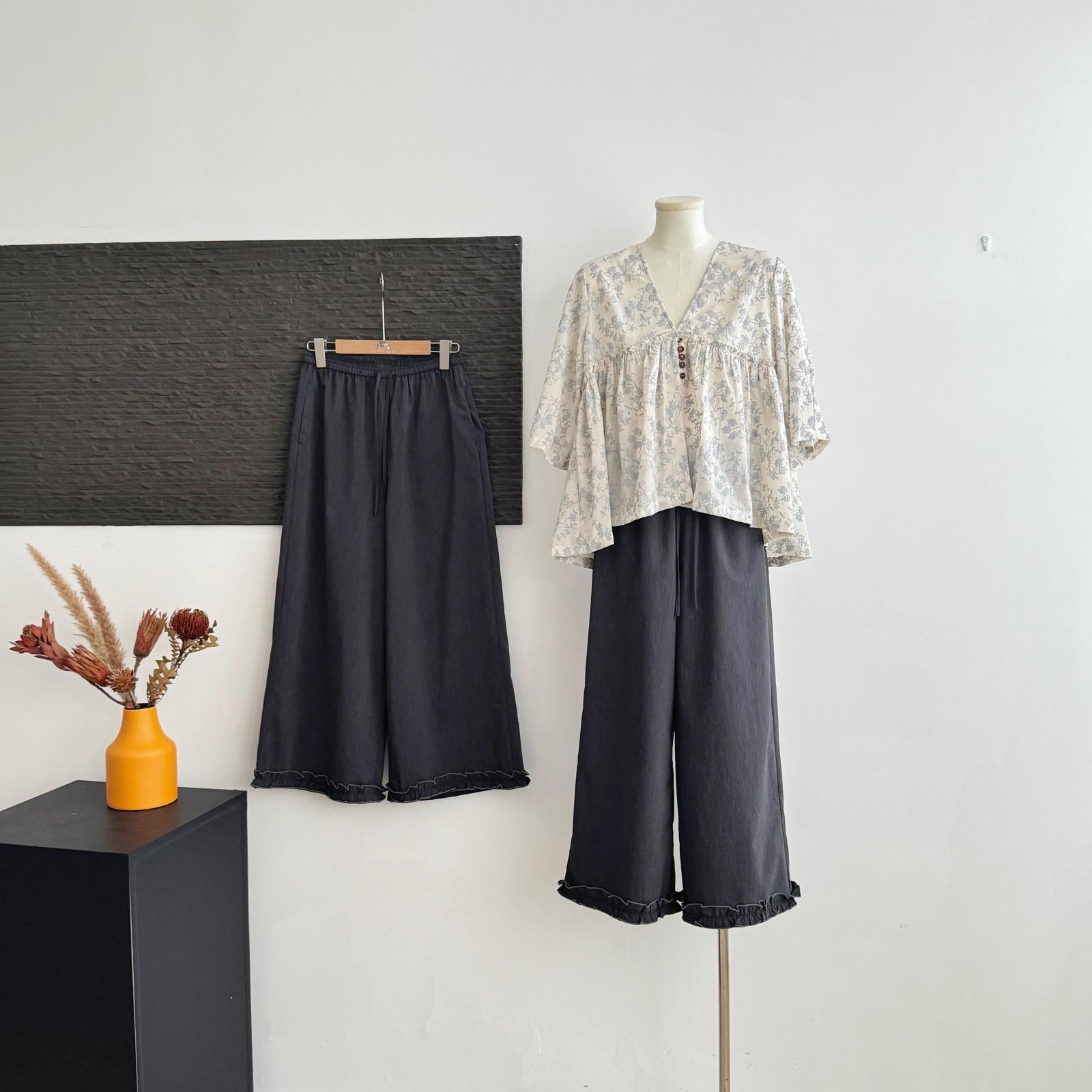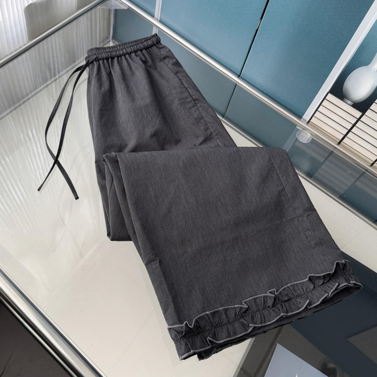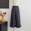 Pantalones Capri Grises de Cintura Alta y Pierna Ancha para Mujer Verano Delgados con Borde de Volante Casuales de Pierna Recta Sueltos Adelgazantes