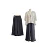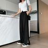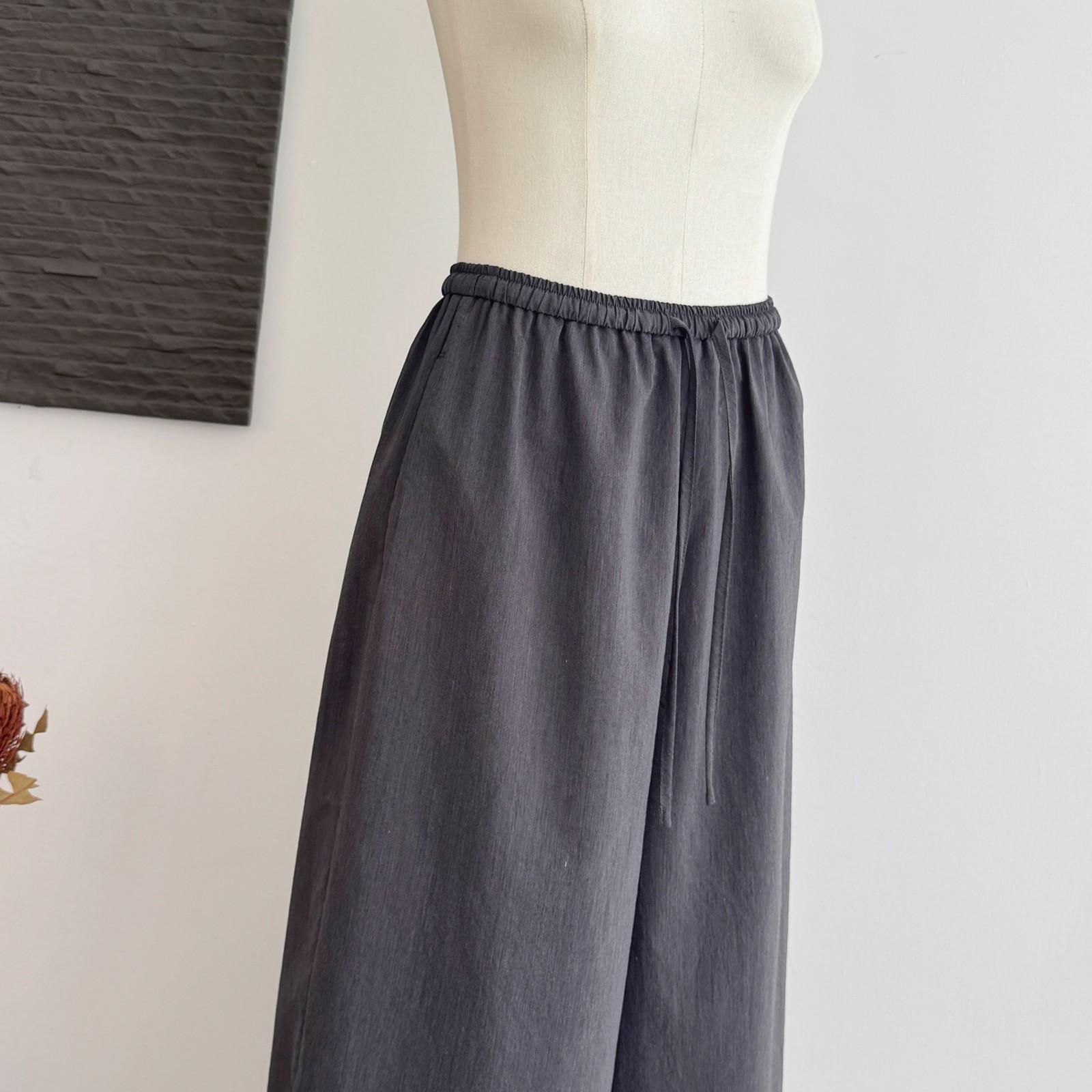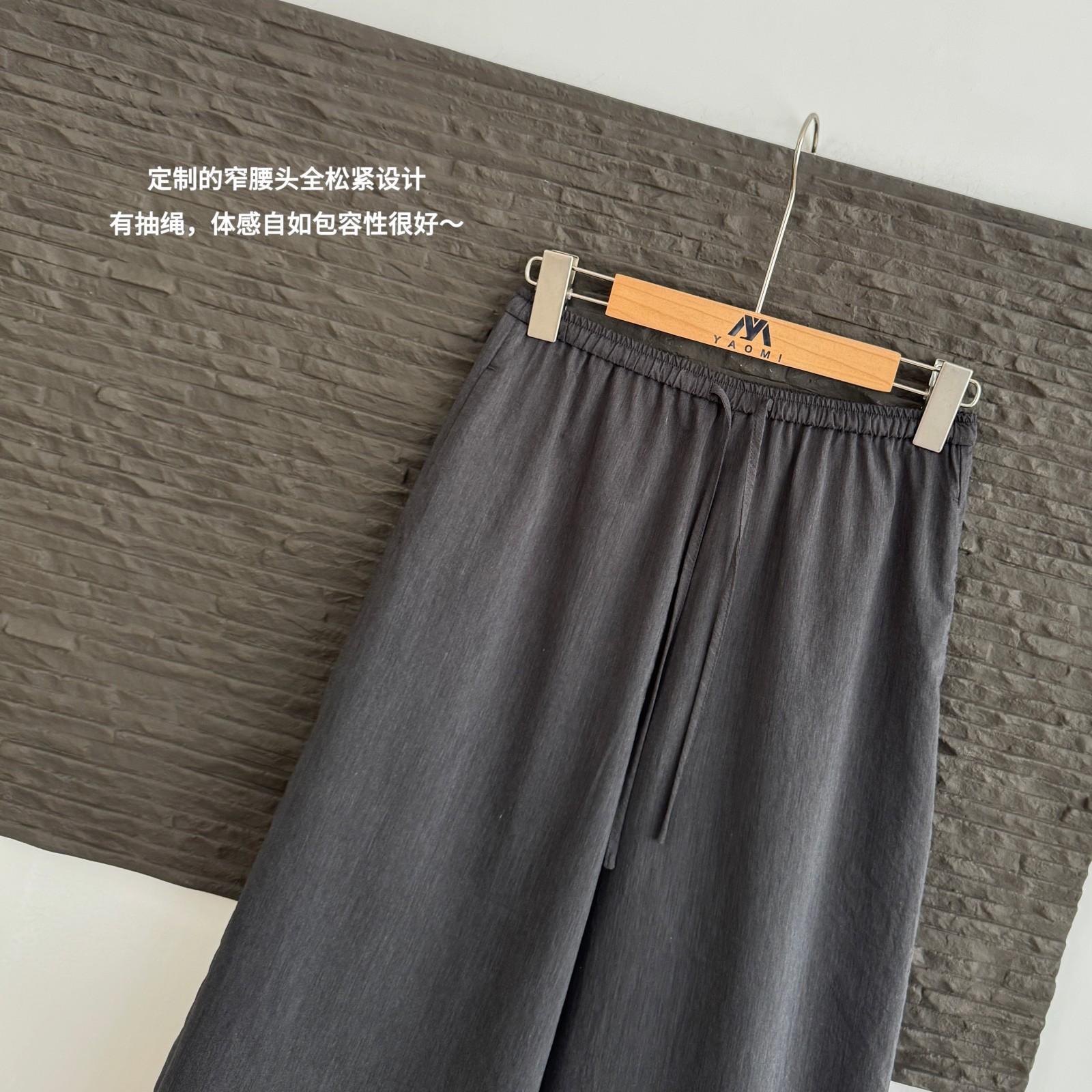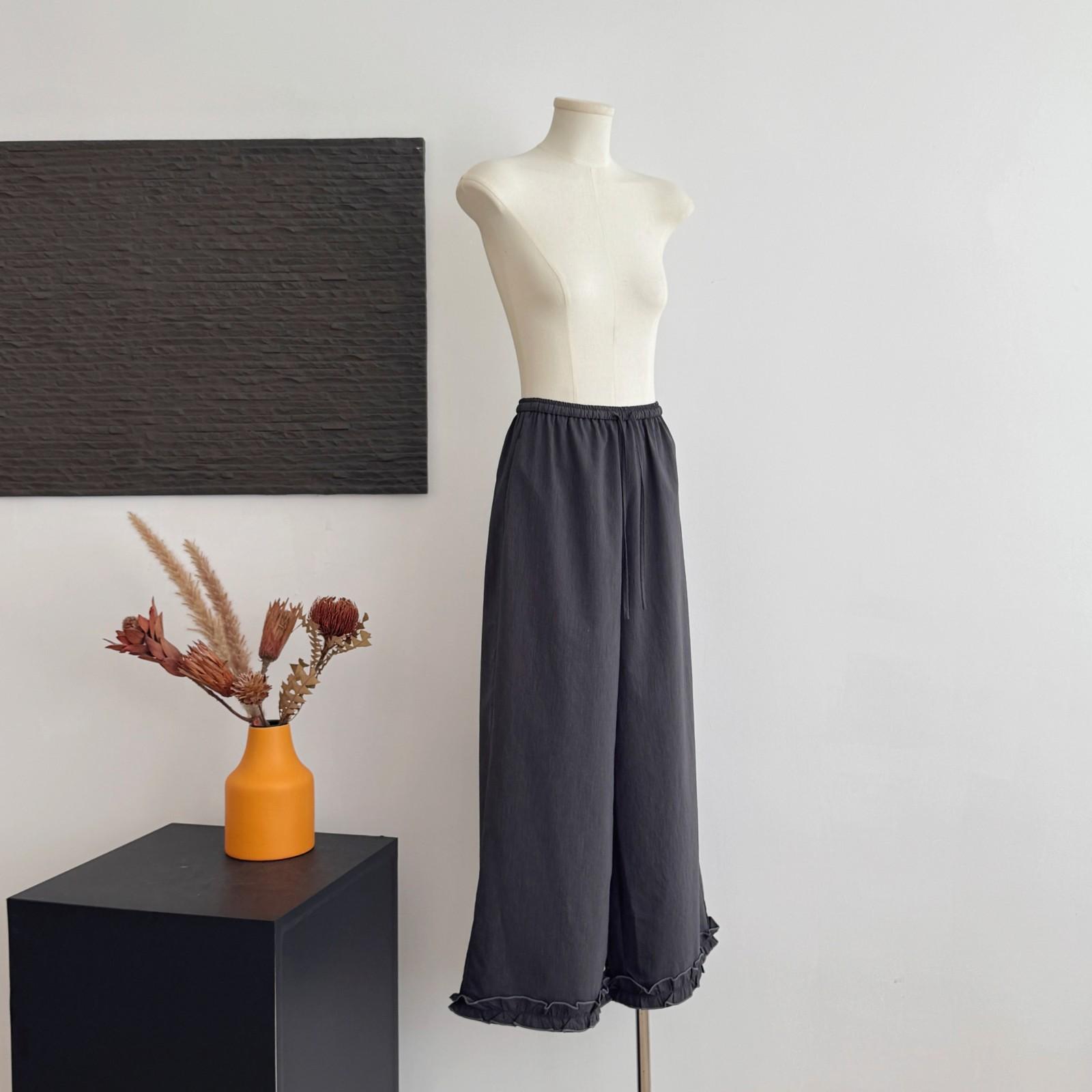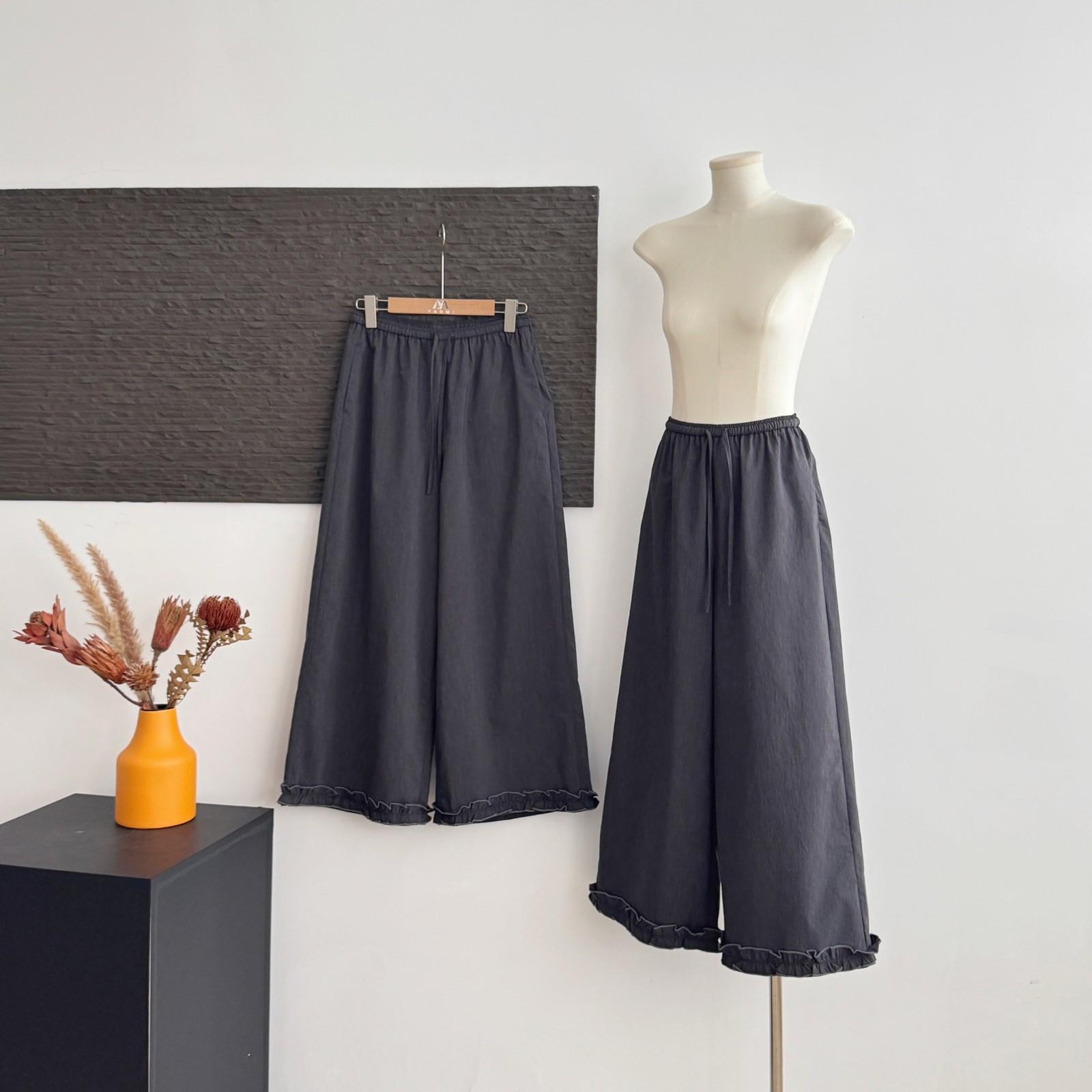Pantalones Capri Grises de Cintura Alta y Pierna Ancha para Mujer Verano Delgados con Borde de Volante Casuales de Pierna Recta Sueltos Adelgazantes