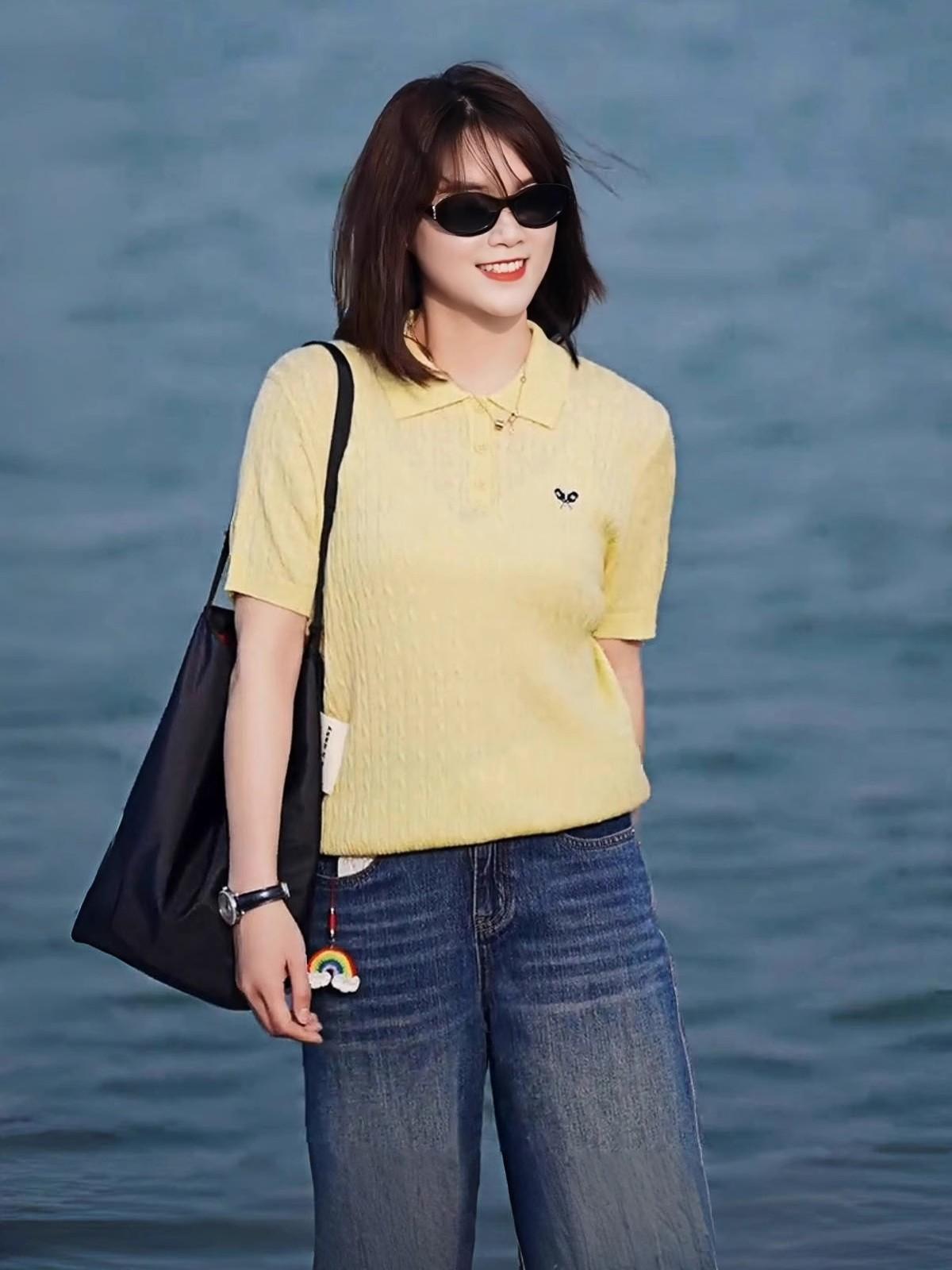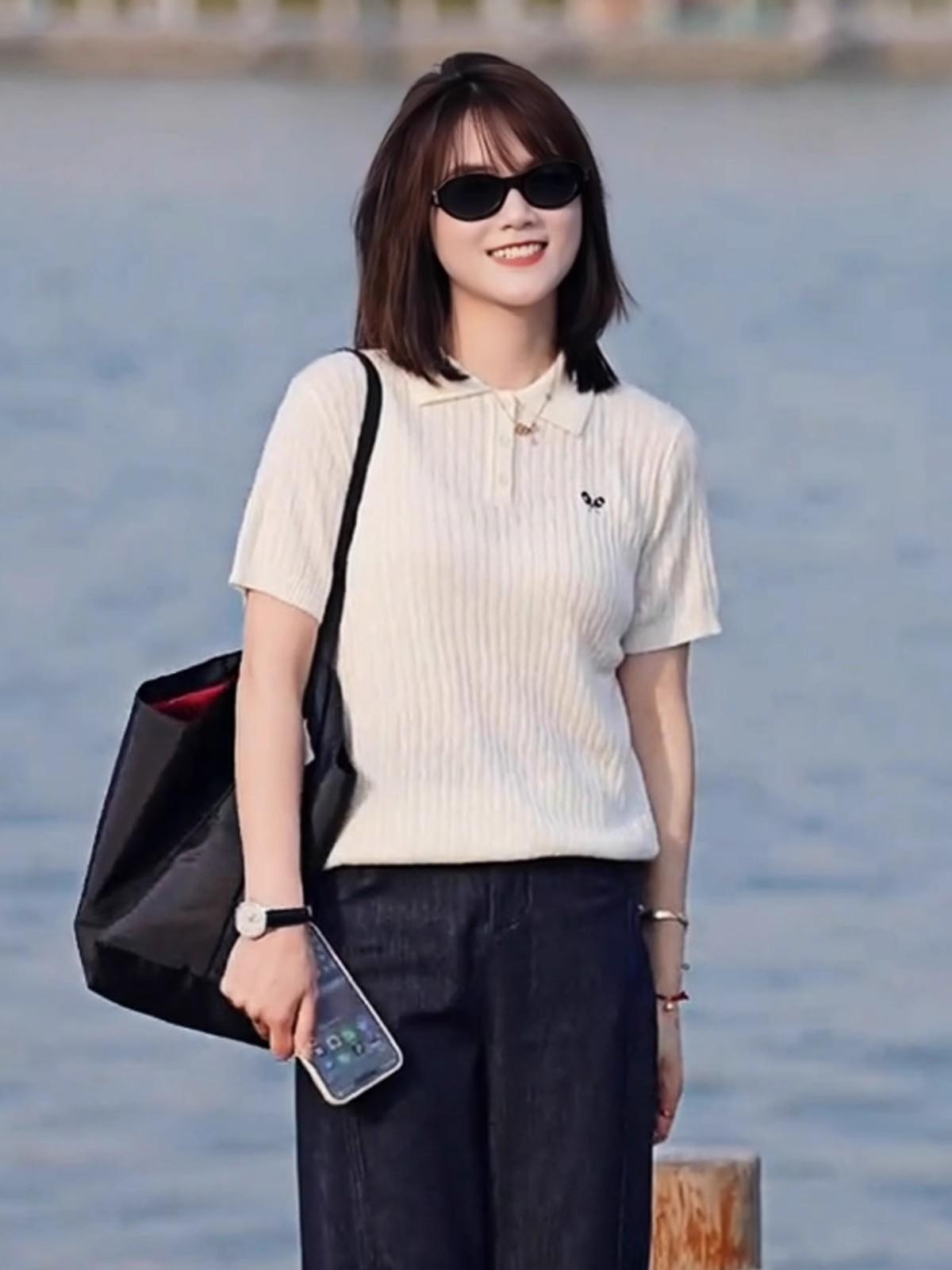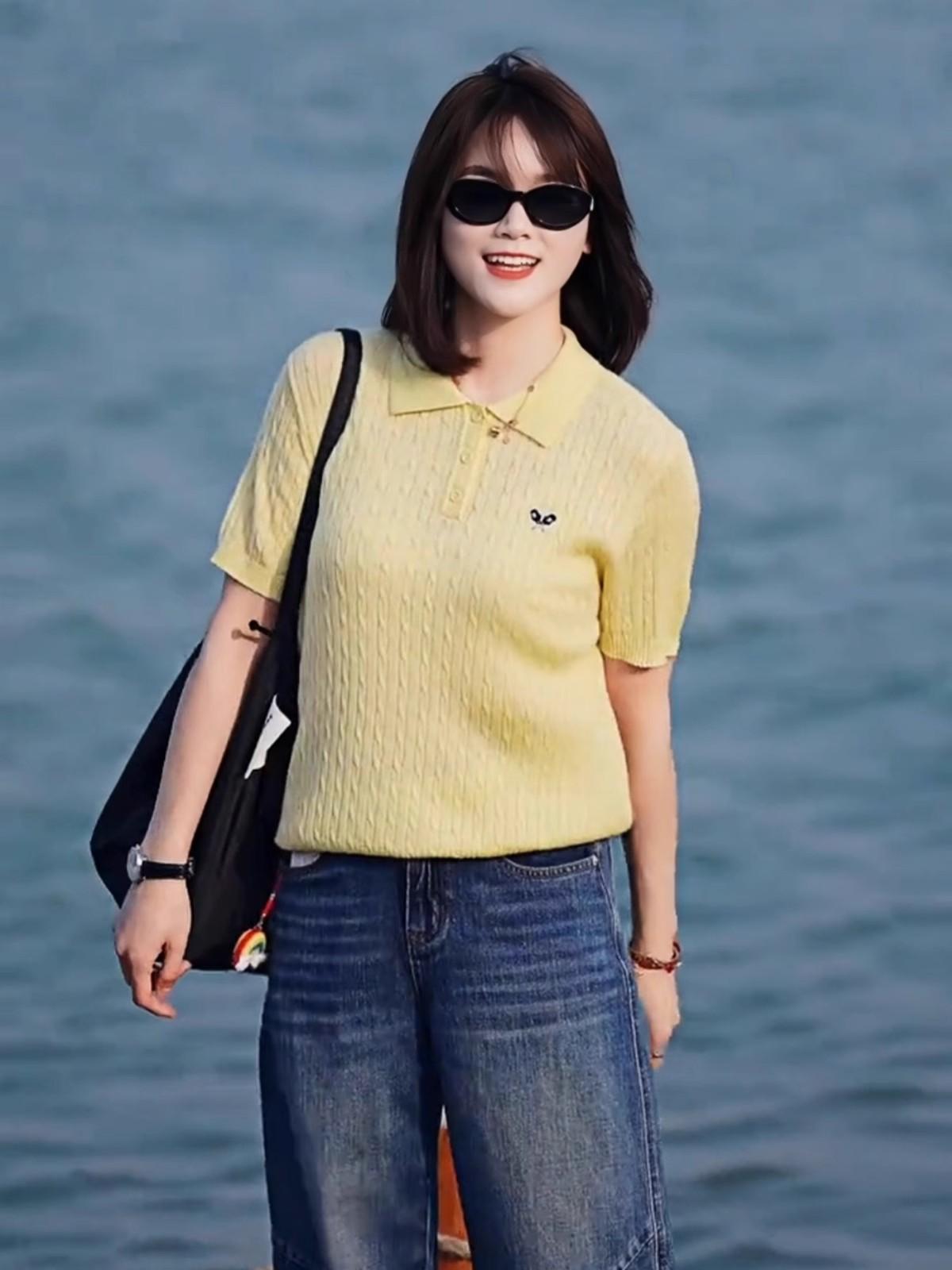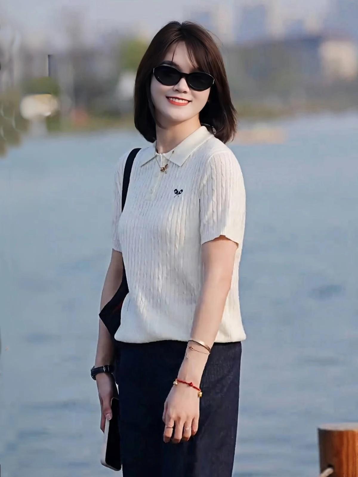 Tejido de punto de manga corta con cuello polo estilo coreano para mujer 2025 Verano Nueva Moda Casual Look Adelgazante Ropa de Trabajo Top Versátil