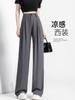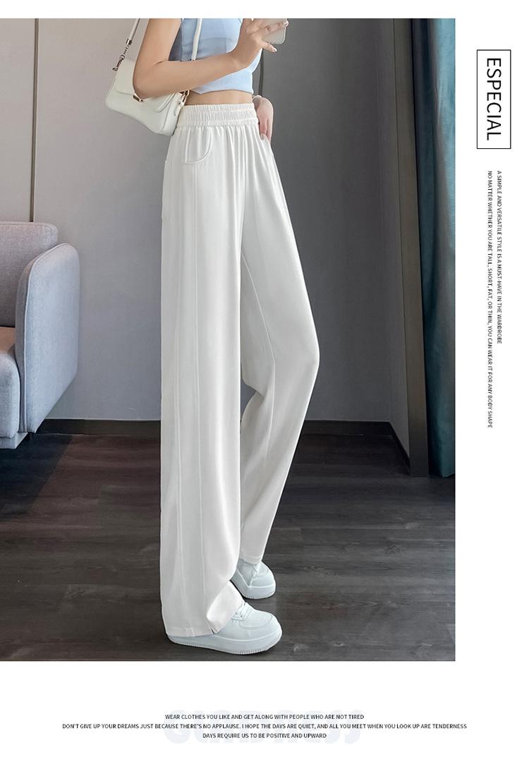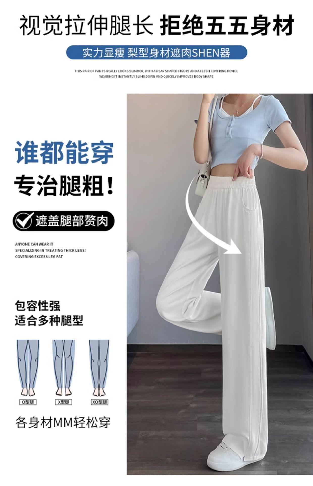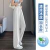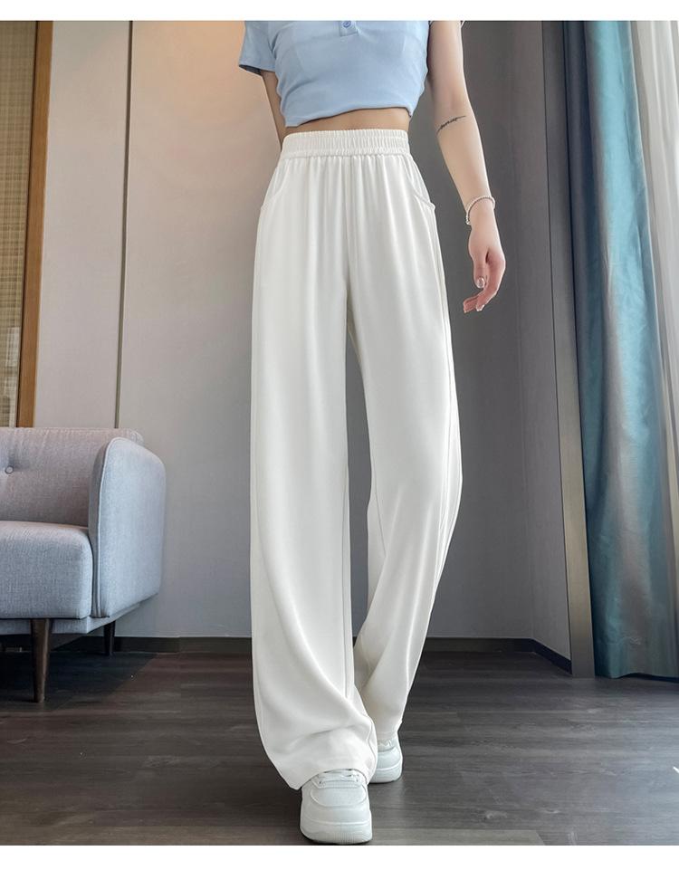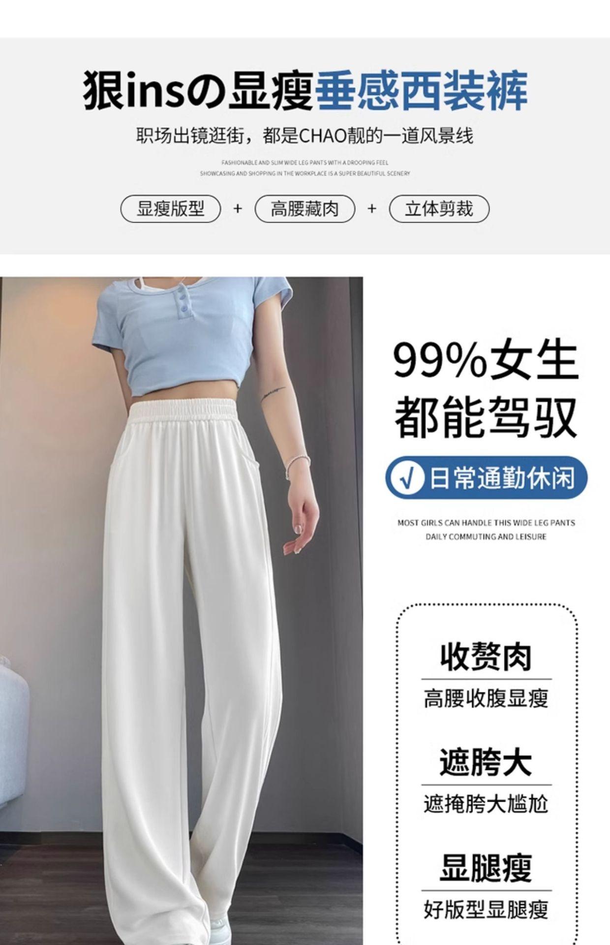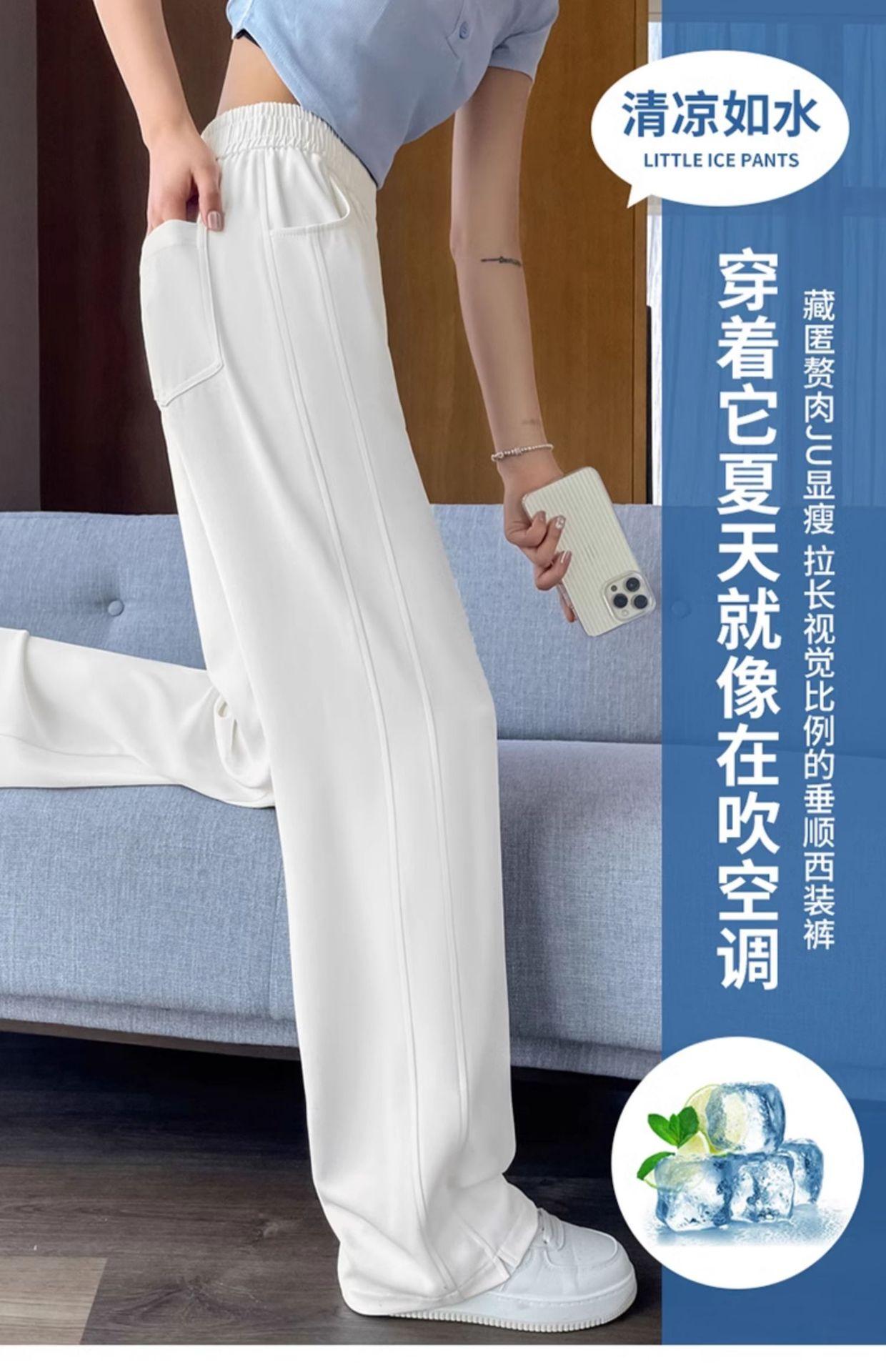 Pantalones de Pierna Ancha Estrechos de Seda Helada para Mujer Verano Delgados 2025 Nuevos Cintura Alta Drapeados Casuales Rectos Blancos Pantalones de Traje