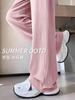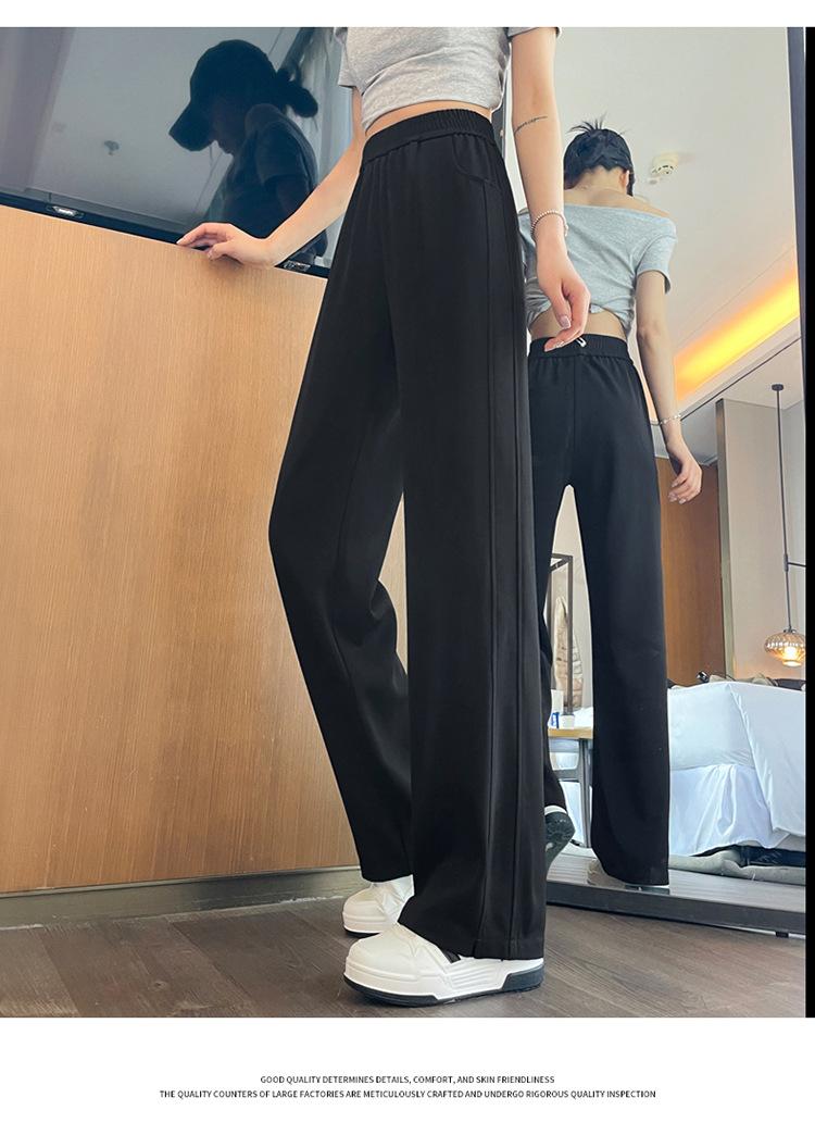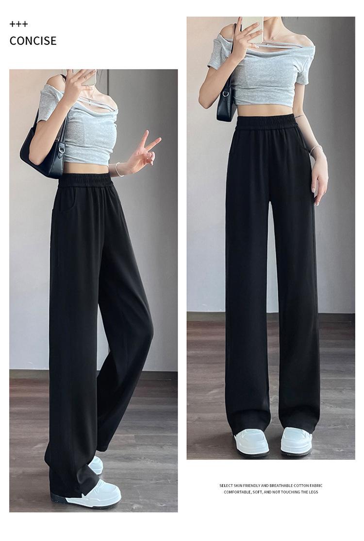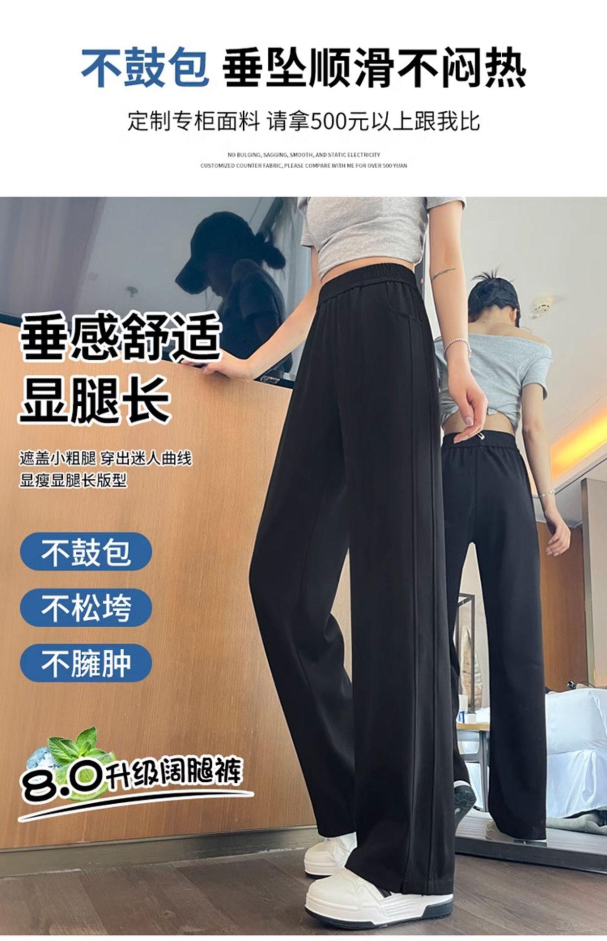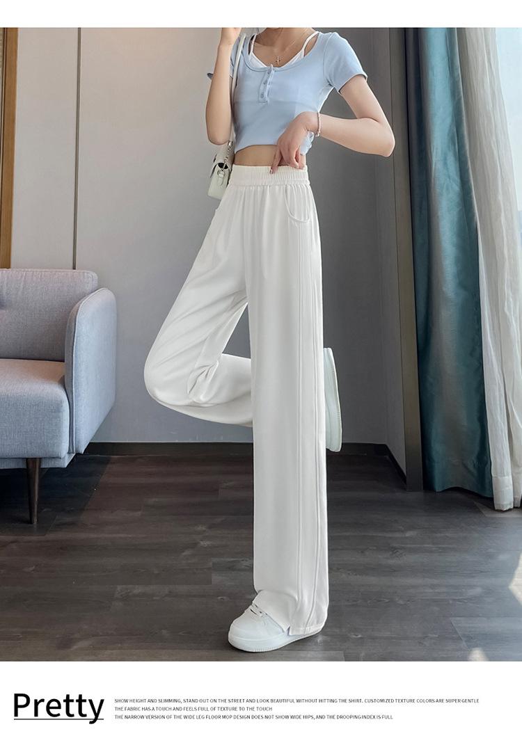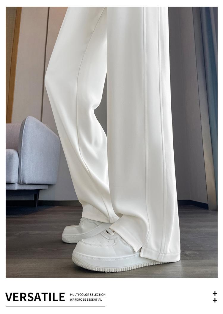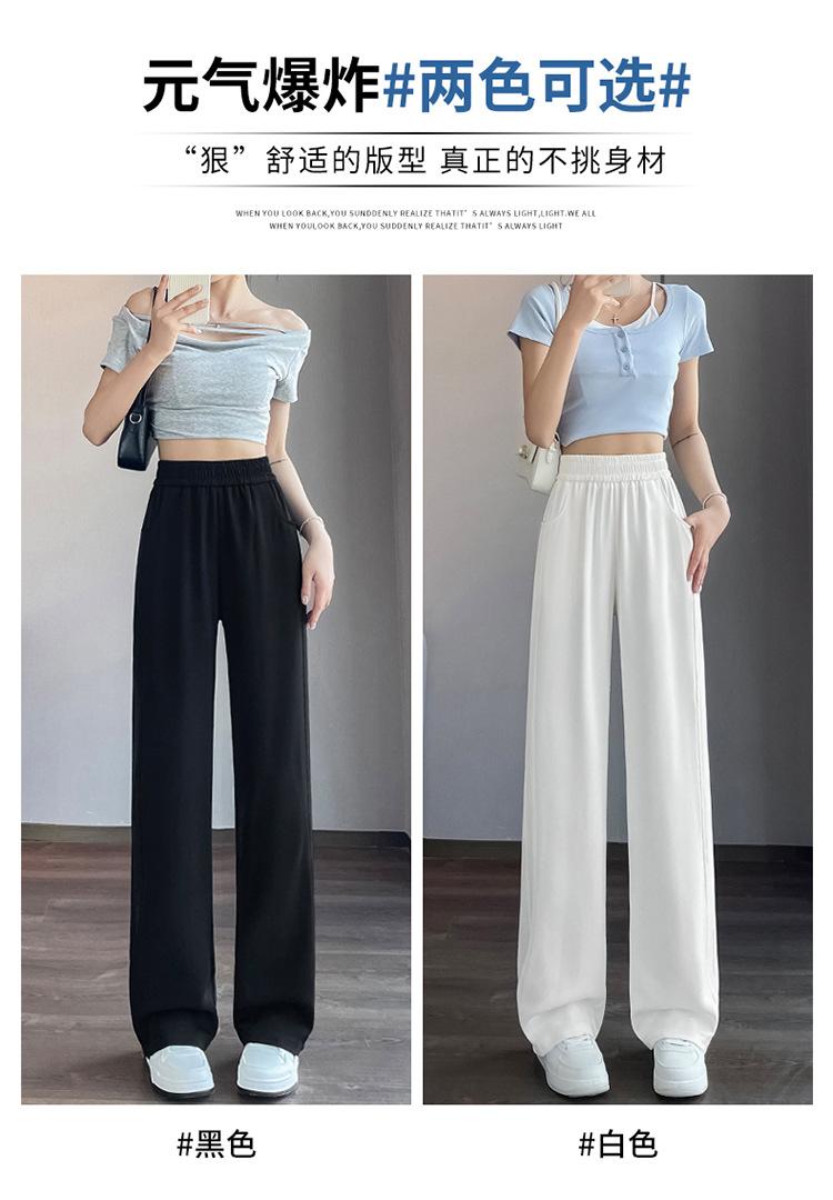 Pantalones de Pierna Ancha Estrechos de Seda Helada para Mujer Verano Delgados 2025 Nuevos Cintura Alta Drapeados Casuales Rectos Blancos Pantalones de Traje