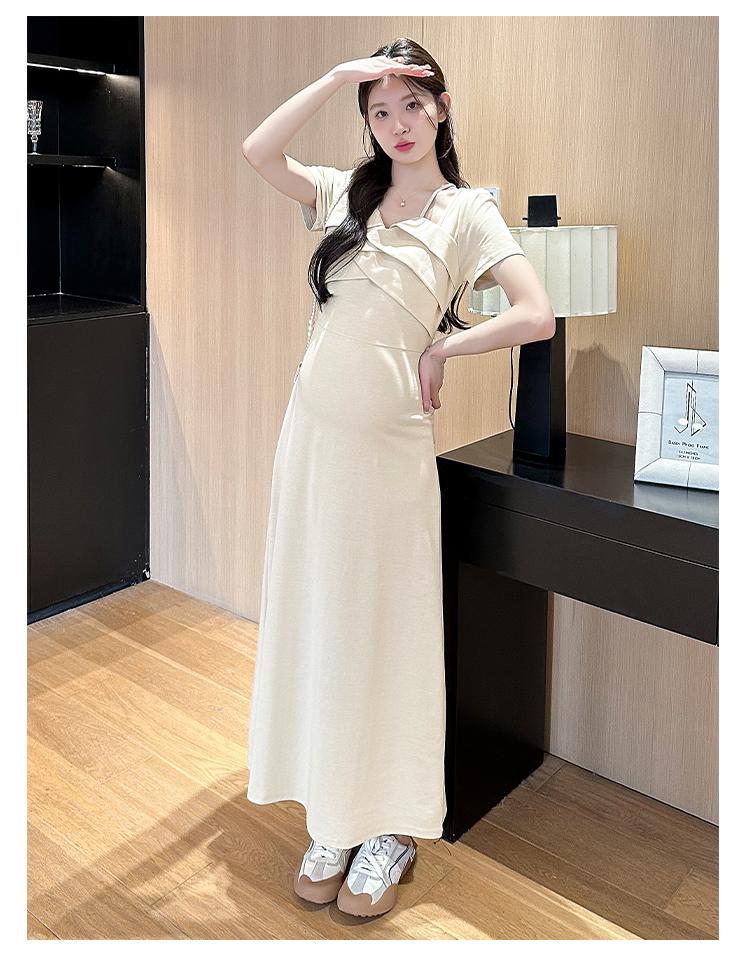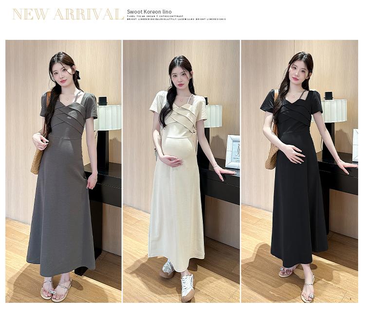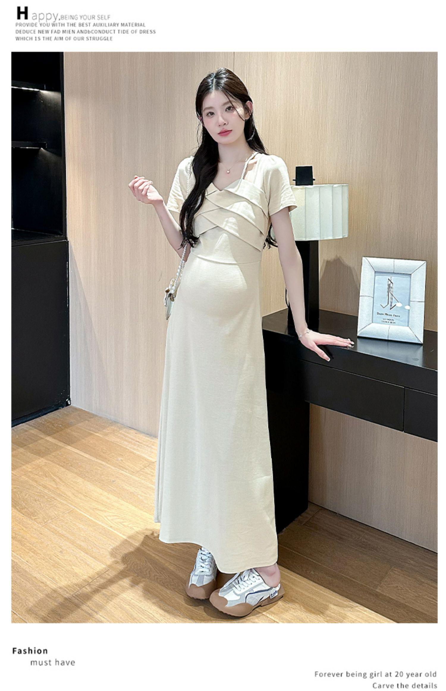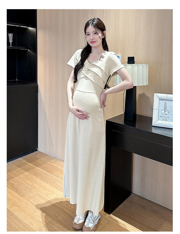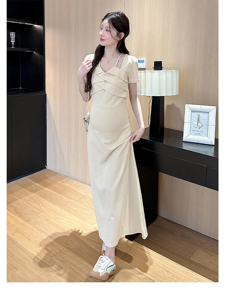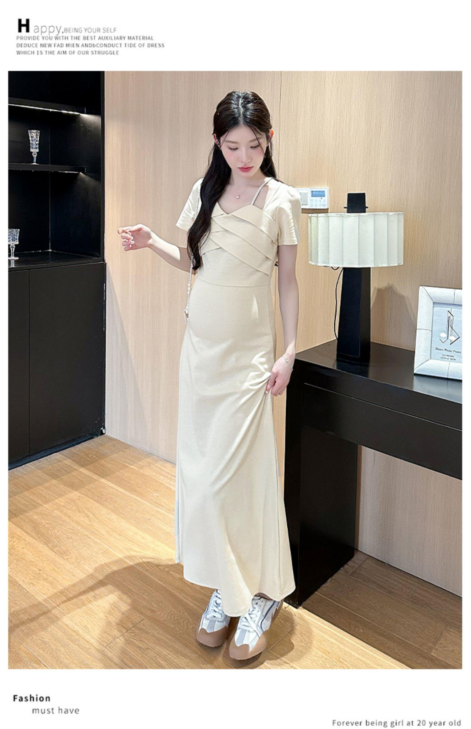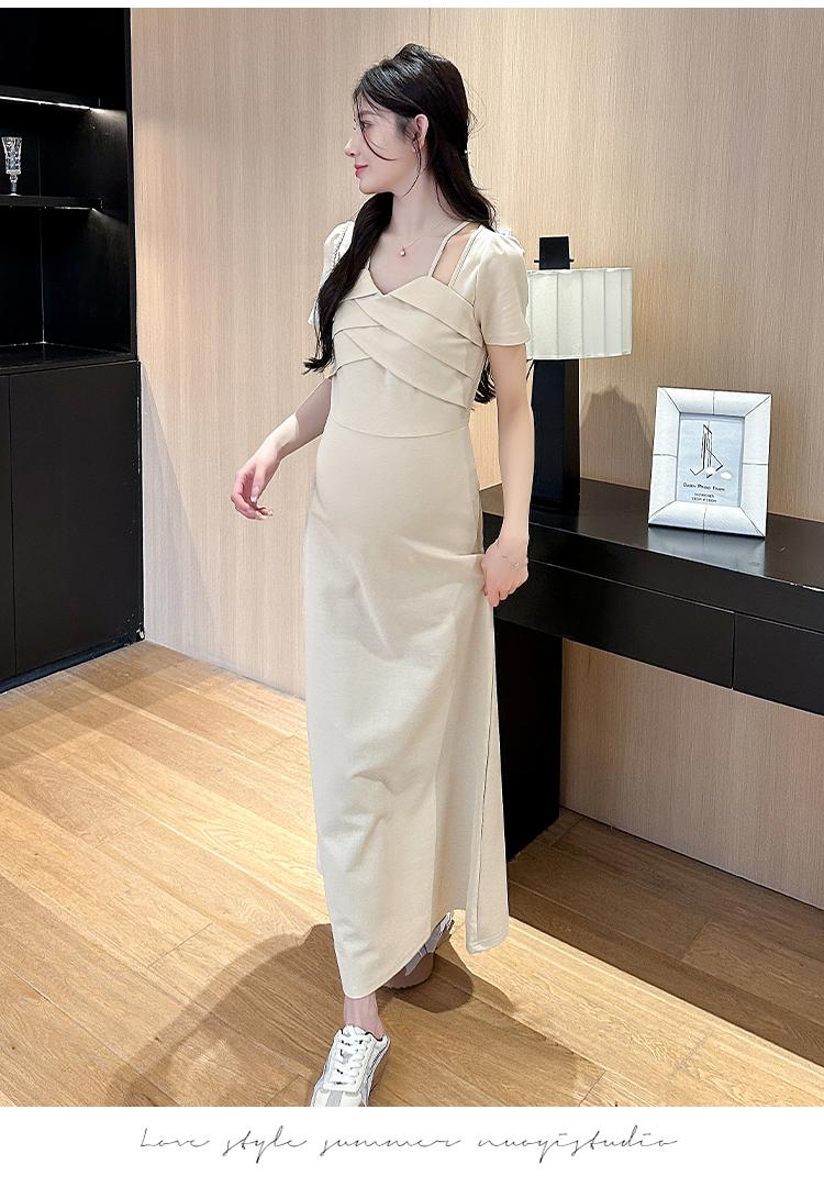 Vestido de Verano de Maternidad 2025 Nuevo Algodón Manga Corta Alta Calidad Slim Francés Salida Verano Vestido Delgado