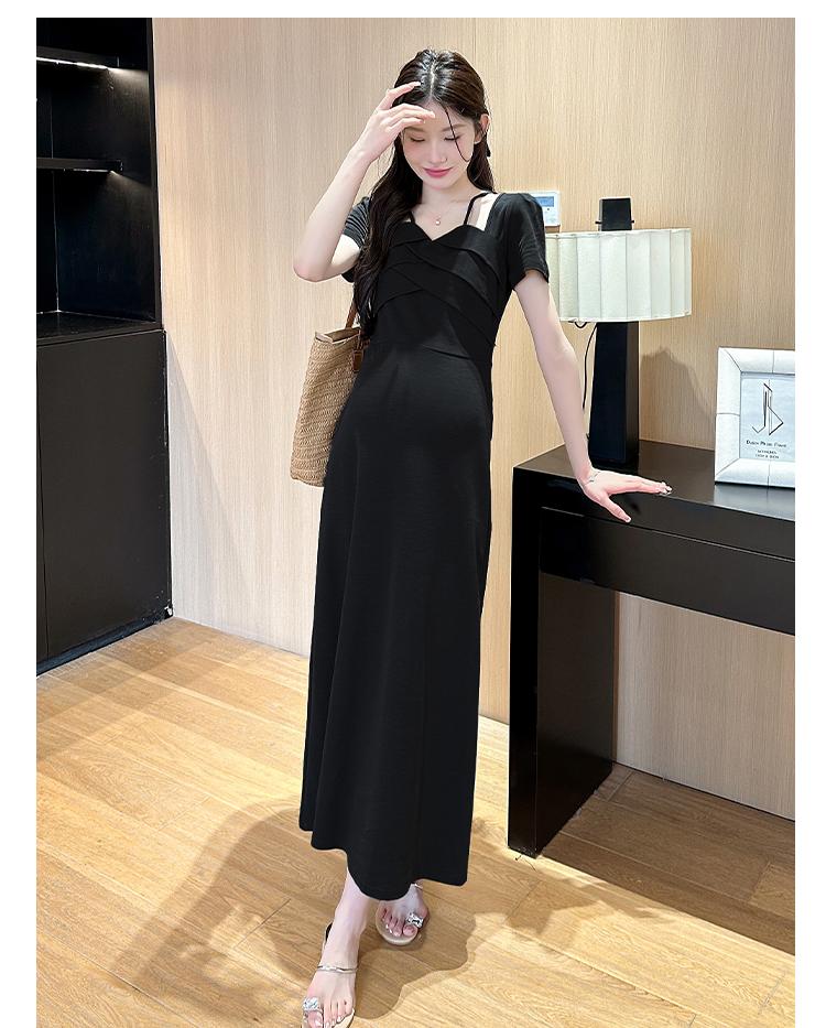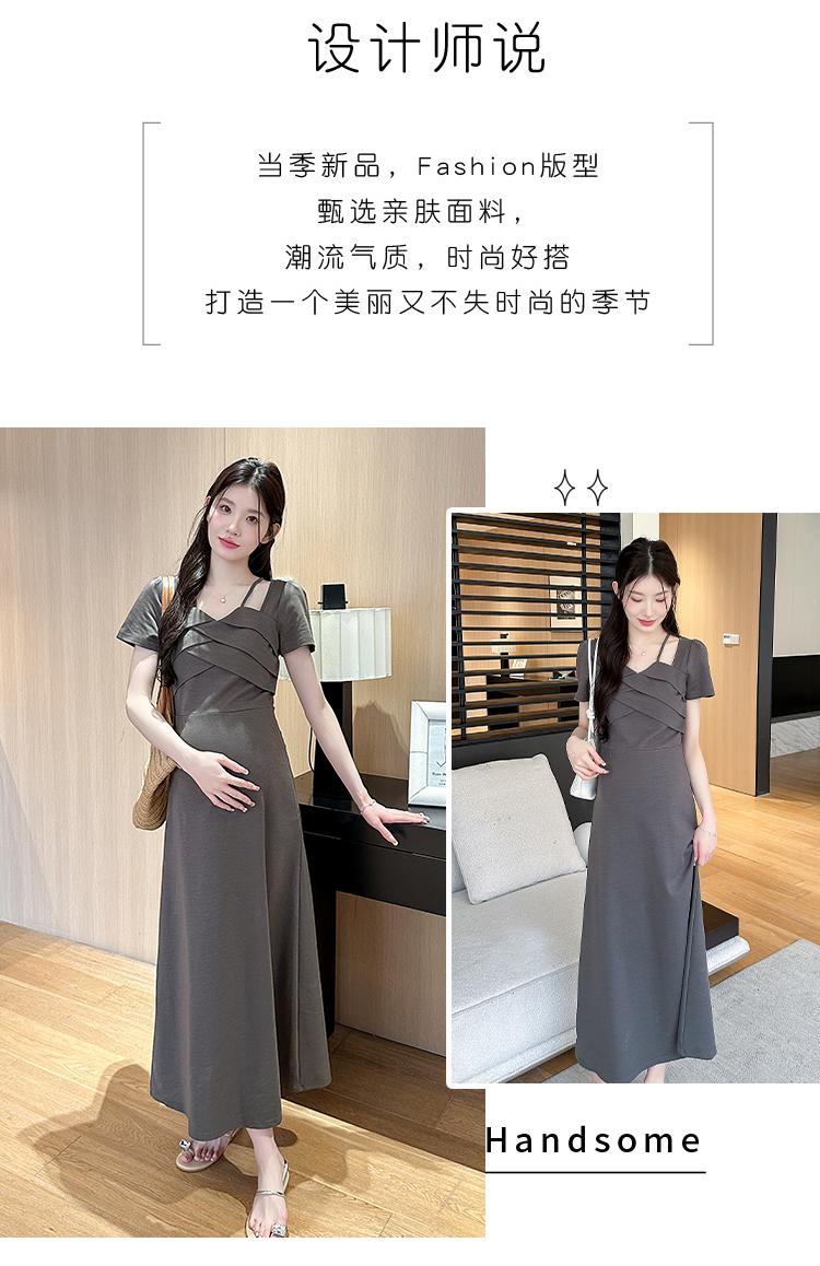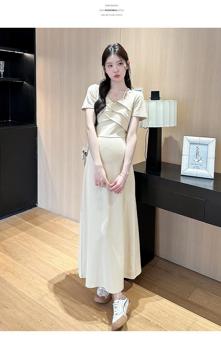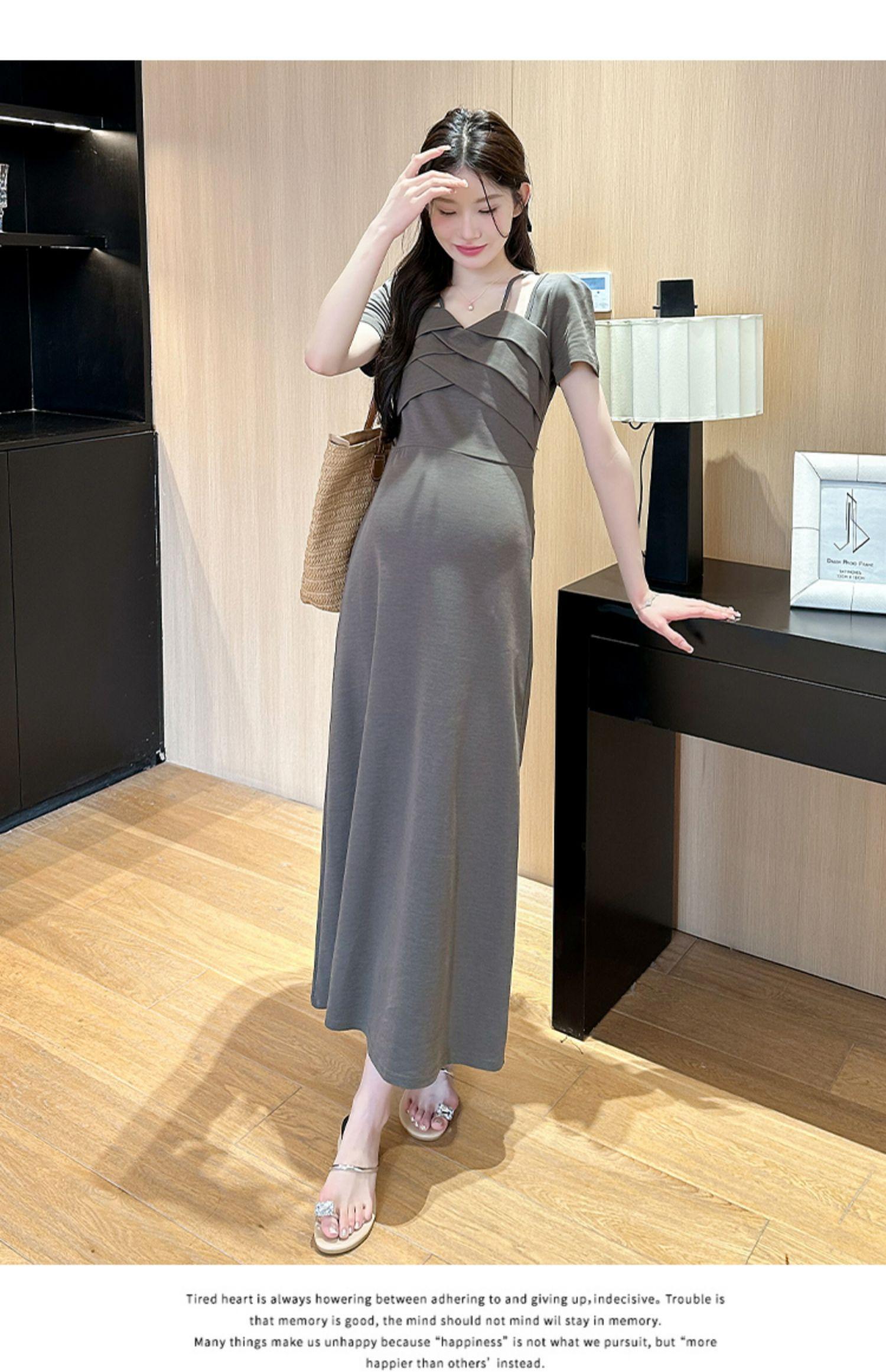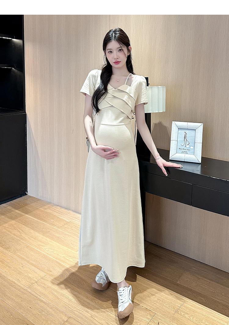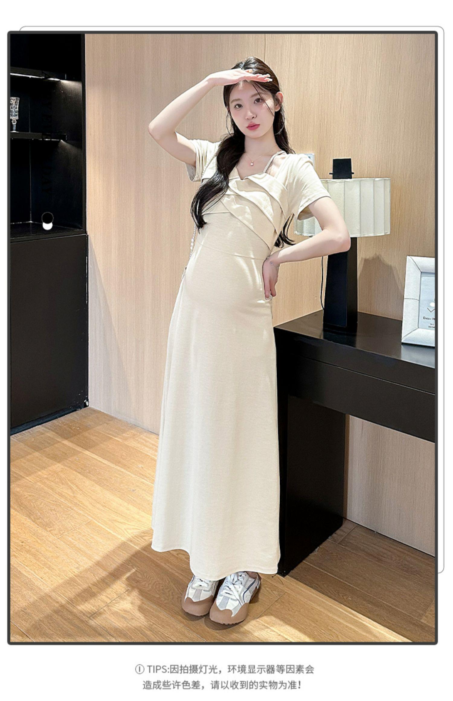 Vestido de Verano de Maternidad 2025 Nuevo Algodón Manga Corta Alta Calidad Slim Francés Salida Verano Vestido Delgado