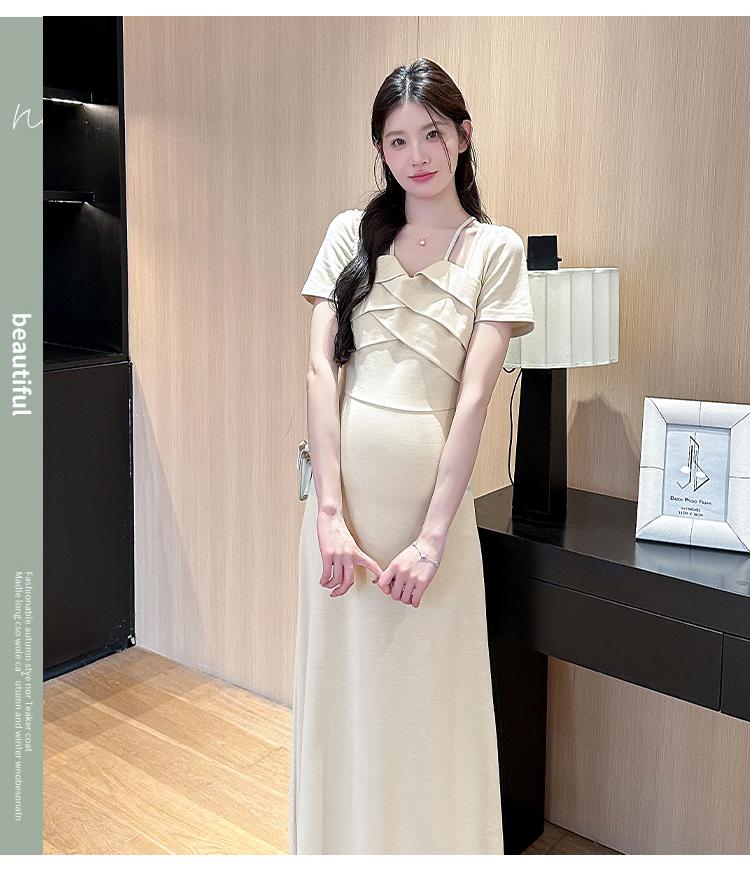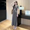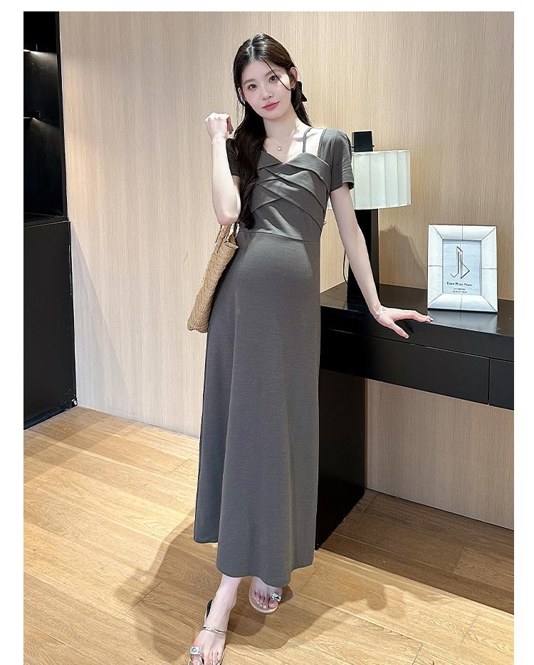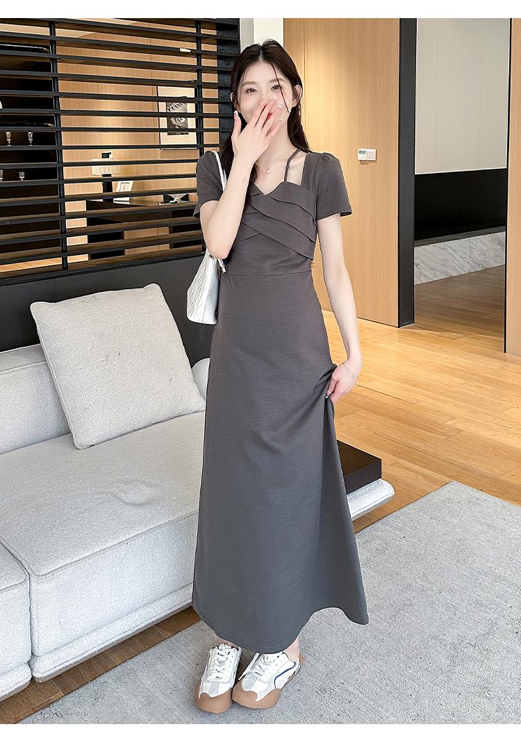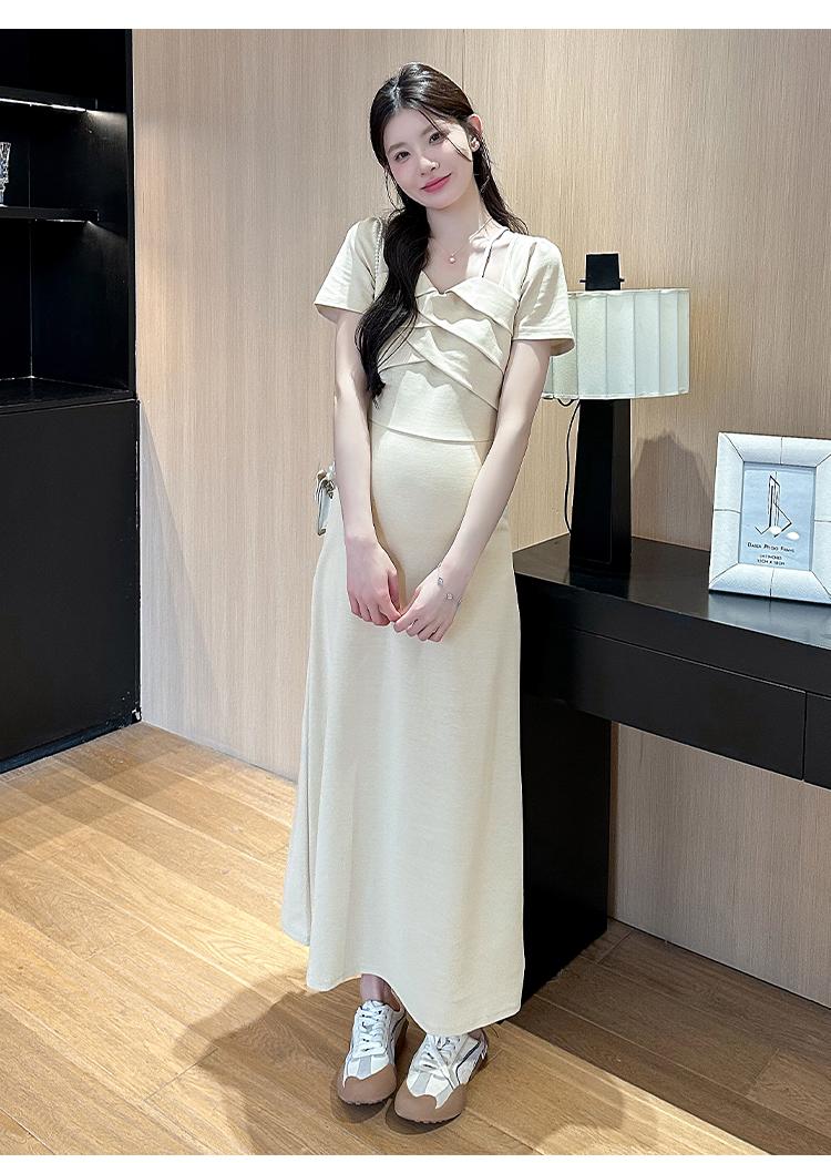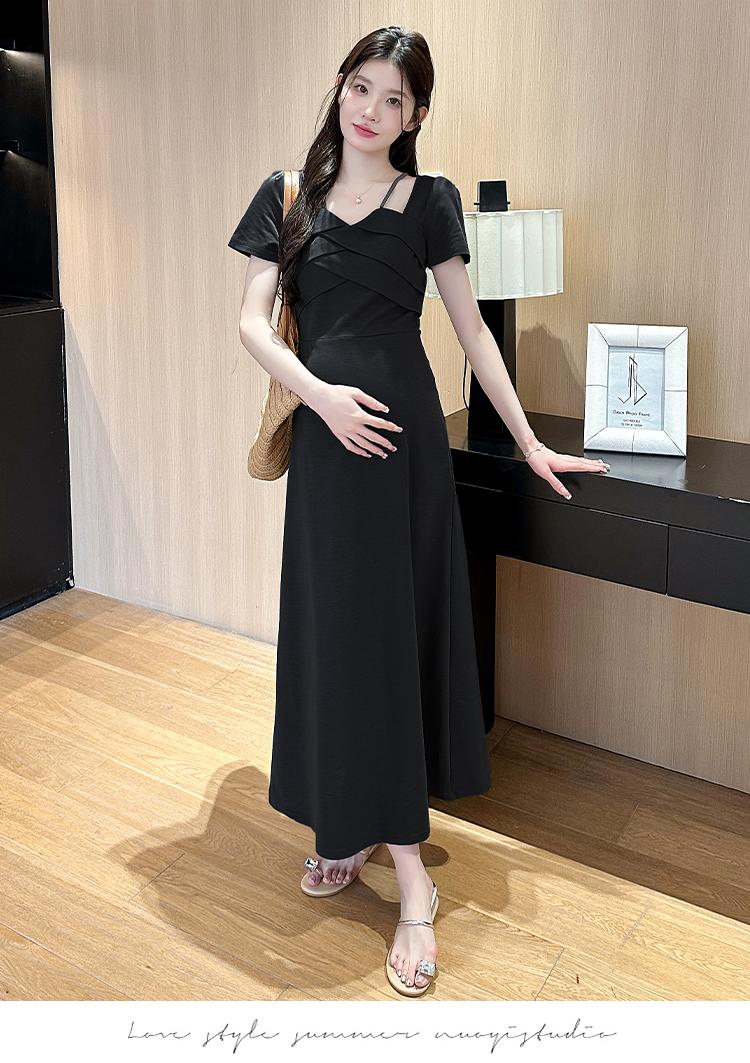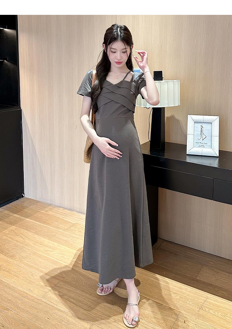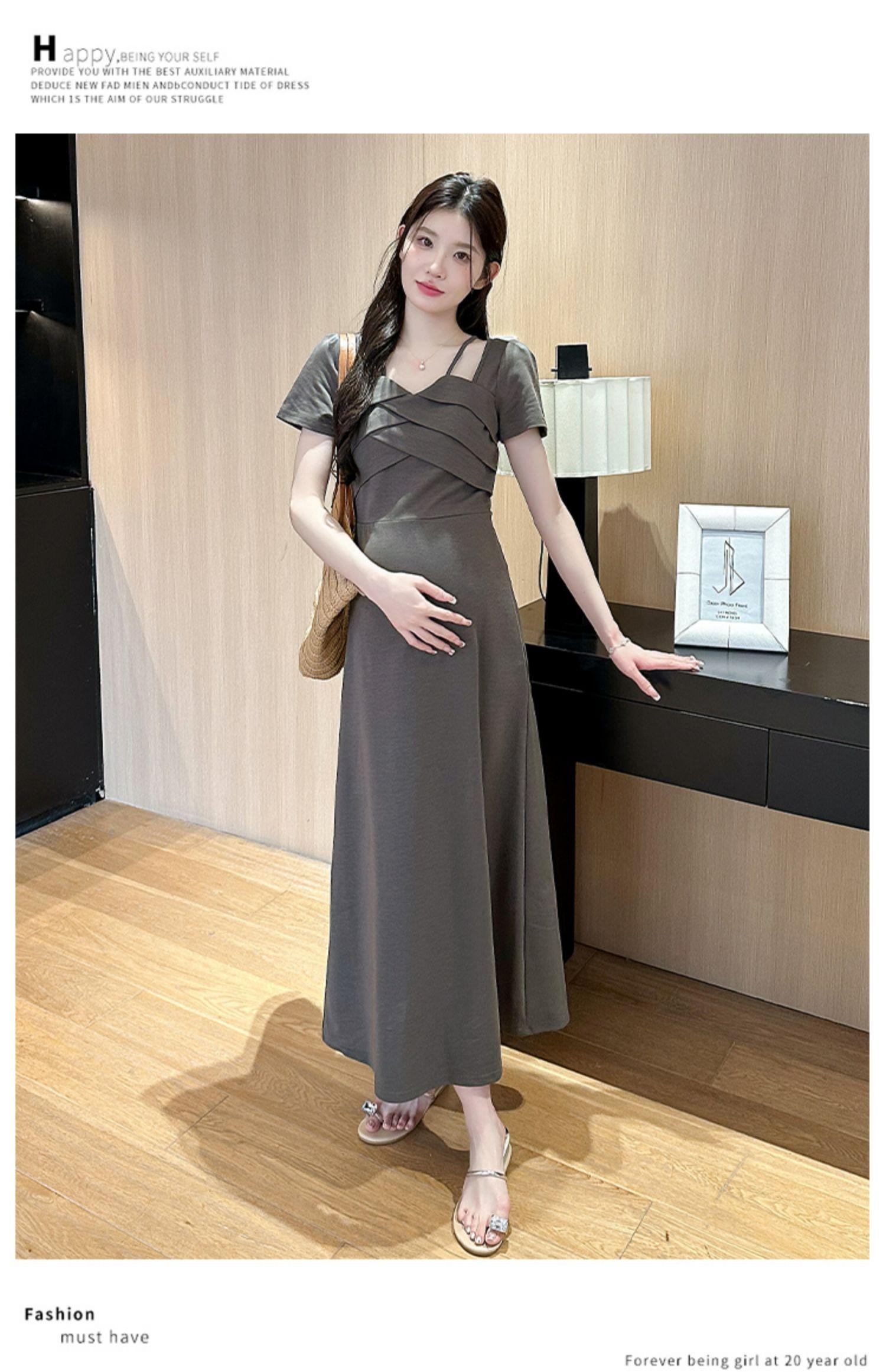 Vestido de Verano de Maternidad 2025 Nuevo Algodón Manga Corta Alta Calidad Slim Francés Salida Verano Vestido Delgado